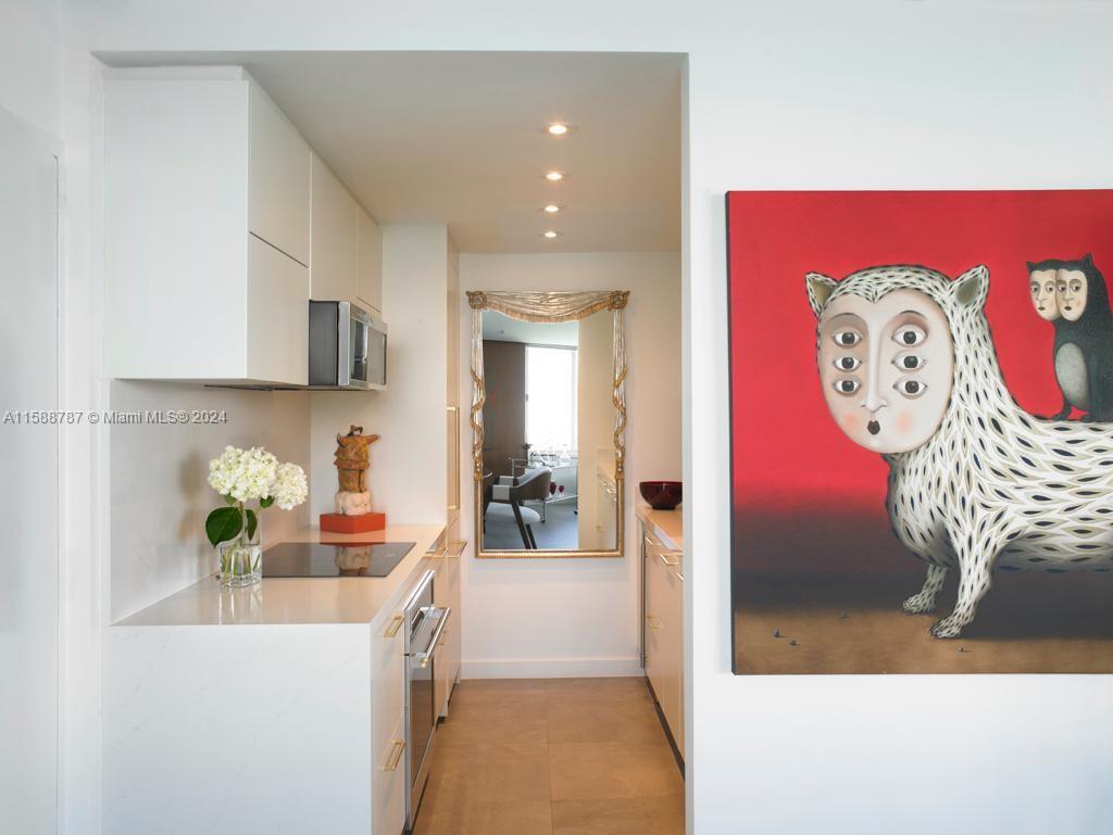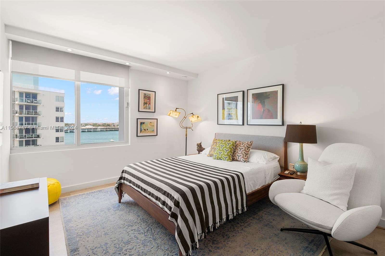 A stunning renovation with Bay and city views that are some of the best in Miami Beach. Tastefully designed and featured in Modern Luxury Interiors magazine, this light filled corner residence boasts timeless dark terrazzo tile floors, custom kitchen and baths, custom millwork and doors throughout. Impact windows/doors, custom blinds and integrated sound system complete this turn key unit. The Mirador is a full service building offering newly remodeled bay front pool and jacuzzi, lobby with front desk, valet and fitness center. The unit includes one deeded covered parking space. Special assessment has been fully paid by the seller and the association has reserves.