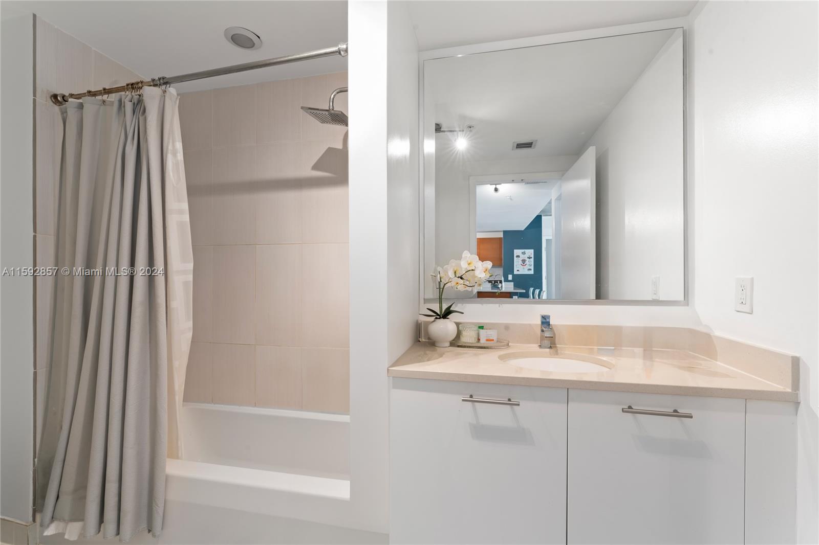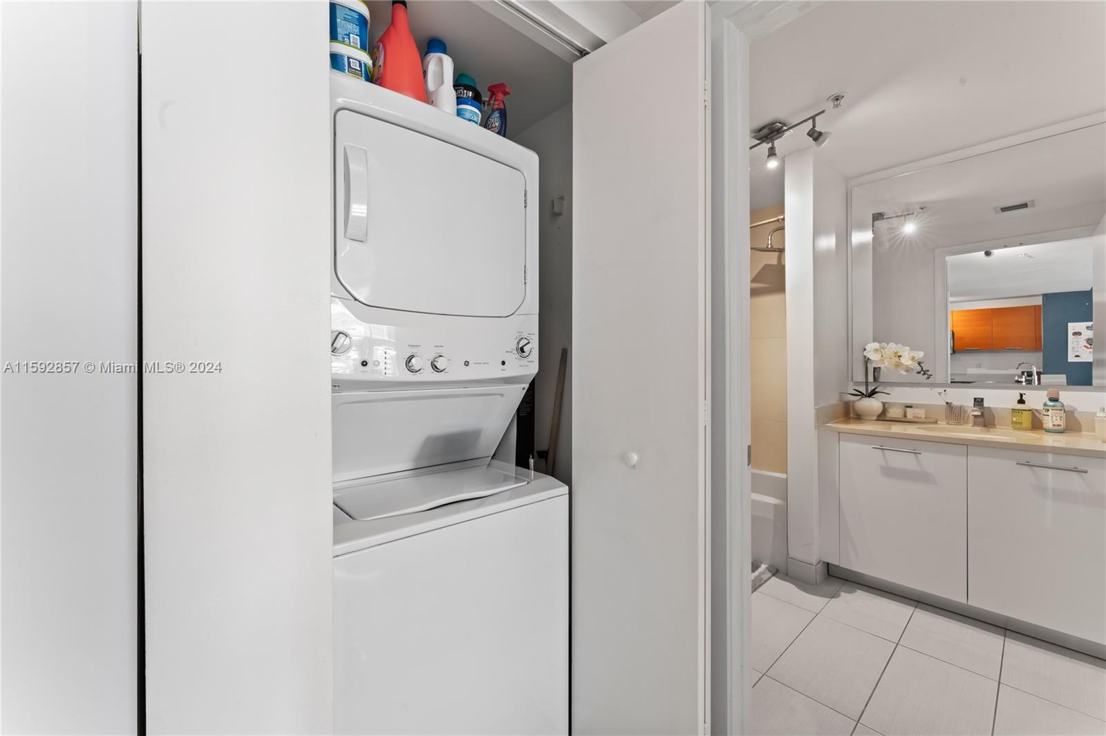 Welcome to unit #1002 at Midblock Condo building. Bright and spacious split floor plan 2 bedrooms and 2 bathrooms with washer dryer in unit and balcony that allows great views of lively Midtown. Primary suite has large walk in closet and dual vanity in the bathroom with standing shower. The second bedroom comes with ample closet space and second bathroom hosts a shower bathtub combination. Exposed cement ceilings are a great touch as well. Midblock building has a 24 hour front desk person, pool and gym. There is one parking space assigned to this unit. This buildings location is center stage of Edgewater, Design District, and Wynwood. Come see what Midblock living has to offer.