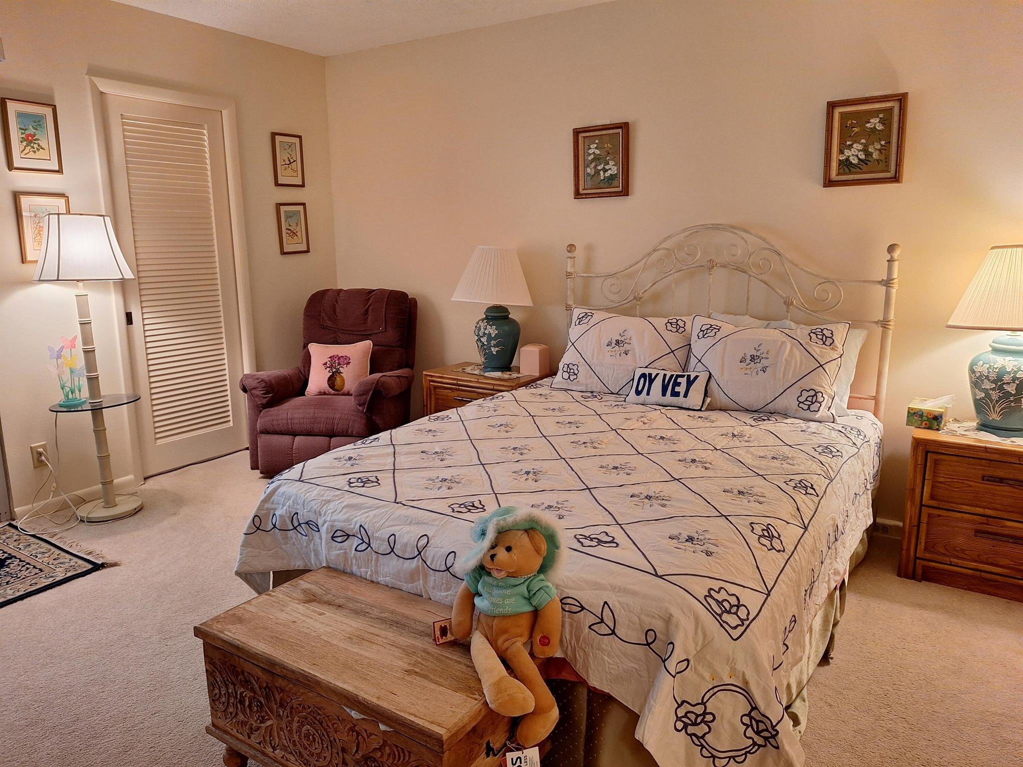 Bright, spacious 2 bedroom, 2 full bathroom luxury model apartment located in popular Ainslie C. Large neutral tiles are layed on the diagonal in the living area and both bedrooms are carpeted. Brand new A/C was installed fall 2023. Glass sliding doos lead to the closed-in lanai from both bedrooms. The extra large lanai has spectacular relaxing water views. The front door is only steps to the pool and also boasts lovely open water views. Just around the corner is the clubhouse as well as the houses of worship. Come enjoy this dynamic 55+ community and the amazing activities and programs in the fabulous clubhouse.