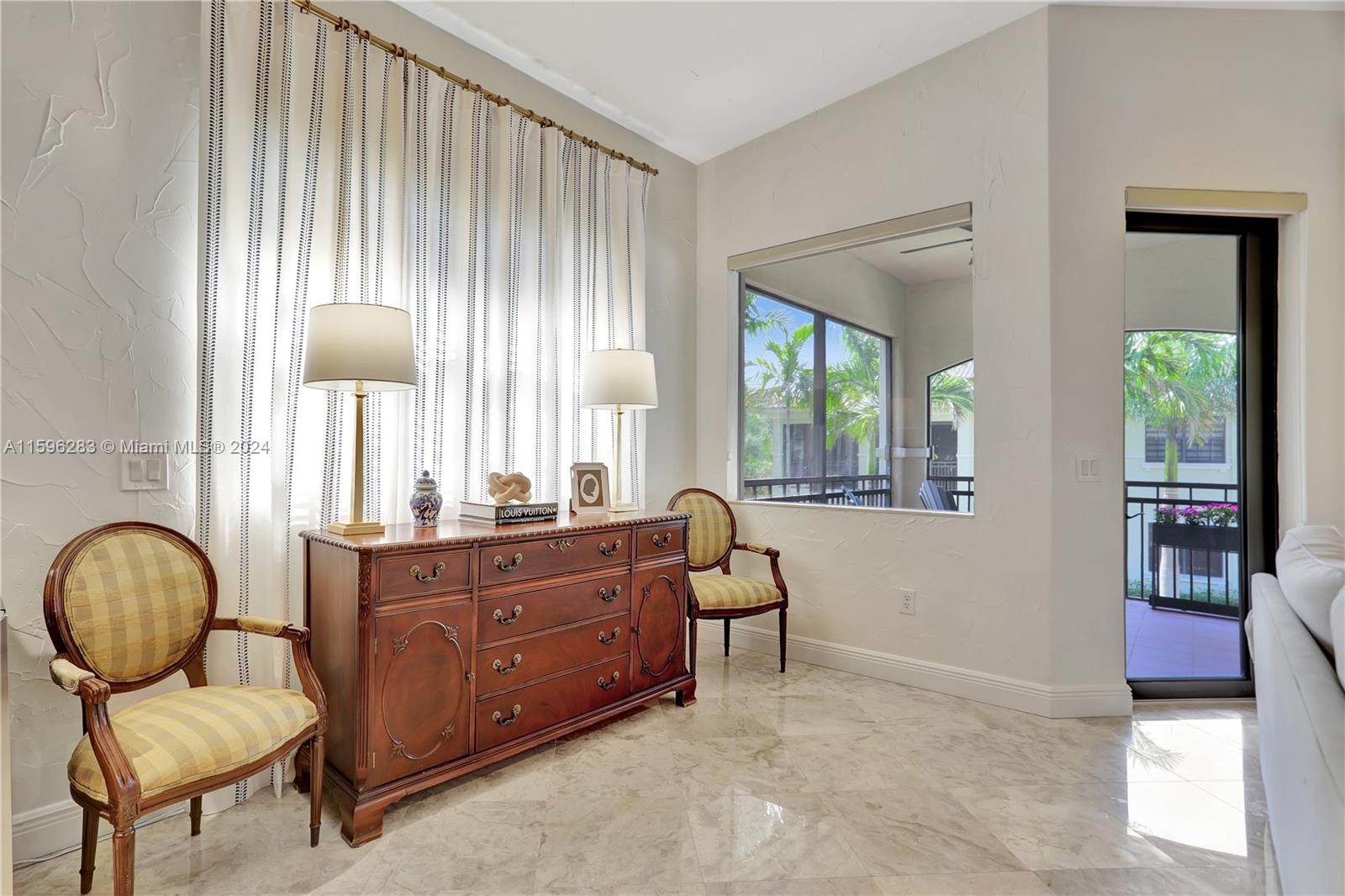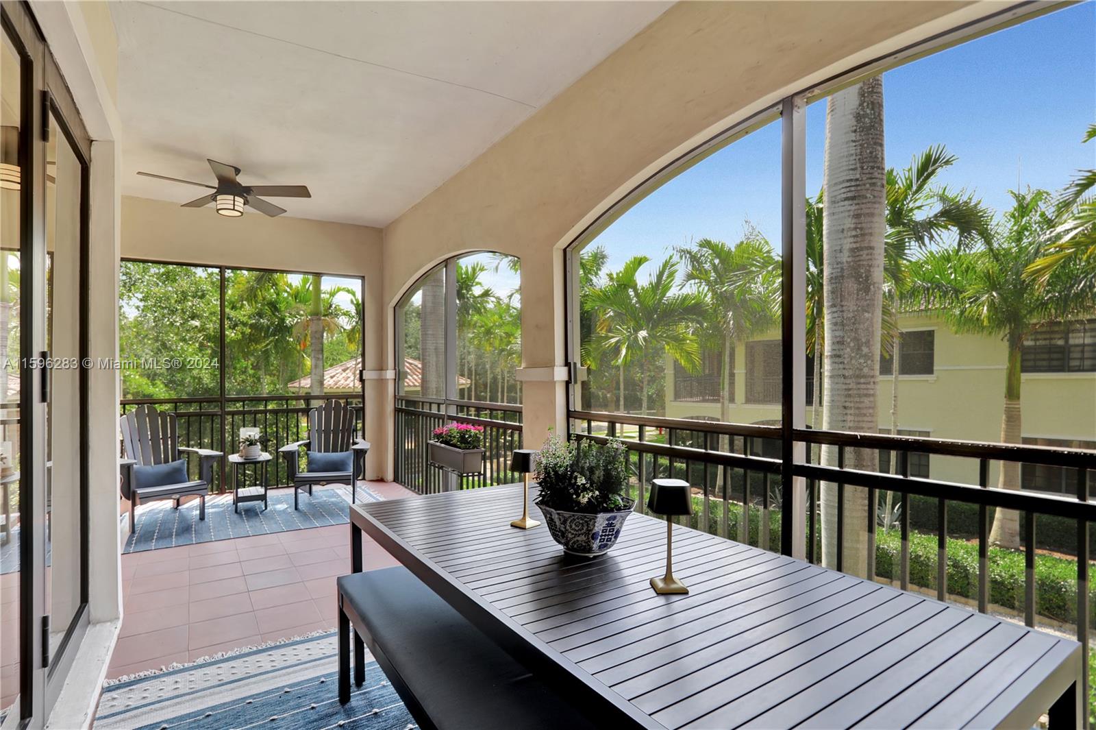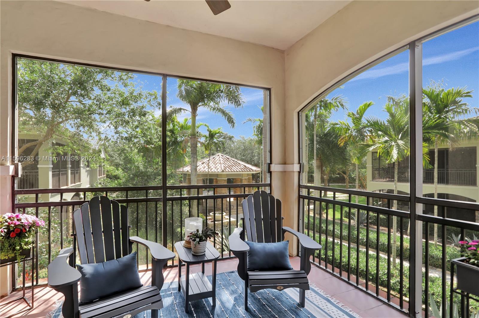 Fantastic opportunity to live in Caseras, a community located within Parkland Golf and Country Club. This gated community has resort style amenities. First floor entry and attached two car garage with private elevator. Marble flooring and contemporary wooden floors in the 3 bedroom and den. Coach-home with high impact windows and doors. Large screened in patio overlooking courtyard. Beautiful community pools, state of the art fitness center, golf course, tennis, clubhouse with fine dining, basketball courts, playgrounds, and social activities within the community.