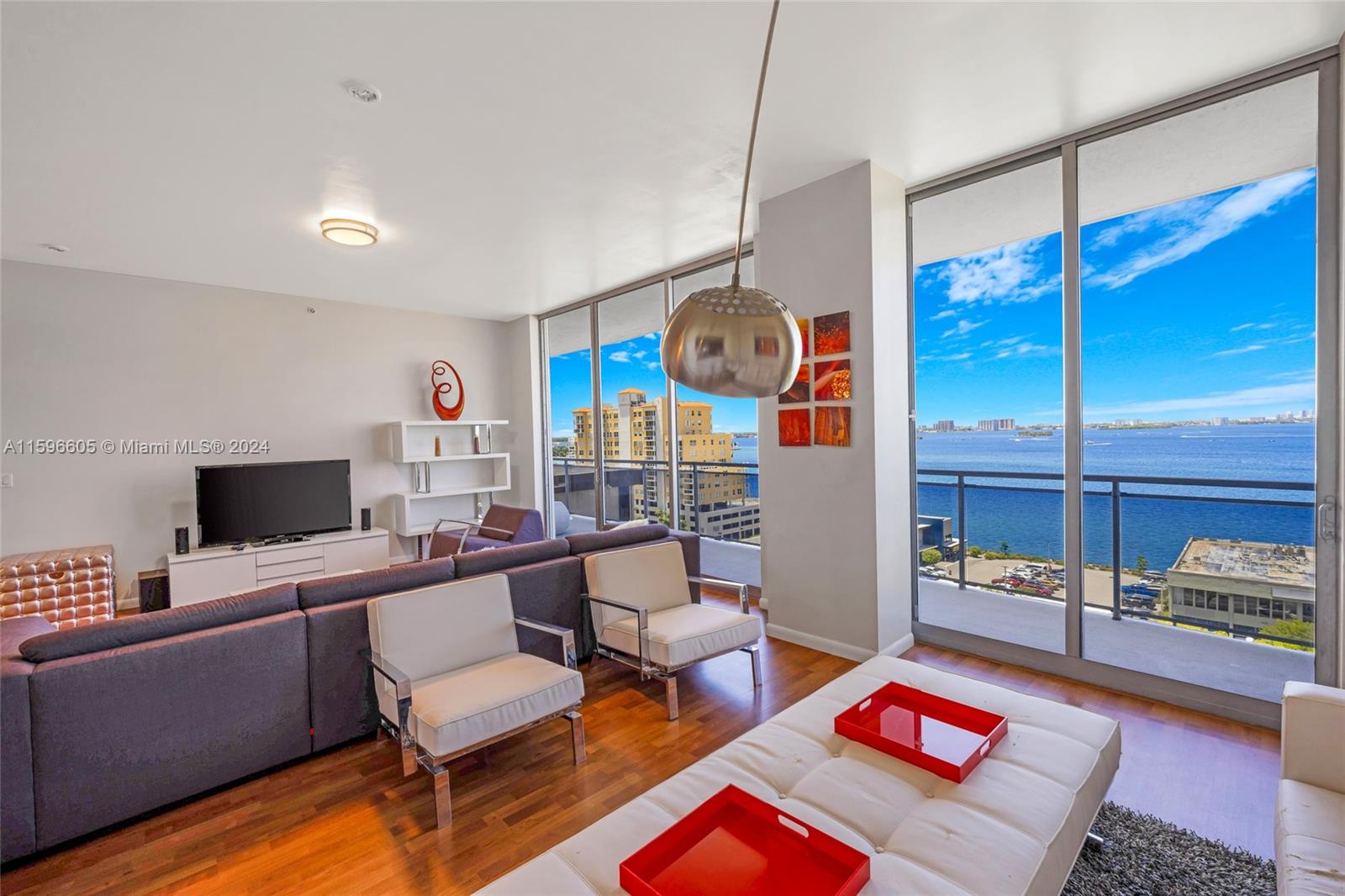 Experience luxury living in this exquisite corner unit located in the heart of North Bay Village. With breathtaking water and city views from every room, this condo truly captures the essence of Island living. Boasting 2 bedrooms + Den / 2.5 bathrooms, this spacious condo offers 1,753 sq ft of living area and an expansive 608 sq ft balcony. The open floor plan is flooded with natural light, creating a warm and inviting atmosphere. The large kitchen is a chef's dream, featuring SS appliances, ample counter space, and abundant storage. A snack counter runs the length of the kitchen, perfect for casual dining or entertaining guests. CONTINUED UNDER SUPPLEMENTAL REMARKS.