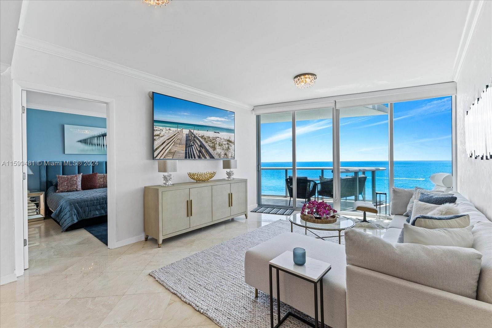 Direct ocean fully furnished and designed residence at Jade Beach. Residence features 1 bedroom /1.5 bath with private elevator and an oversized deep balcony. This desired floorplan features direct ocean views from all rooms and spectacular sounds from the ocean. Kitchen features high-end italian Snaidero kitchen and SubZero appliances. Jade Beach is a full service 5 star luxury building offering world class hotel style amenities, private beach access, sunrise and sunset pool, pool bar restaurant, spa, gym, kids room & more. Turn key and ready for immediate occupancy.