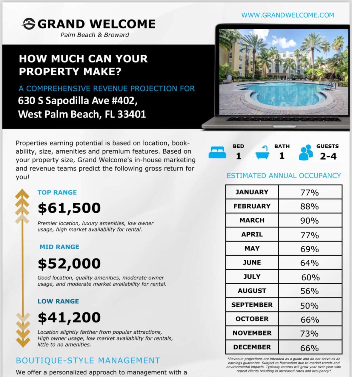 * Great Investment Unit, comes fully furnished*- desirable Courtyard view-Investors - no HOA approval needed, rent right away 12 times a year, 30 days minimum. Lowest HOA in the area while still providing full service budling consisting of 24-hour security, pool, jacuzzi, private movie theatre room, conference room and fitness center. Very pet friendly building. The unit comes with 1 assigned parking spot inside secured and attached garage building.The unit looks into courtyards and has 1 year old AC. Courtyards are located across Kravis Center and Dreyfoos School of the Arts. They are walking distance to Rosemary Square, CityPlace, Brightline Stop and numerous cafes and restaurants in the area.* AirBnb ready, turn key, see potential revenue projection in photos*
