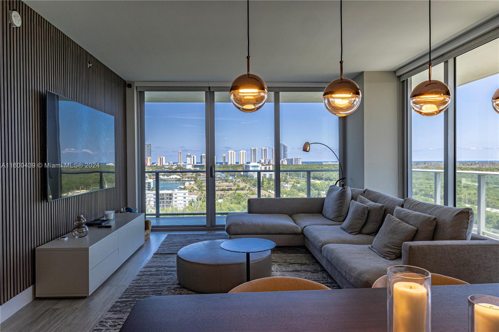Indulge in the epitome of luxury living with this breathtaking 3-bed, 3-bath corner unit at THE HARBOUR in North Miami. Bonus 2 parking garage spaces included. This meticulously interior designed decorated condo boasts a versatile den, perfect for your lifestyle needs with close to new furniture. Private elevator with storage direct to the unit which immerse yourself in panoramic views of the Bay and Sunny Isles' skyline through floor-to-ceiling windows, wake up to direct sunrise city behind with ocean view while enjoying the modern elegance of the open kitchen equipped with top-of-the-line LIEBHERR & SMEG appliances. With a host of amenities including spa, fitness center, pool, and every aspect of comfort and convenience is at your fingertips in this exclusive residence.