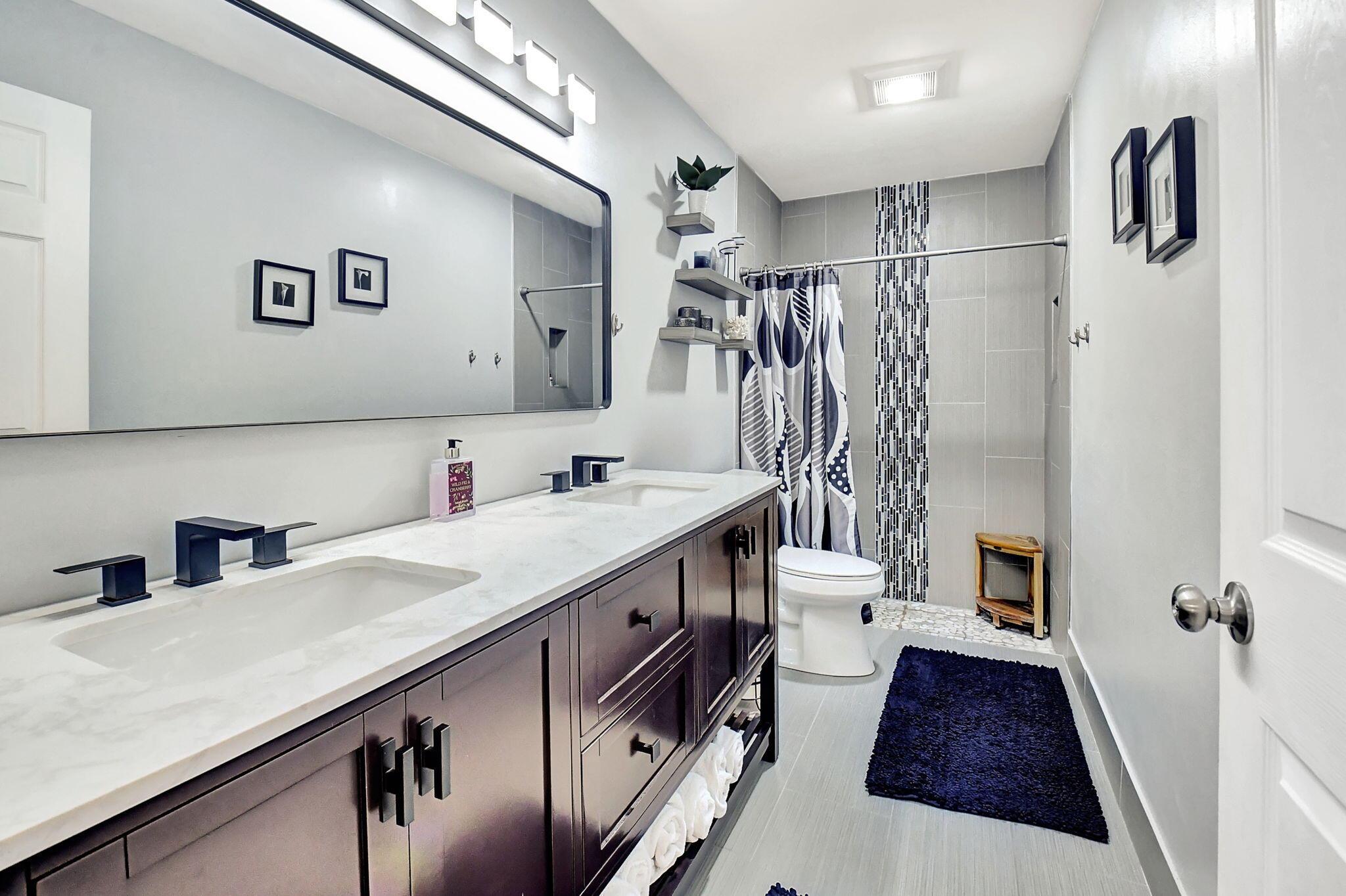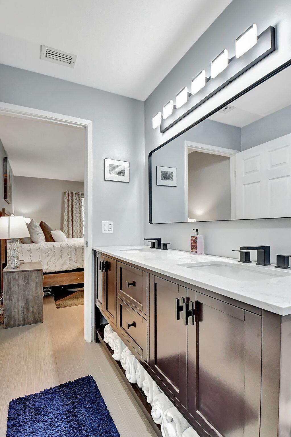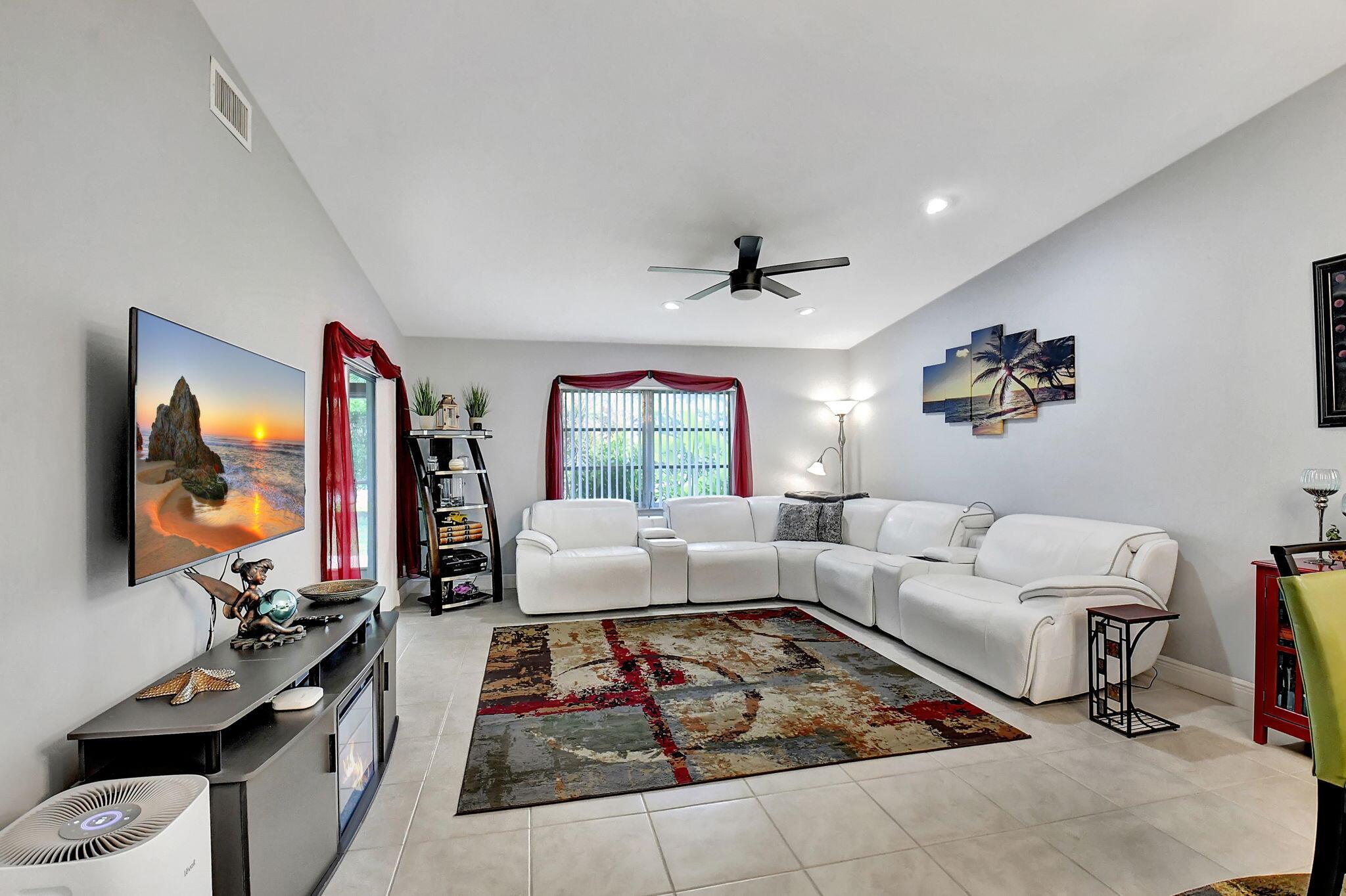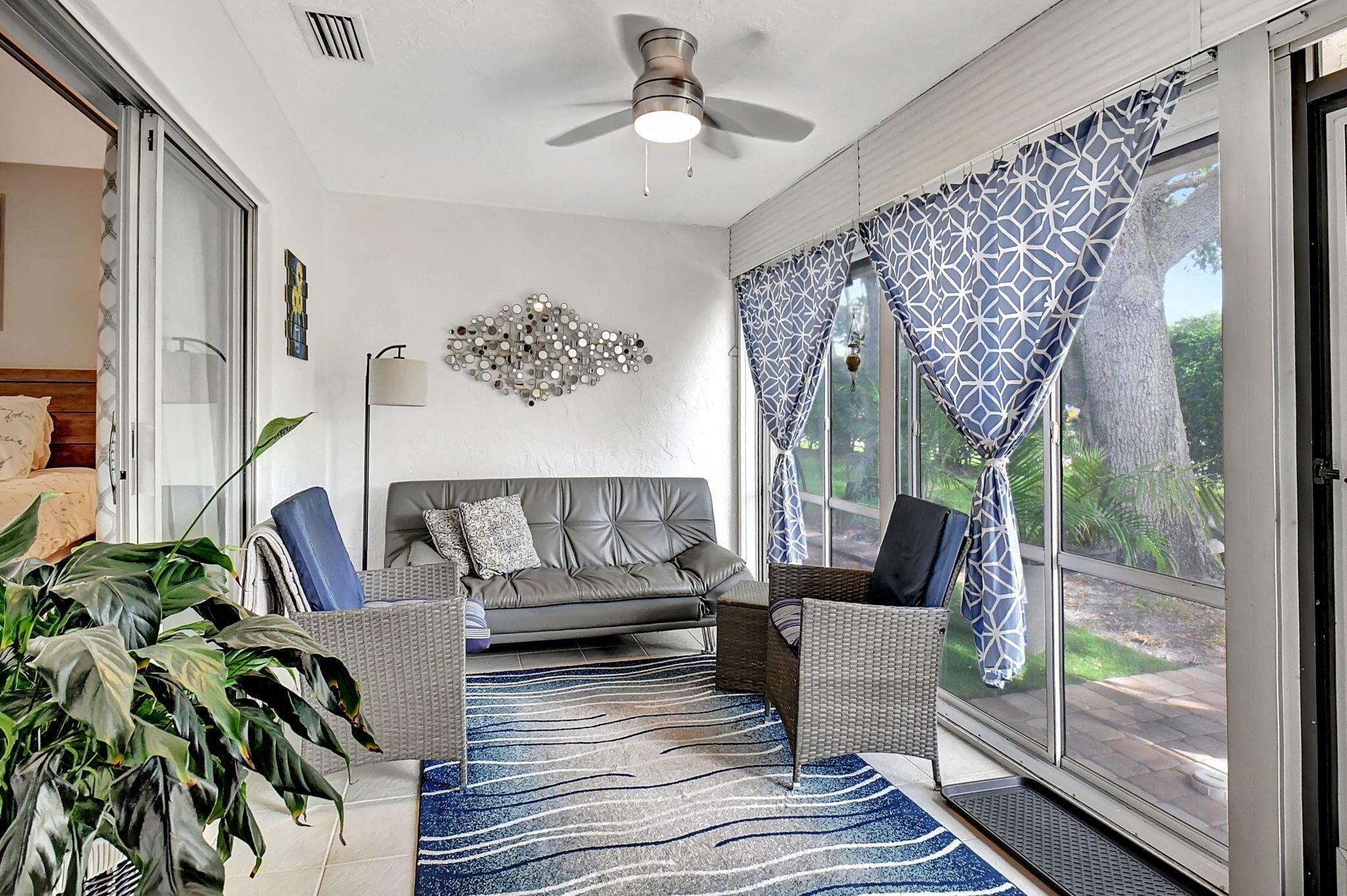 Beautiful 2/2 Chateau Villa with garage on quiet Cul De Sac. New designer kitchen with quartz countertop, SS appliances, lots of storage and open floor plan w/vaulted ceilings make it great for entertaining. Inside laundry room has a new w/d LG tower, more cabinets and counter space.The villa has tile floors throughout, LED lighting and lots of charm. The primary bedroom boasts 2 large closets and an en-suite w/double sinks & walk in shower. Both the primary and main bath have been remodeled with beautiful tile & large vanities.Enjoy the extra space in your under air Florida room or on the large outside patio.Whisper Walk is a gated 55+ community that includes club house, 5 pools, tennis & pickleball courts, putting area, fitness center, sauna, library, walking paths and 9 lakes.