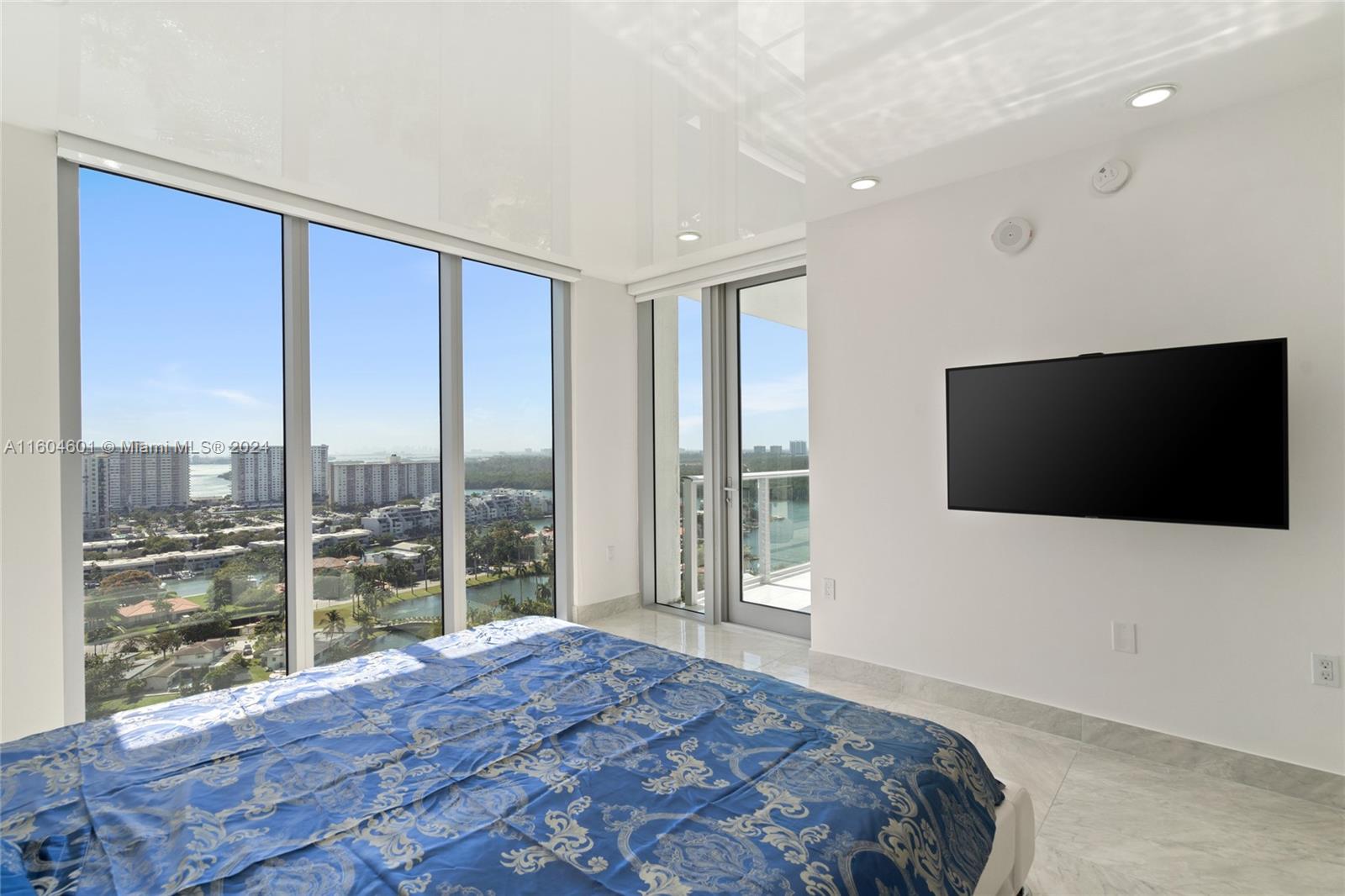 Sunny Isles on Intercoastal. Real full-size 3 bedrooms, 3 full bathrooms, and 1/2 guest bath. Each bedroom has its bathroom. All rooms have porcelain floors. Beautiful southwest views from each room. The living room and master bedroom have stretch ceilings. All rooms have custom closets. All interior doors were replaced. Spacious wraparound balcony overlooking the Intracoastal Waterway. The unit comes with storage space, 2 assigned tandem parking spaces + complimentary valet. Top-of-the-line amenities include a fitness center, yoga and aerobics room, movie theater, business center, tobacco room, three swimming pools, and children's play area. Low HOA fees.