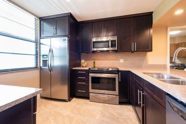 This unit has the WOW Factor! Beautifully Updated, Lakefront Corner Unit, Very Private no one walks past your Bedroom. Open Kitchen with Large Quartz countertops for Bar Top Seating with SS Appliances and extra Counter space for your Home Coffee Shop. Lovely Laminate Flooring, Hurricane Impact Windows, Updated Bathrooms with Seamless Shower Doors, Big Walk-In closet in the Primary Bedroom and Lots of Closets in Guest. Community has Pool & Jacuzzi, you have access to the Private Country Club with Tennis, Gym, Pool, Sports Bar, Tot Lot, Restaurant, BBQ/Picnic, Golf. Water and Trash included in Monthly Assoc Fee. Sorry No Pick Up Trucks allowed, No Renting for first 2 years of ownership One Assigned parking spot plus Guest.