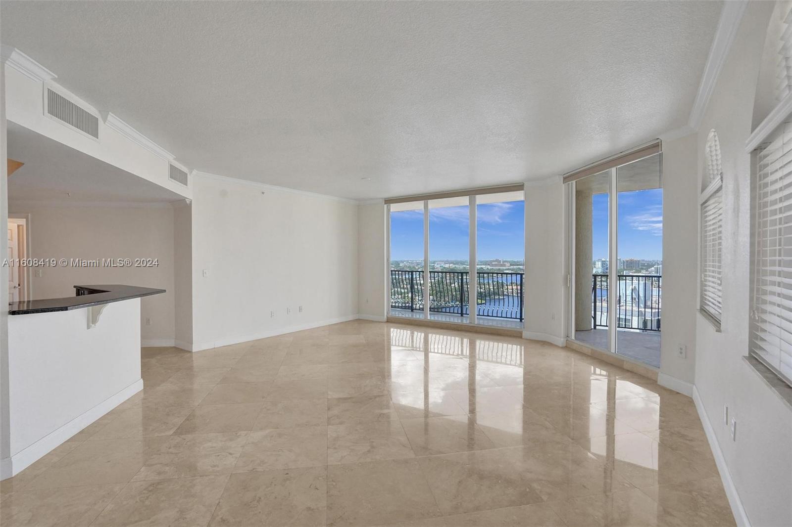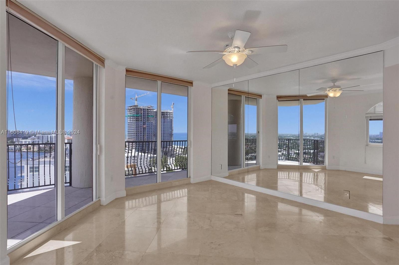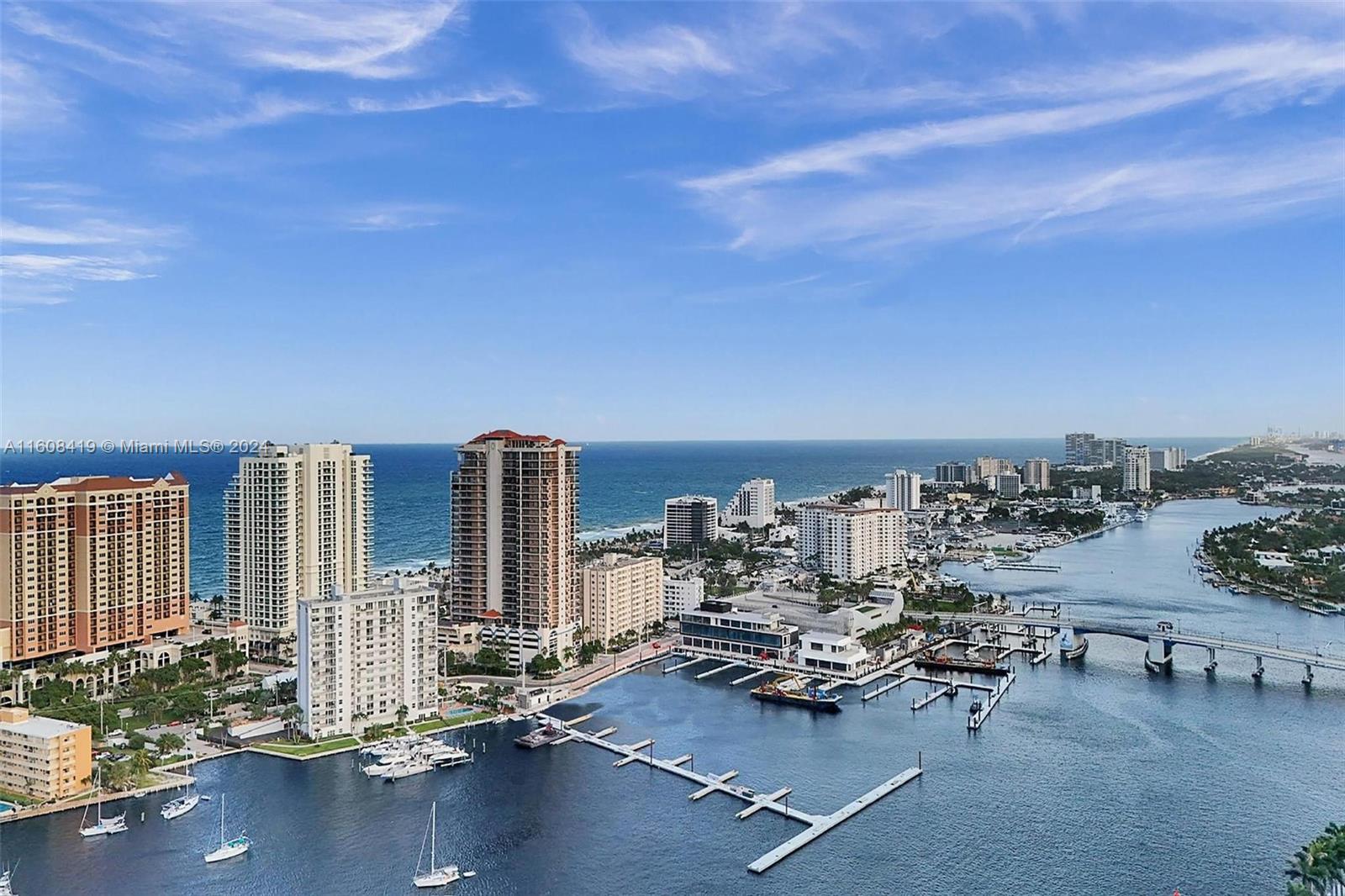 Expansive water views from every room look down the Intracoastal and out over the Atlantic Ocean. Come enjoy this beautiful and bright 2 Bedroom 2 Bath high floor corner unit. Floor to Ceiling windows, Huge wrap around terrace, Marble floors throughout, Large laundry room. Private elevator to unit and Amenity Floor. Walk one block to the beach, Intracoastal, and countless Dining Options. New Large Format Marina with Shopping and a High End Seafood Restaurant opening Downstairs. Water taxi stop steps away. Full Service Luxury Building w/ guest valet parking available & 24-hour security. The wraparound balconies are perfect for sunrise coffee or sunset cocktails! Walk to everything Fort Lauderdale Beach has to offer... nightlife, dining, yoga, biking and boating are right outside your door!