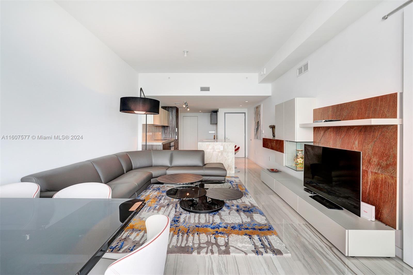 Custom finished and furnished residence with porcelain flooring, custom closets, window treatments. Sophisticated 1 Bedroom 1.5 bath + Office-Den unit in ONE Paraiso by Piero Lissoni. Luxurious finishes in kitchen and bathrooms, floor to ceiling glass panels to enjoy endless views to the Bay and the Ocean. Centrally located within Paraiso District in Edgewater. Extensive list of amenities: ground level pool, 2 pools on the 9th floor, 2 tennis courts, Bayview spa, Sauna, Steam room, spinning room, fitness center, massage rooms, screening room, party room, billiard room, wine room and more. One Paraiso offers a private enclave of luxury contemporary residences where breathtaking views over Biscayne Bay define a style of living that embraces both elegance and natural beauty. Easy to show.