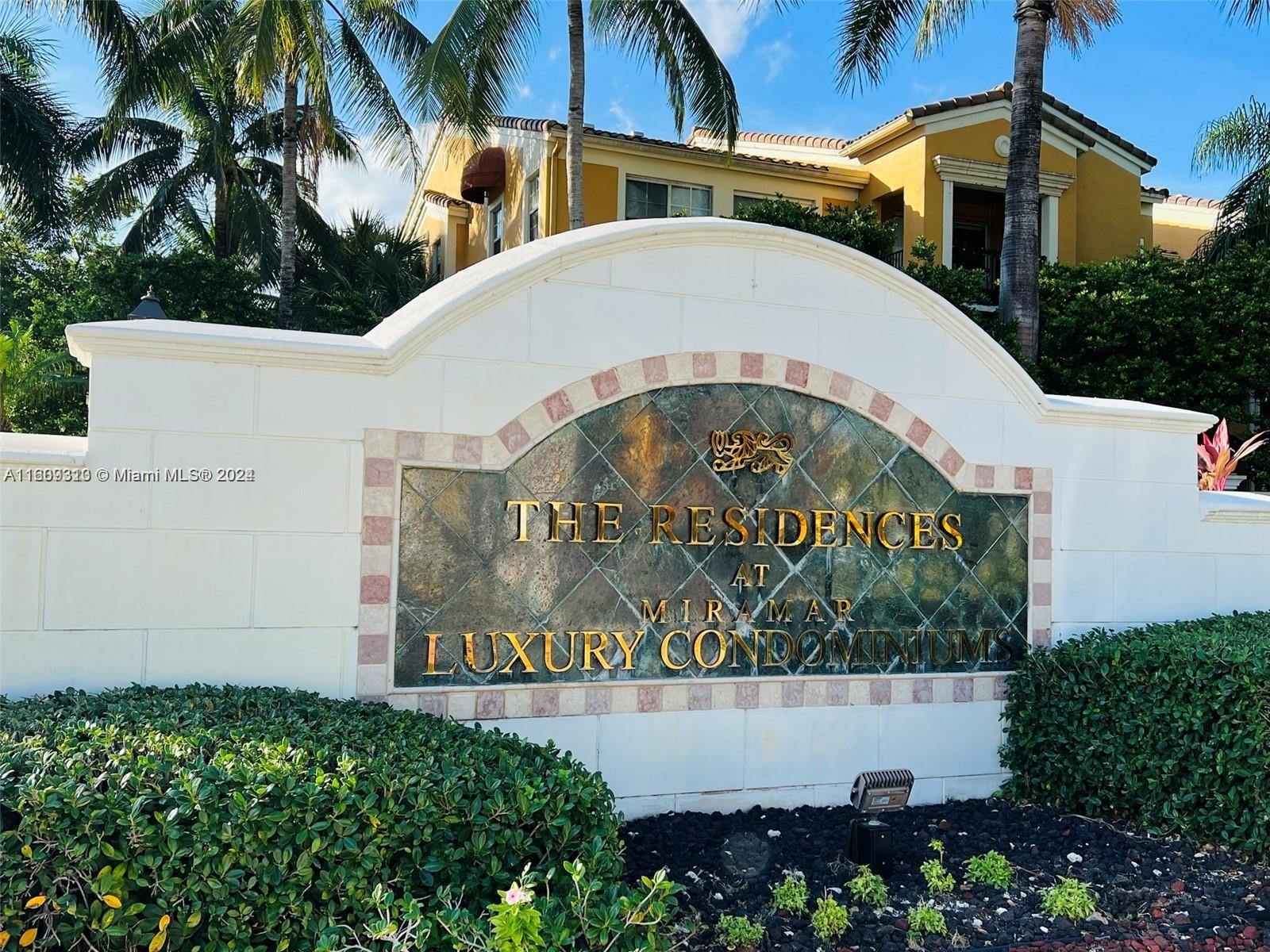 Spacious 2 bedroom/1 bathroom unit located in the resort style gated community of The Residences at Miramar. Brand new water resistance laminate floors through out the apartment and freshly painted. Stainless steel appliances. Washer/dryer inside the unit. Great view from balcony to garden, tennis courts and lake. Community features amenities such as community pool, tennis and basketball courts, gym, playground and much more. Great opportunity for investors unit is rented lease expires on Nov 2024.