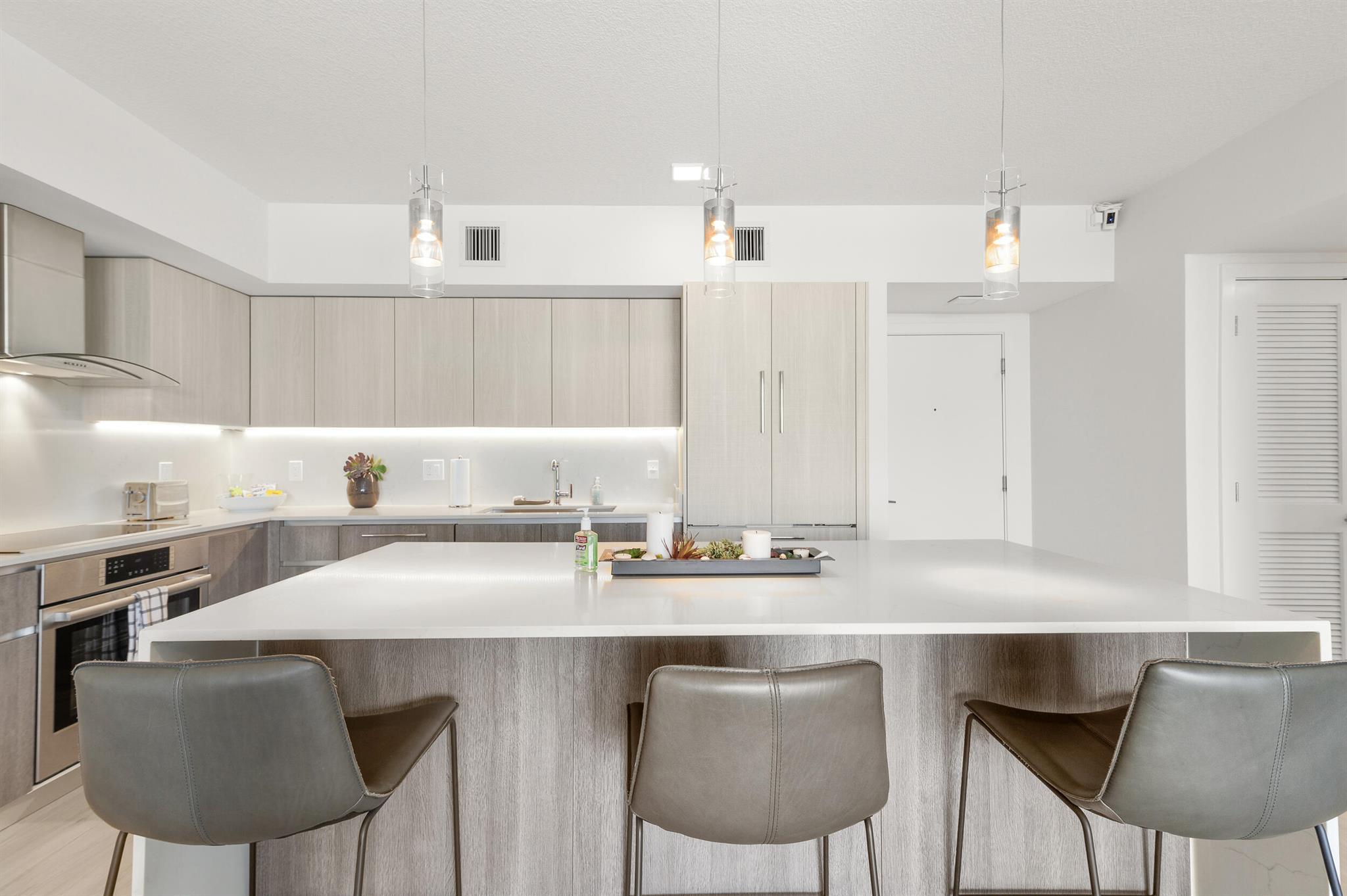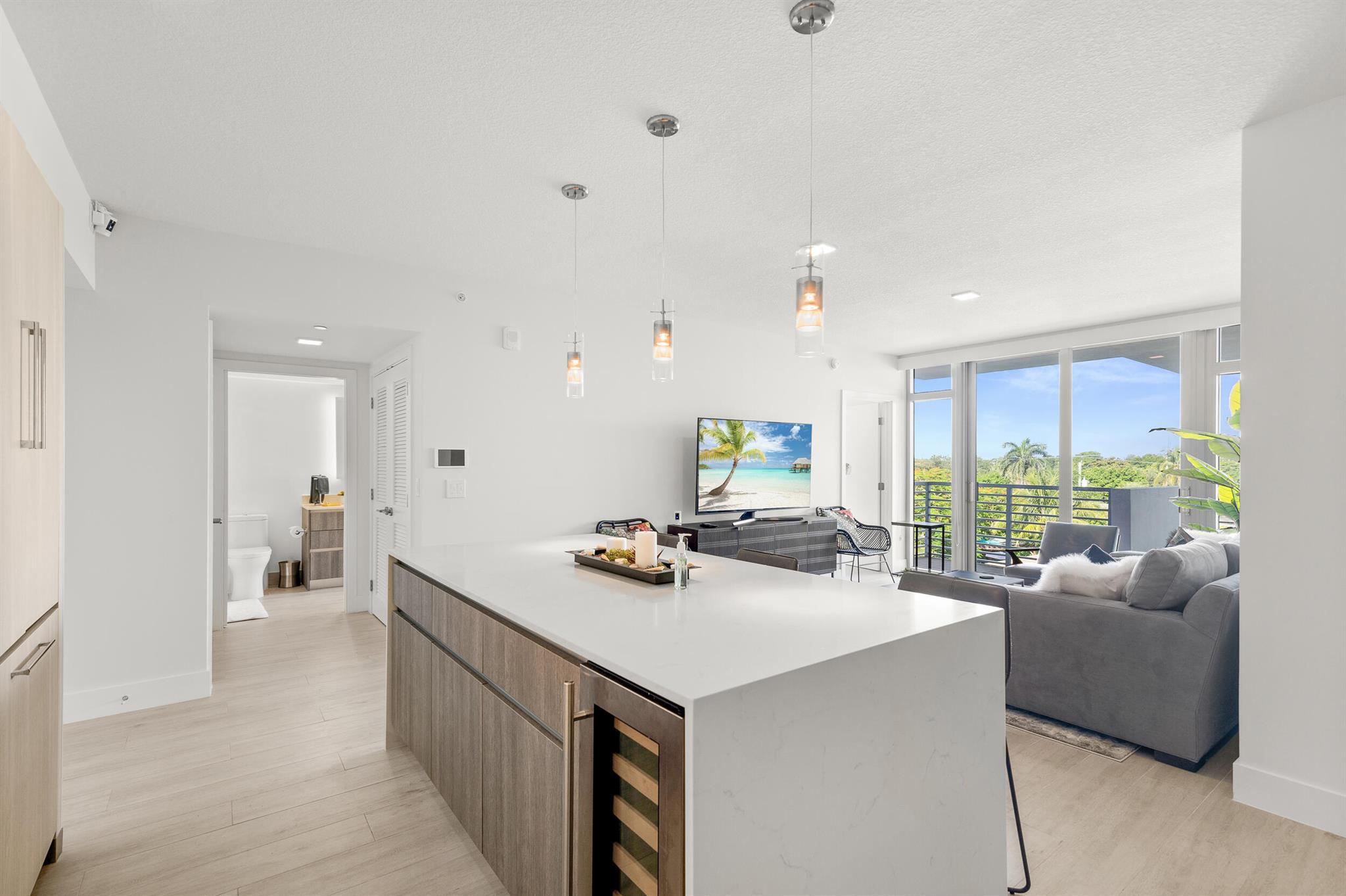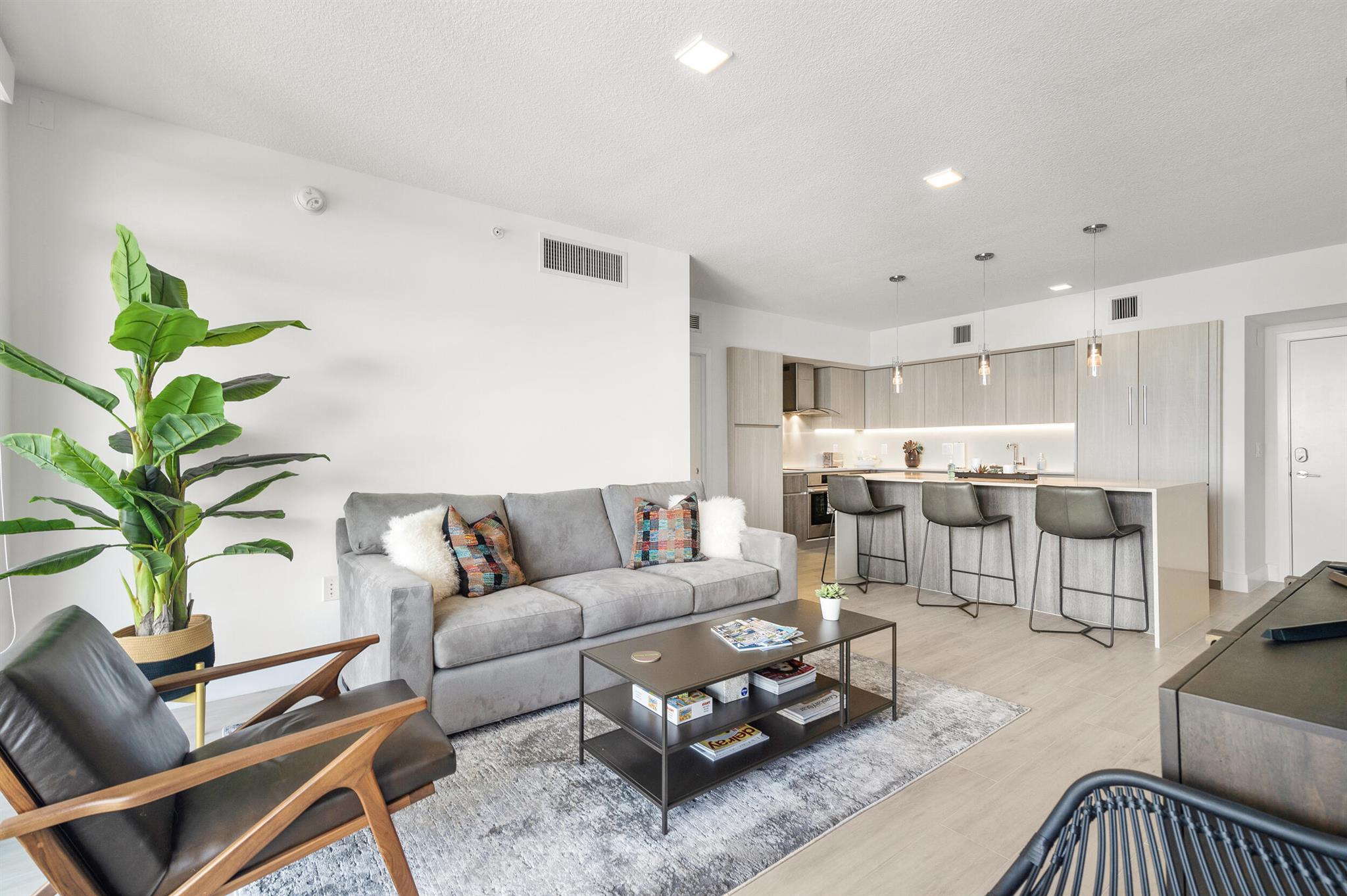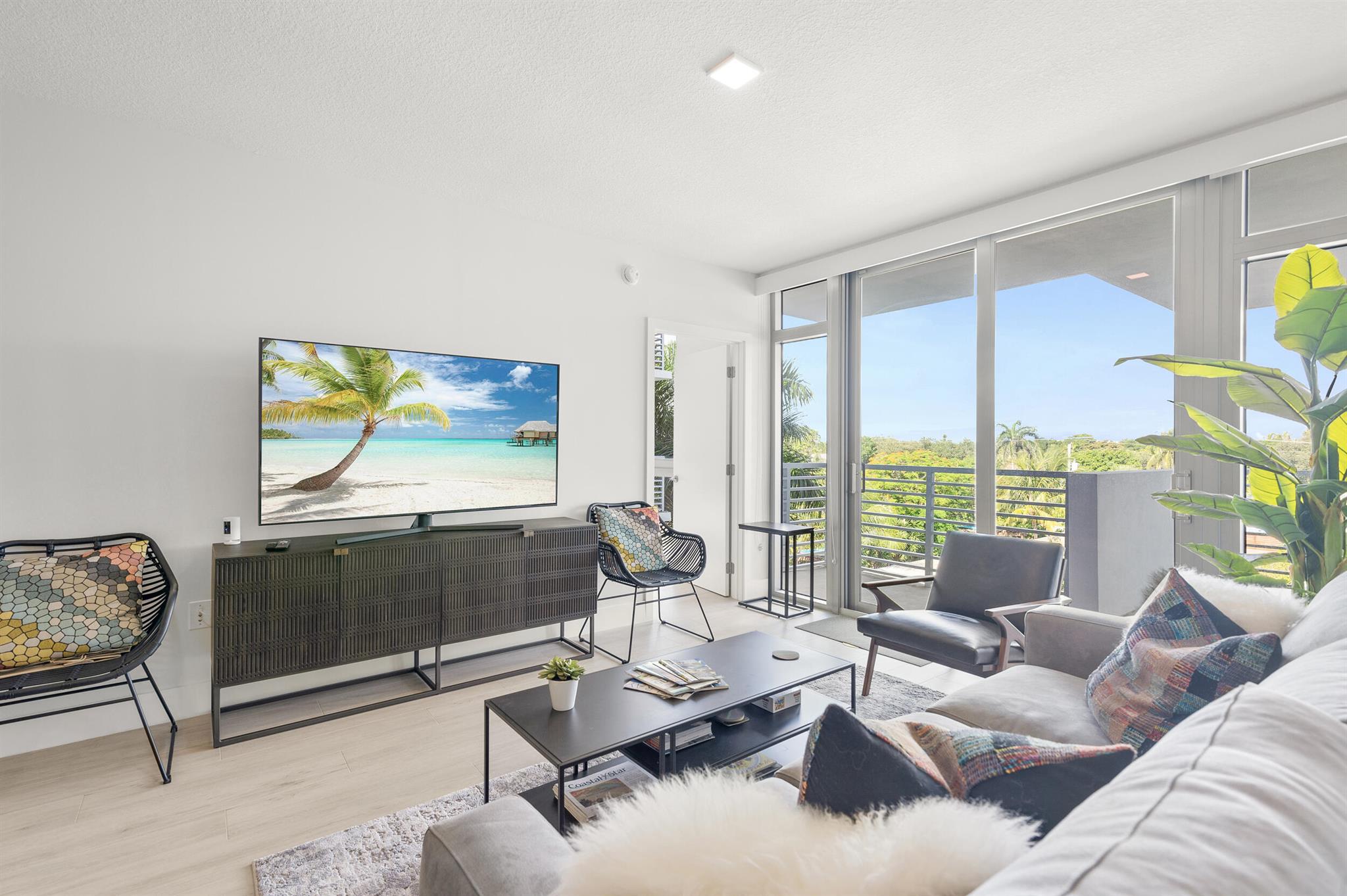 Contemporary urban living 1 block away from Atlantic Ave in Downtown Delray and fully furnished! 111 First Delray Beach is a sleek 66-unit, smart building and beautifully designed. Unit 414 is equipped with Bosch appliances, wine cooler, modern-day technology, plus: Home automation system Designer selected finishes with upgrade options Secure and covered resident parking #71 with extraordinary guest parking * Secure bicycle parking and private storage space #44 * State-of-the-art fitness center overlooking pool * Entertainment deck includes swimming pool, cabanas, summer kitchen, bar, billiards, fire pit, and TVs * Atrium lobby * Low COA dues * library/office room. Unit has upgraded Leviton light dimmers, 2 interior RING camera's and electronic window shades. Comes Fully Furnished.