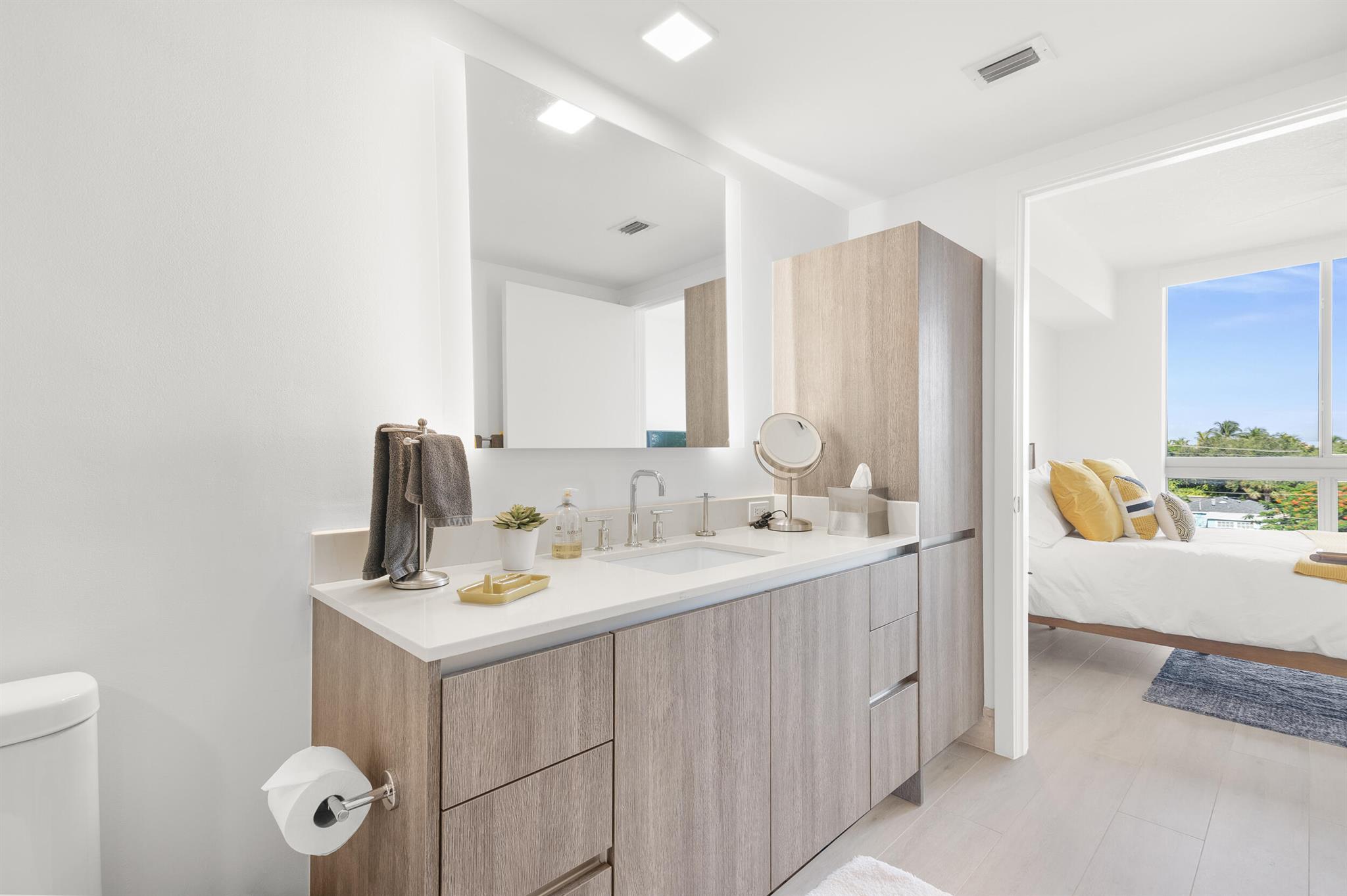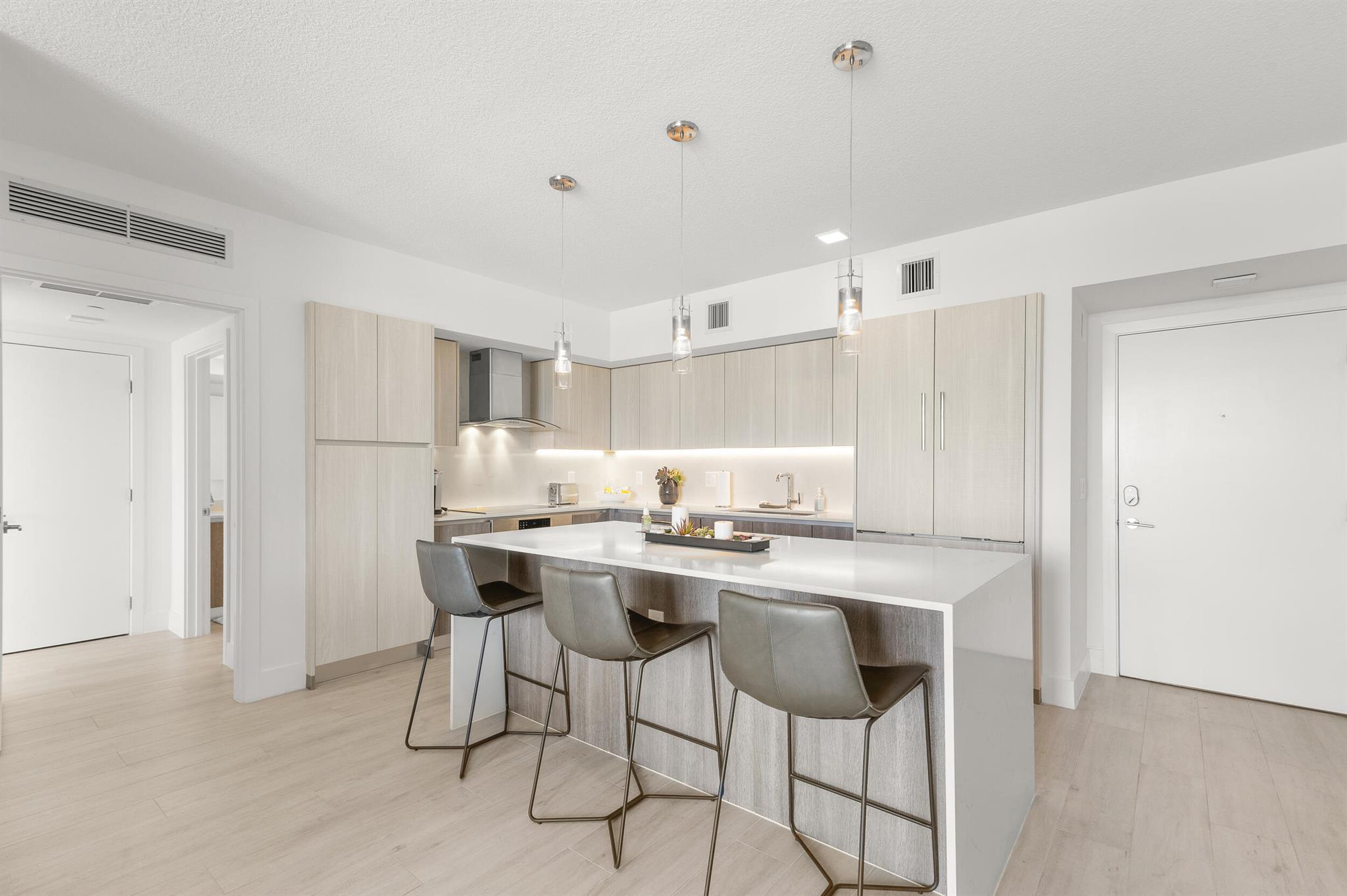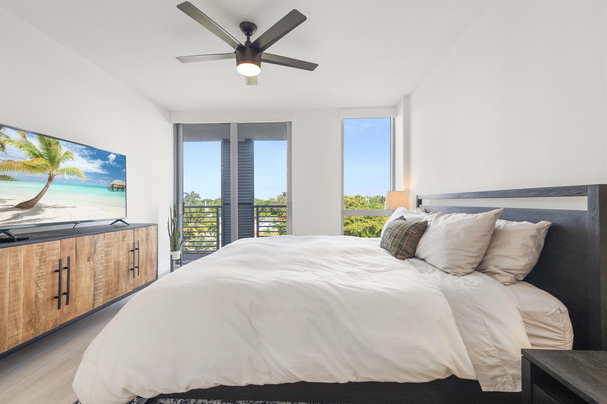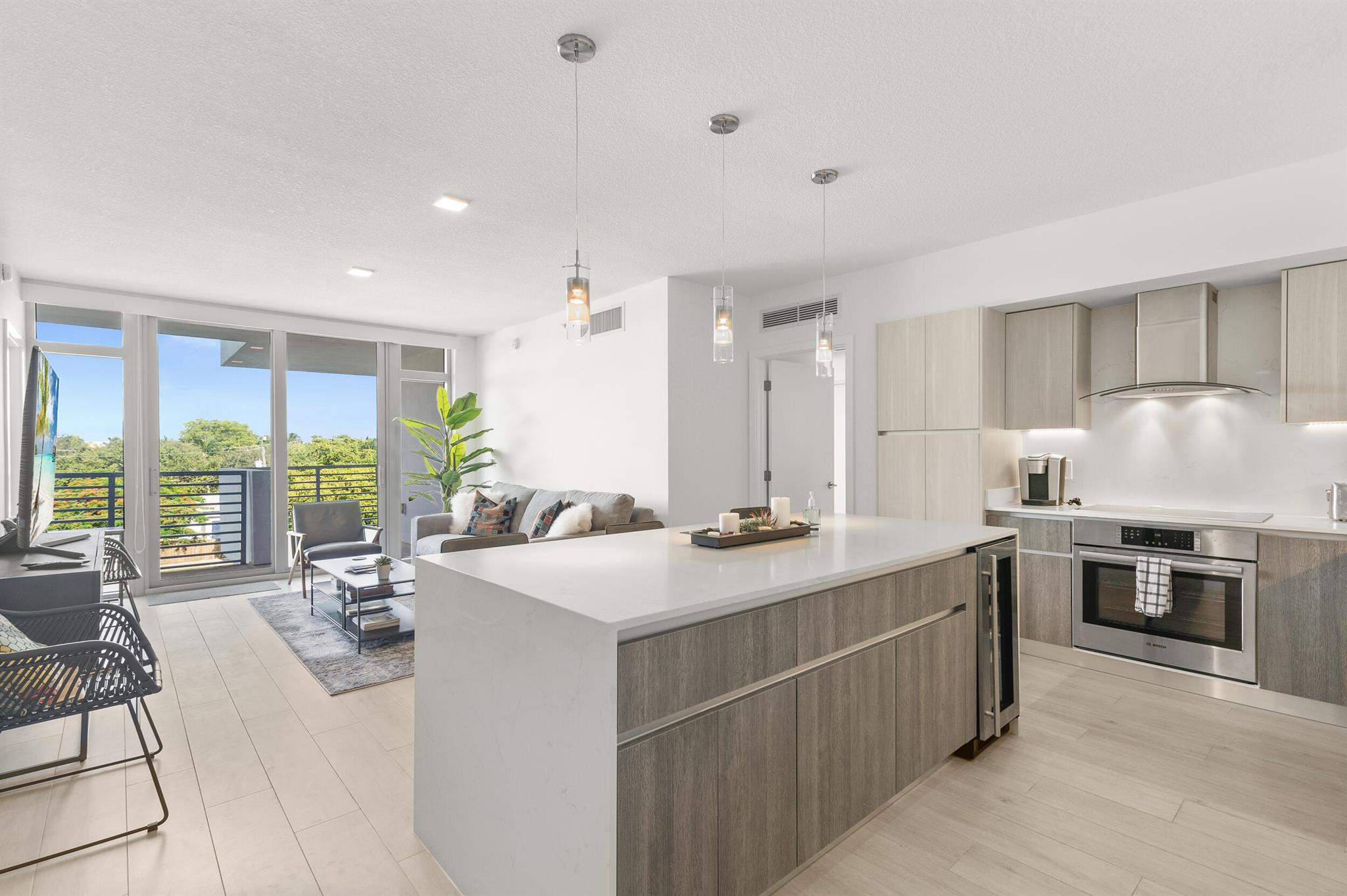 Contemporary urban living 1 block away from Atlantic Ave in Downtown Delray and fully furnished! 111 First Delray Beach is a sleek 66-unit, smart building and beautifully designed. Unit 414 is equipped with Bosch appliances, wine cooler, modern-day technology, plus: Home automation system Designer selected finishes with upgrade options Secure and covered resident parking #71 with extraordinary guest parking * Secure bicycle parking and private storage space #44 * State-of-the-art fitness center overlooking pool * Entertainment deck includes swimming pool, cabanas, summer kitchen, bar, billiards, fire pit, and TVs * Atrium lobby * Low COA dues * library/office room. Unit has upgraded Leviton light dimmers, 2 interior RING camera's and electronic window shades. Comes Fully Furnished.