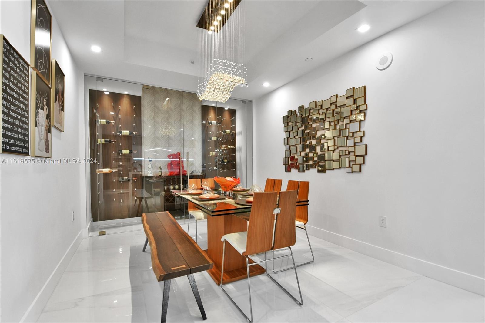 This exquisite unit features 3 bedrooms, 3 full bathrooms, and 1 powder room. Enjoy a private elevator with foyer, oversized terrace, private balcony in primary bedroom, over $300k in upgrades including a dining area with built-in glass wine cellar, custom wallpaper, electric blackout shades, recessed lighting, Italkraft kitchen cabinetry, custom wood panels, Bosch appliances, and a large kitchen island with stovetop and ample storage. Breathtaking views of the skyline and Biscayne Bay. Building amenities include multiple pools, fitness center, spa, tennis courts, soccer field, boxing studio, and game room. Located in the heart of Miami Worldcenter, surrounded by premier dining, shopping, and entertainment. 1 assigned parking space + the right to valet park a second vehicle complimentary.