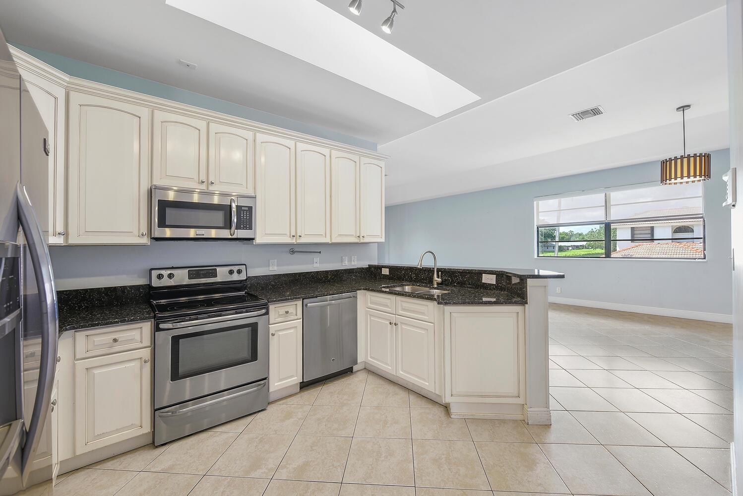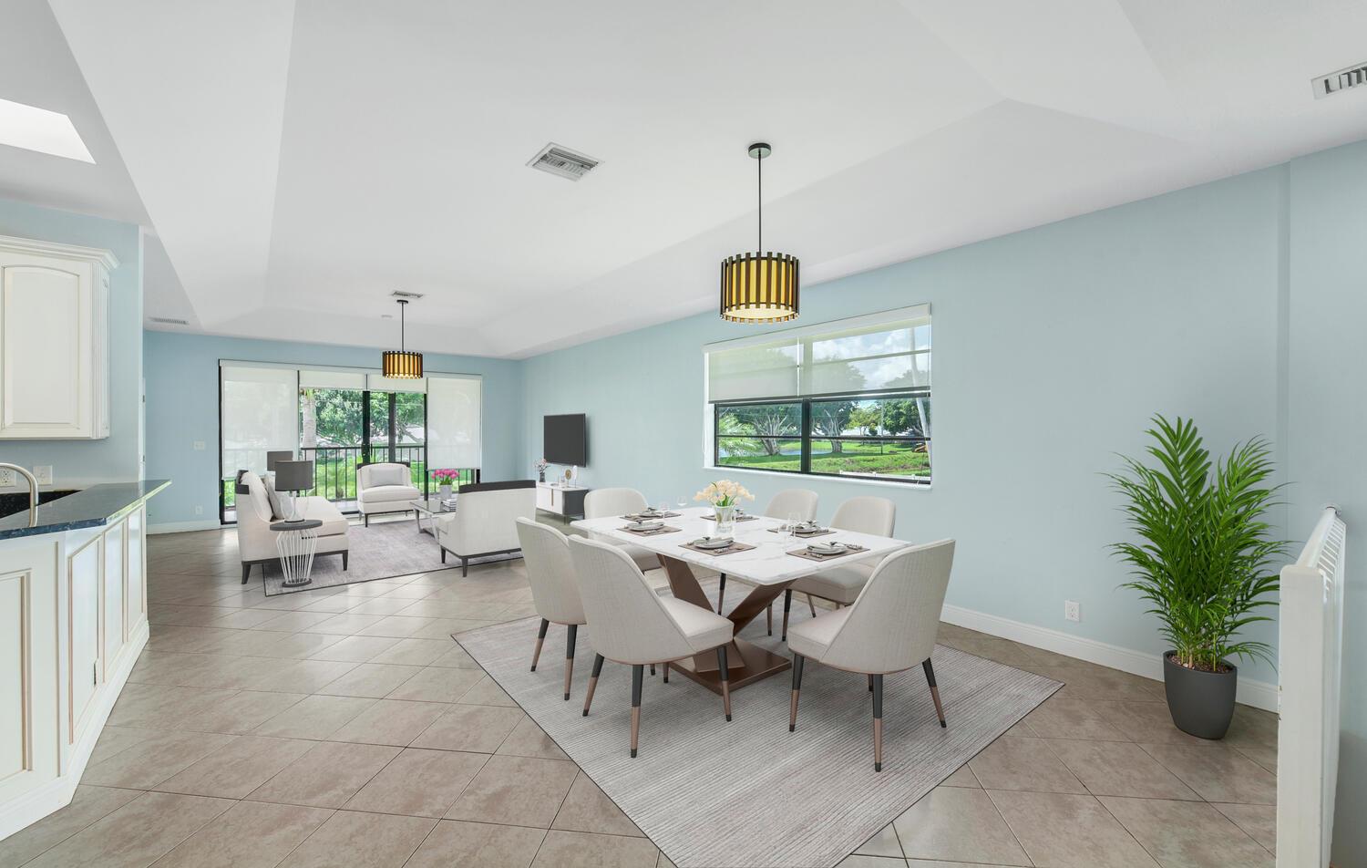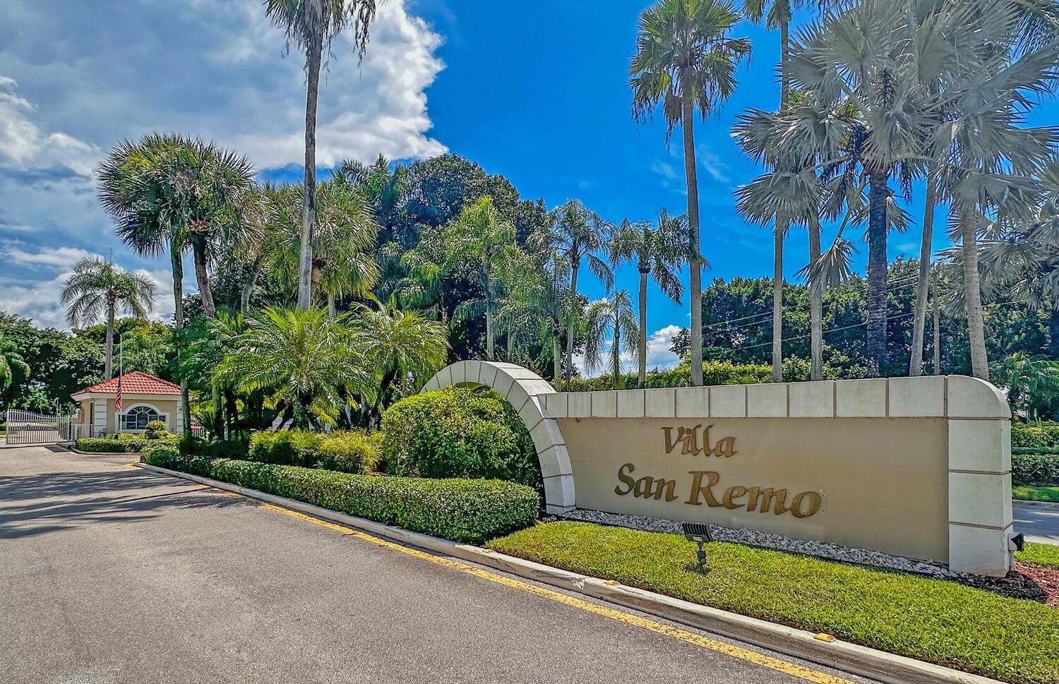 Spacious 3 bedroom, 2 bath, corner unit with private 1 car garage. Light and bright, high ceilings, tile throughout living areas, wood-look laminate in bedrooms. Huge great room. Flex area off kitchen that could used as an additional dining area, office or play area. Both Great Room and Main Suite have access to the screened balcony. Villa San Remo is a guard gated community with a recently renovated club house and many amenities. Including, Exercise room, Resort Style Pool, tennis, pickleball, basketball, playground and more. Conveniently located near schools, shopping, dining, & entertainment.