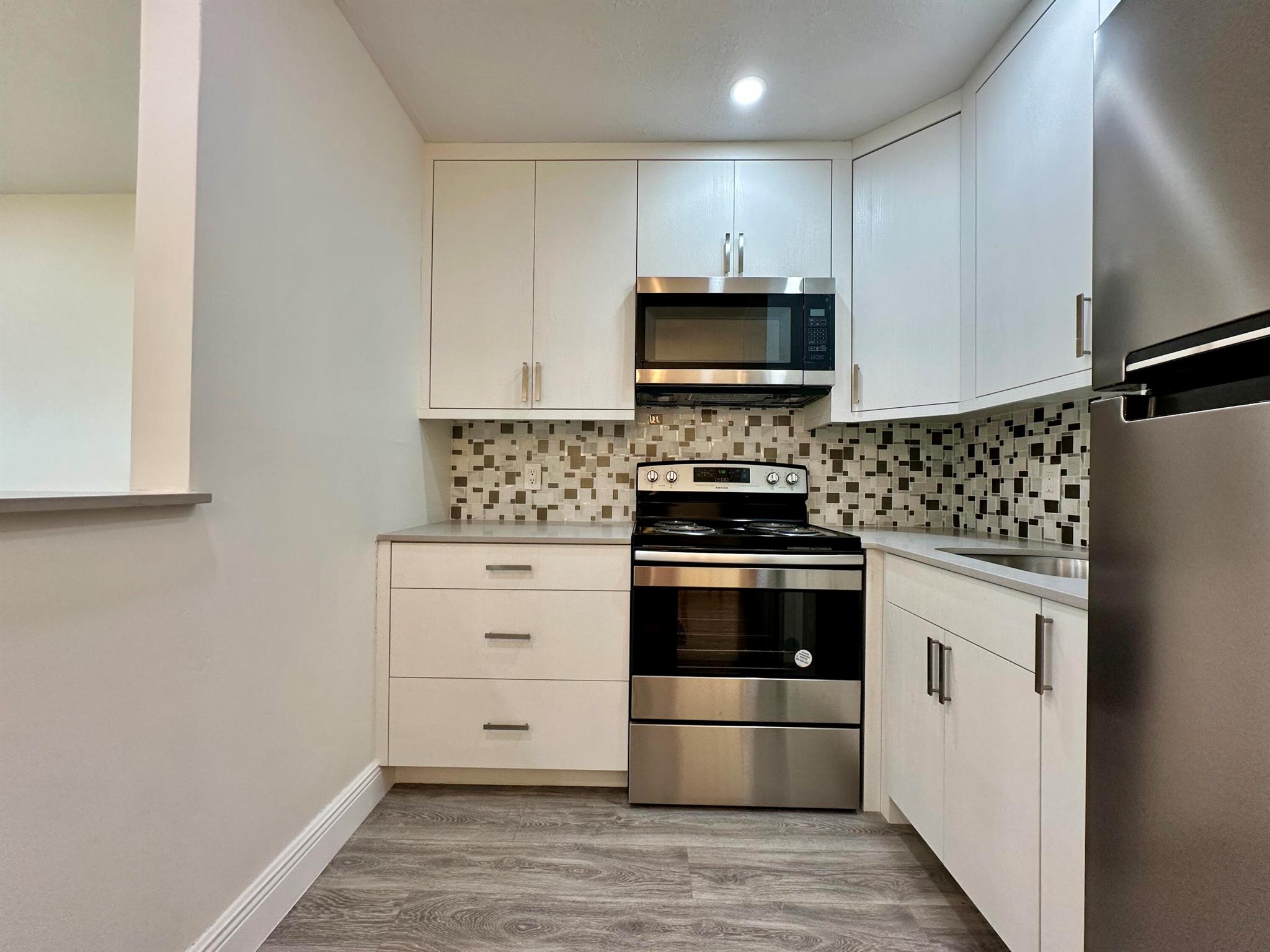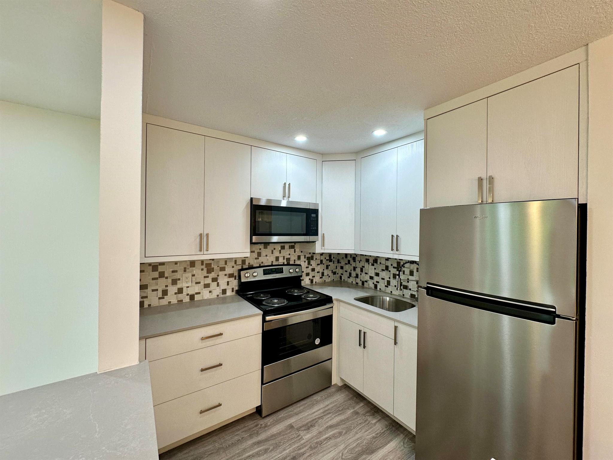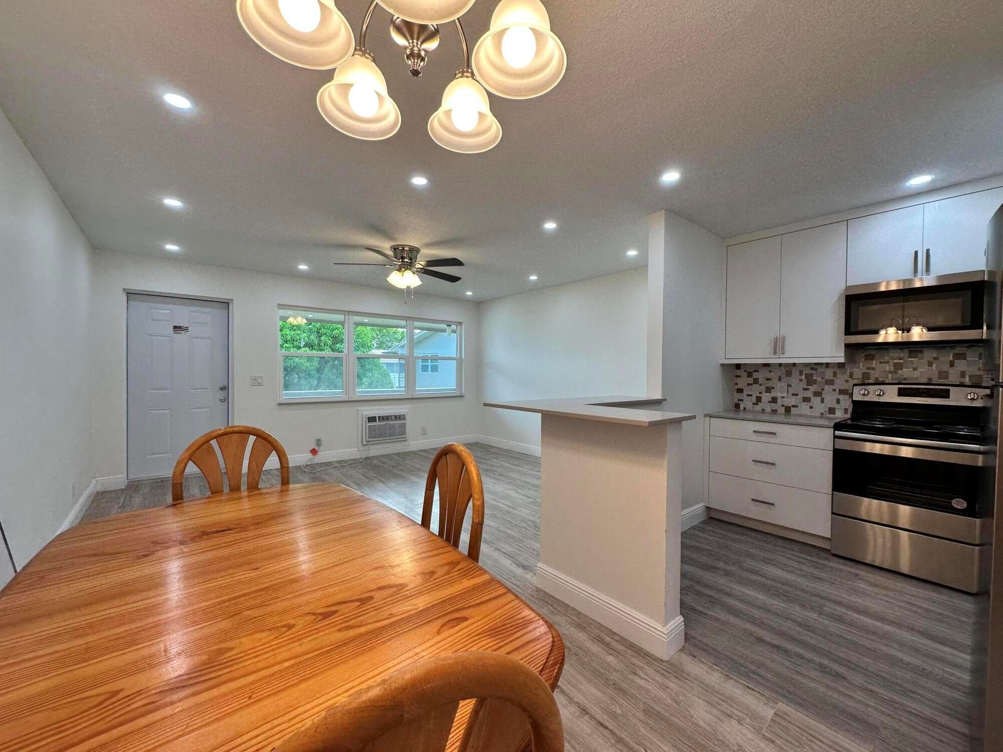 Beautifully Updated In 55+ Century Village! Move Right Into This Lovely & Freshly Updated 1/1. New Kitchen With Sleek White Cabinets, Stainless Steel Appliances, Solid Surface Counters, Decorative Tile Backsplash, and High Hat Lights. Updated Full Bath With Tub/Shower Combination. New Luxury Vinyl Plank Flooring Throughout With Updated Baseboards. New Interior Doors (including closet doors). High Hat Lighting in Living Area. Popcorn Removed from Ceiling. Pretty Resident Patio Area. Century Village is a 55+ Resort Style community with so much to offer - Much To Offer...