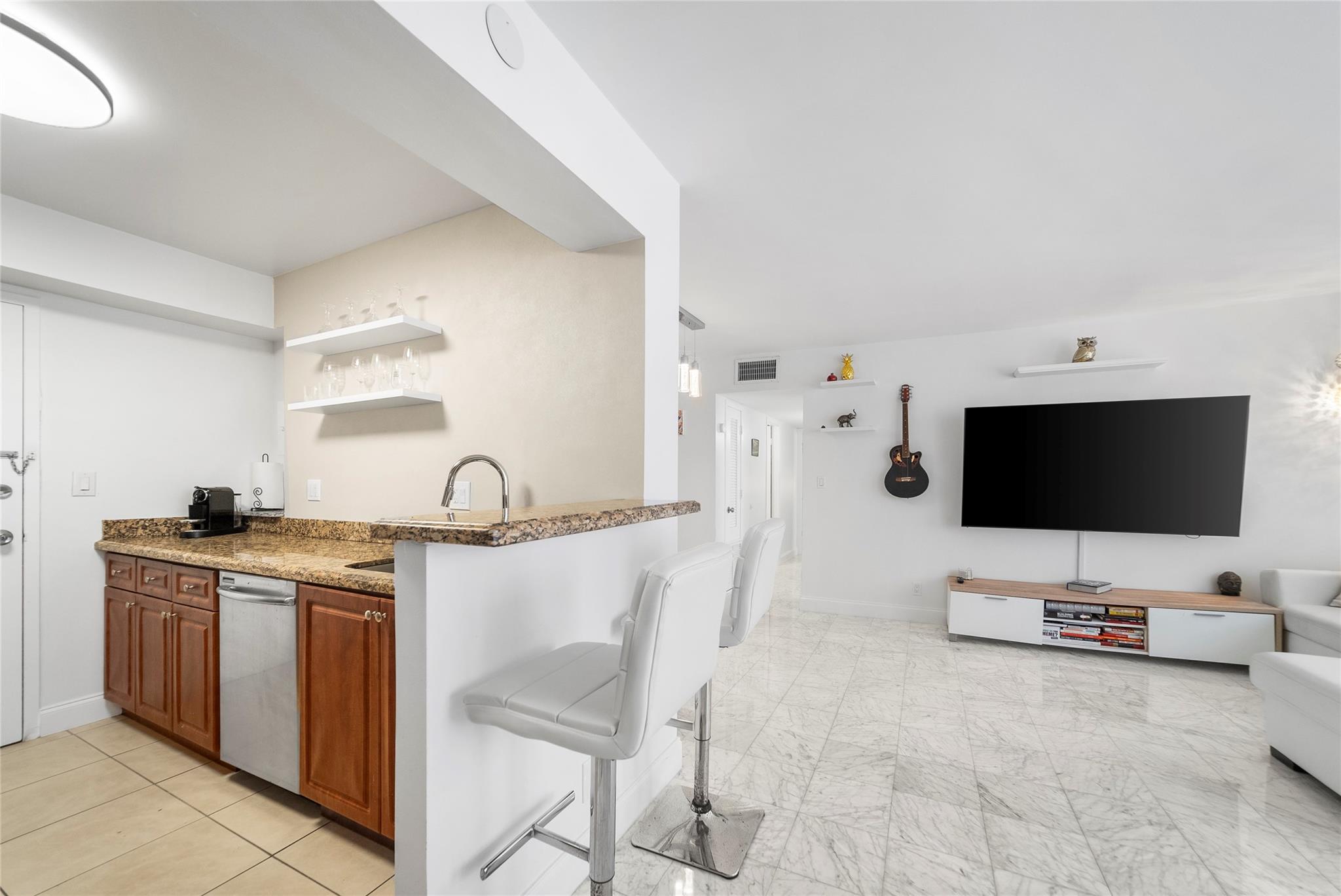 Just a mile from Hallandale Beach! This charming condo offers the perfect blend of coastal living and modern comfort. Step inside to discover updated bathrooms and a kitchen. The open floor plan creates a spacious feel, tile floors throughout. Natural light pours in through large windows, illuminating the living areas and highlighting the serene atmosphere. Step out onto your private balcony. For boating enthusiasts, the option to rent a dock allows for convenient access to the water, making it easy to indulge in leisurely days on the waves. Whether you're seeking a weekend getaway or a year-round residence, this condo offers a unique opportunity to embrace the best of coastal living. Don't miss out on making this beachside retreat your new home!