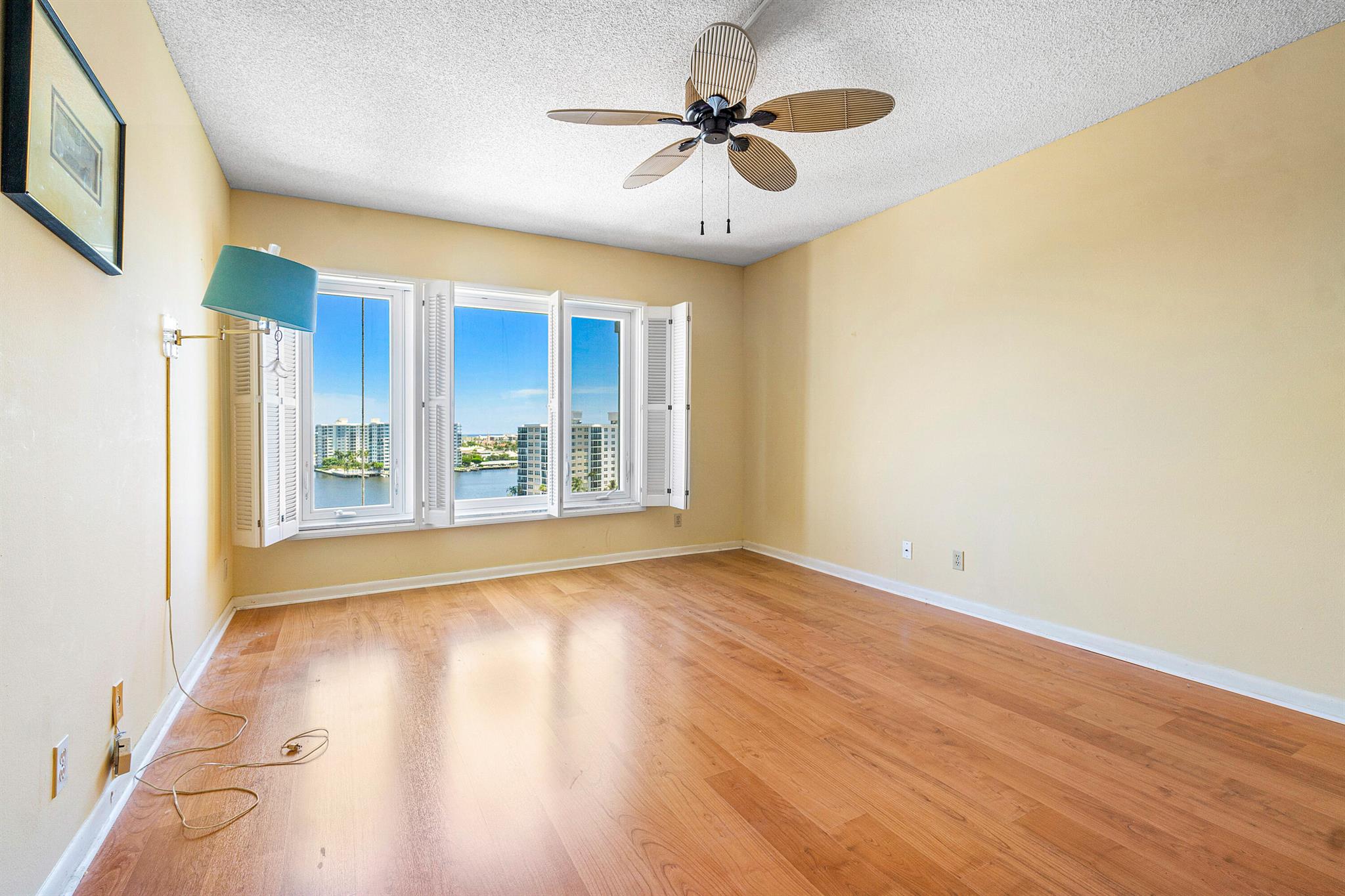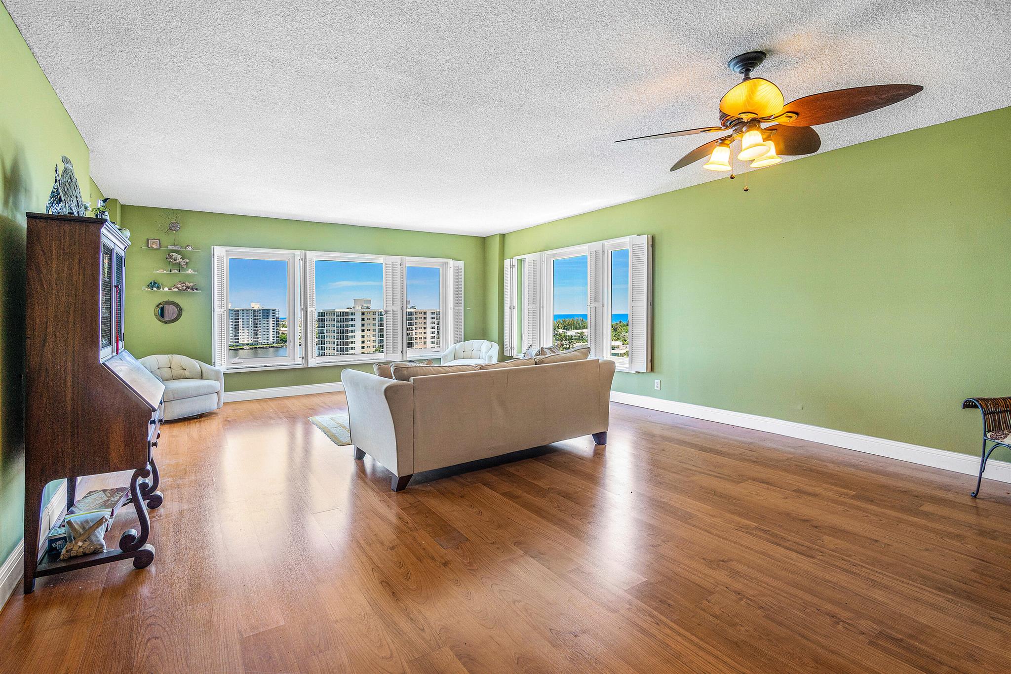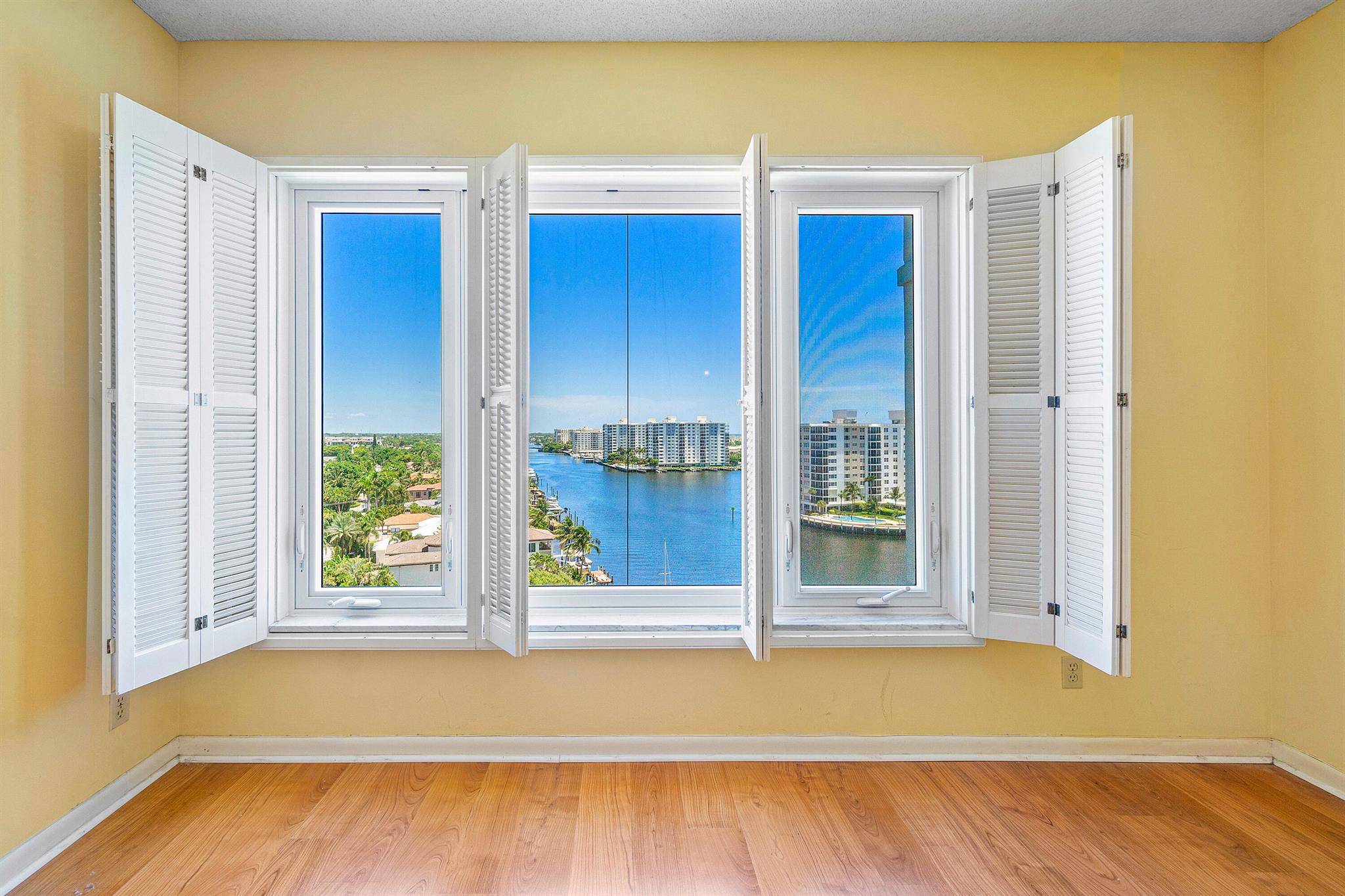 11th floor, 2/2 with waterfront views of the ICW and the Atlantic Ocean. This unit is a solution for a buyer that is looking for incredible views with an opportunity to make the unit their own. A carport space is assigned to the unit. Short distance (.64 miles) to Atlantic Ave. Short distance (1.2 miles) to the beach. 24/7 security. Impact windows. Application fee is $150 and deposit is a $500 refundable move-in deposit. Financing requires 20% down. No rentals allowed. No Pets. No Washer and Dryer in unit. Common laundry room on each floor. Additional 85 sq. ft. of the enclosed porch area is included in the living sq. ft. All measurements are approximate and subject to error, omission, and changes without notice.