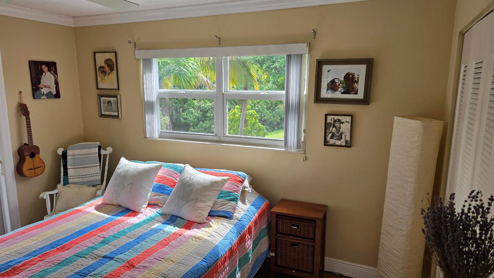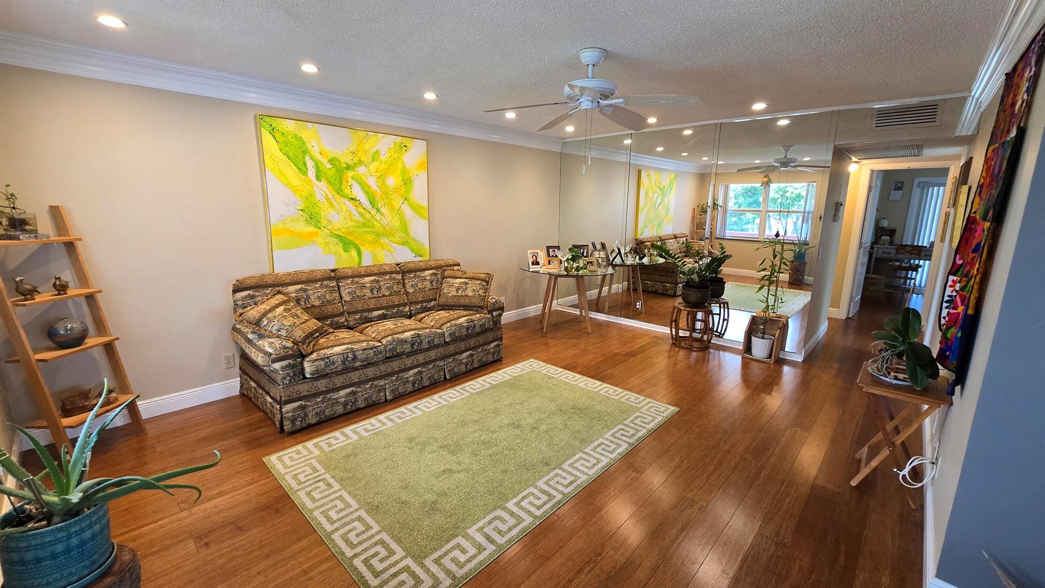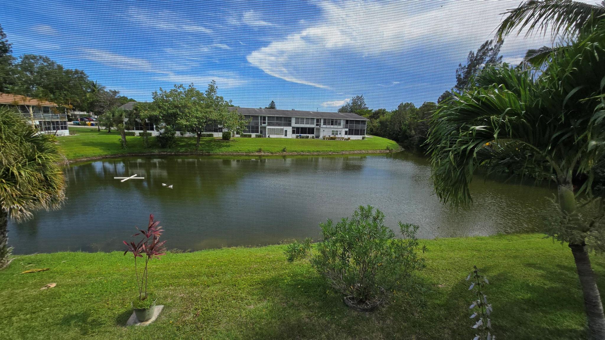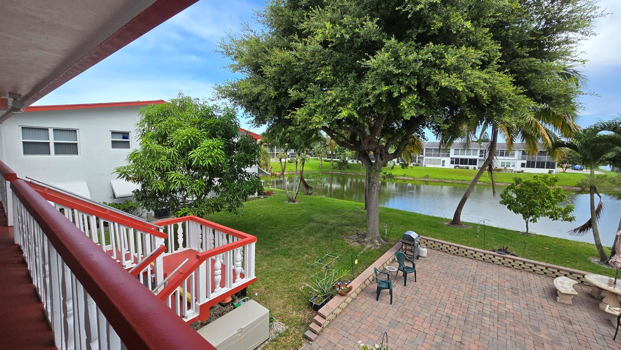 A must-see peaceful lakefront TURN-KEY condo! This end-unis has many upgrades and great attention to detail has been given. It features: granite countertops, remodeled cabinetry, all impact glass, hardwood flooring throughout, crown molding and customized closets. A/C from 2016 and water heater from 2023.This condo is an oasis of tranquility in the resort style Century Village which offers many amenities!