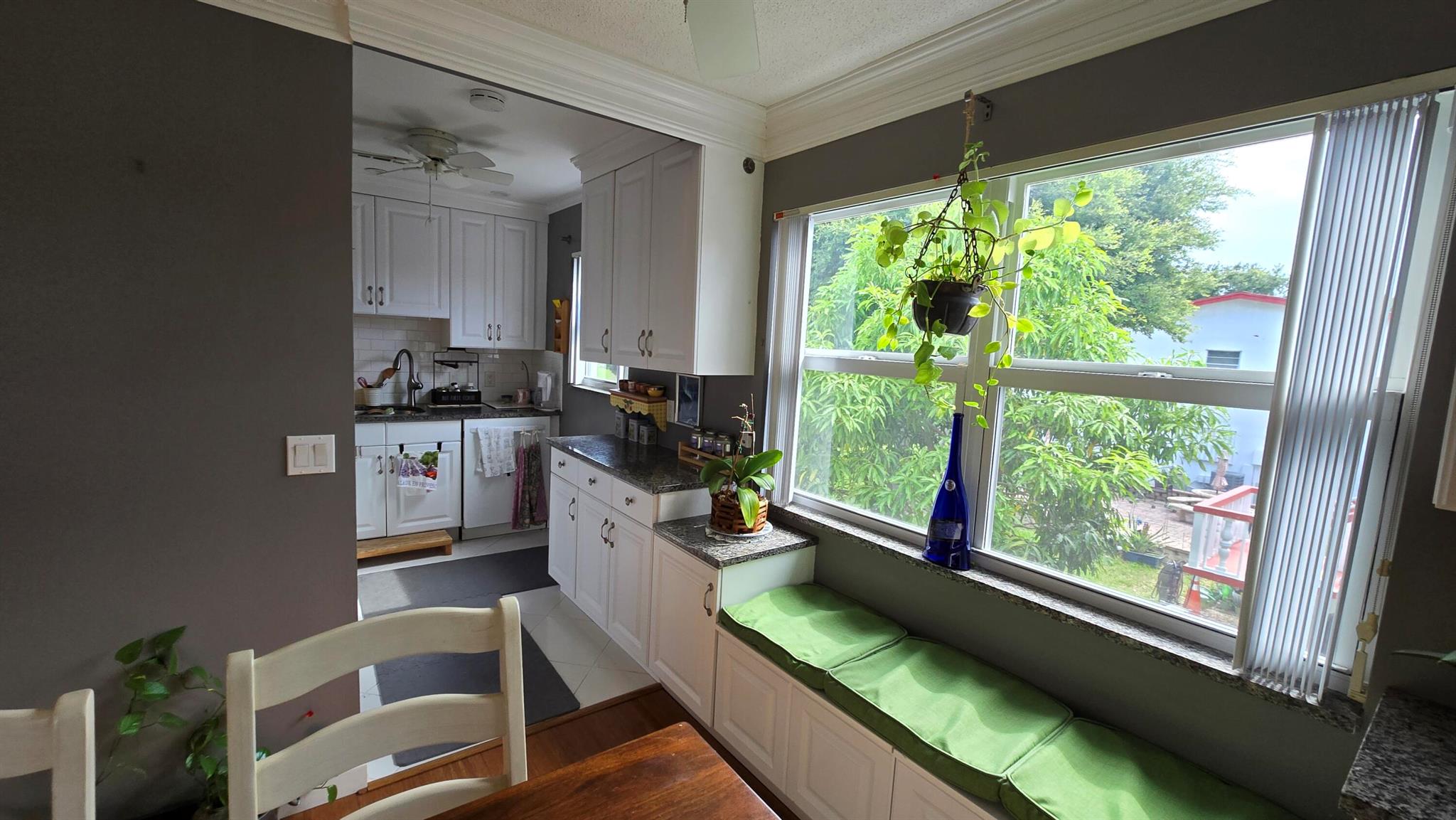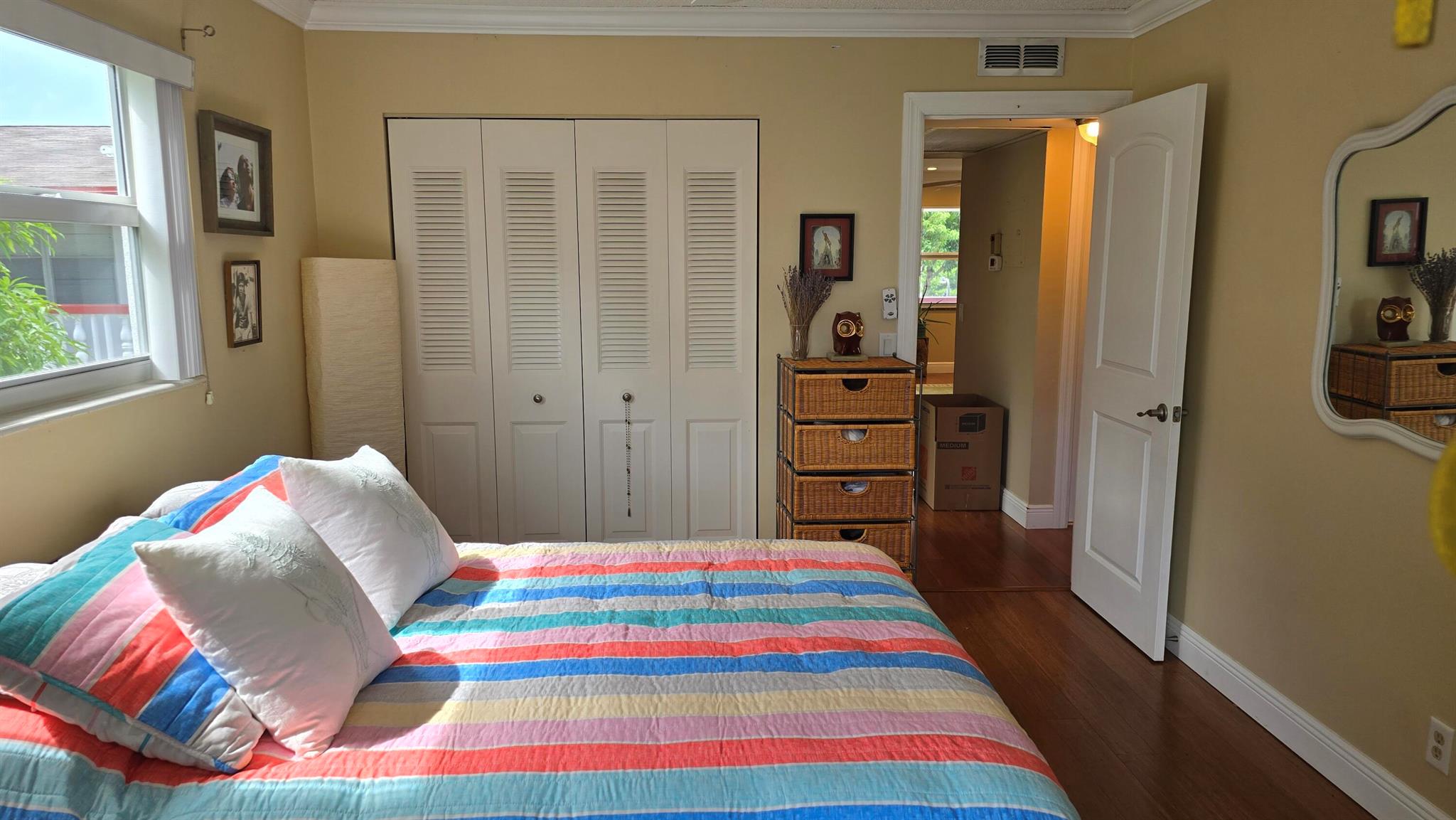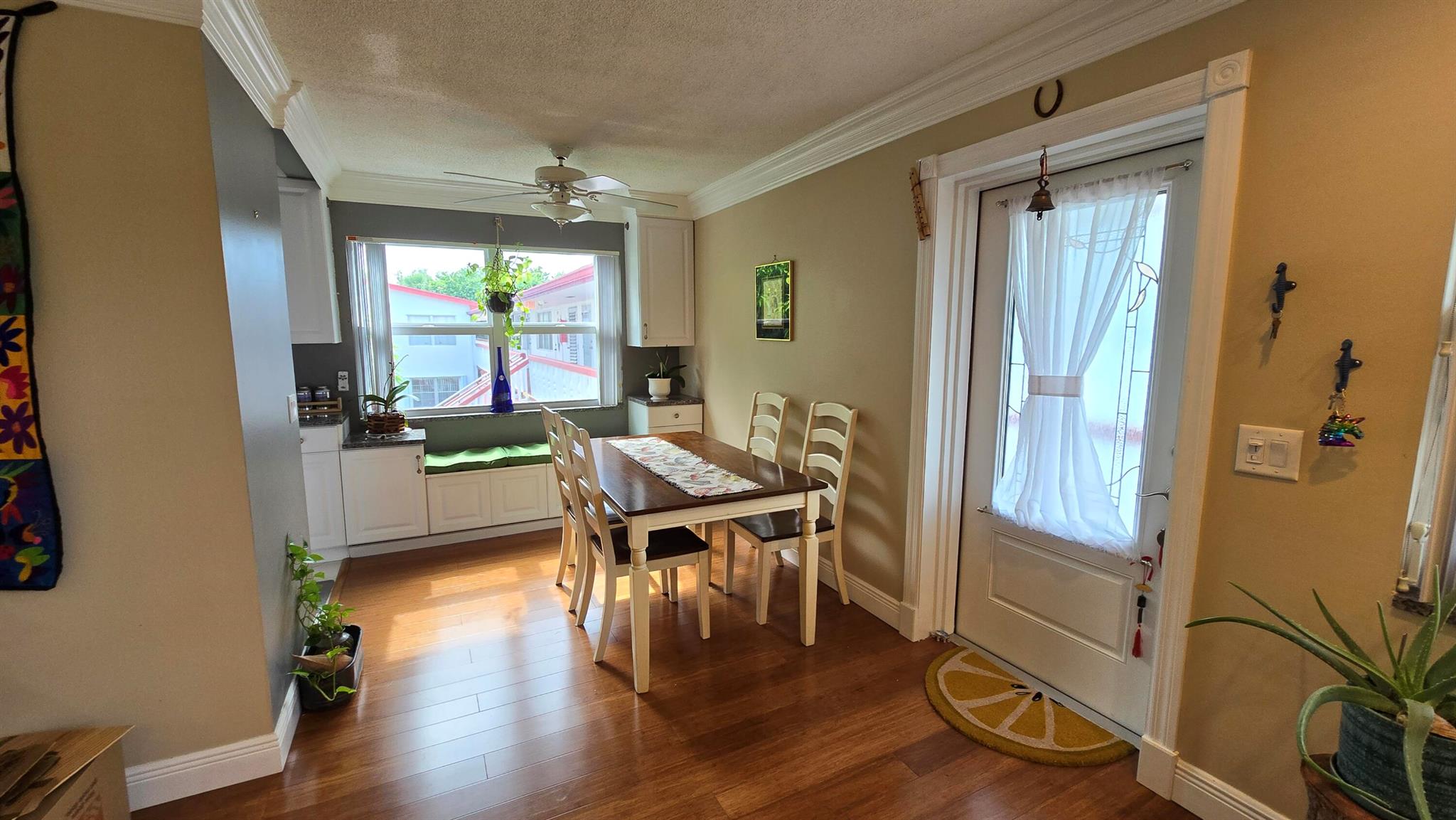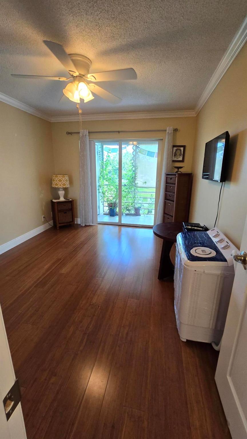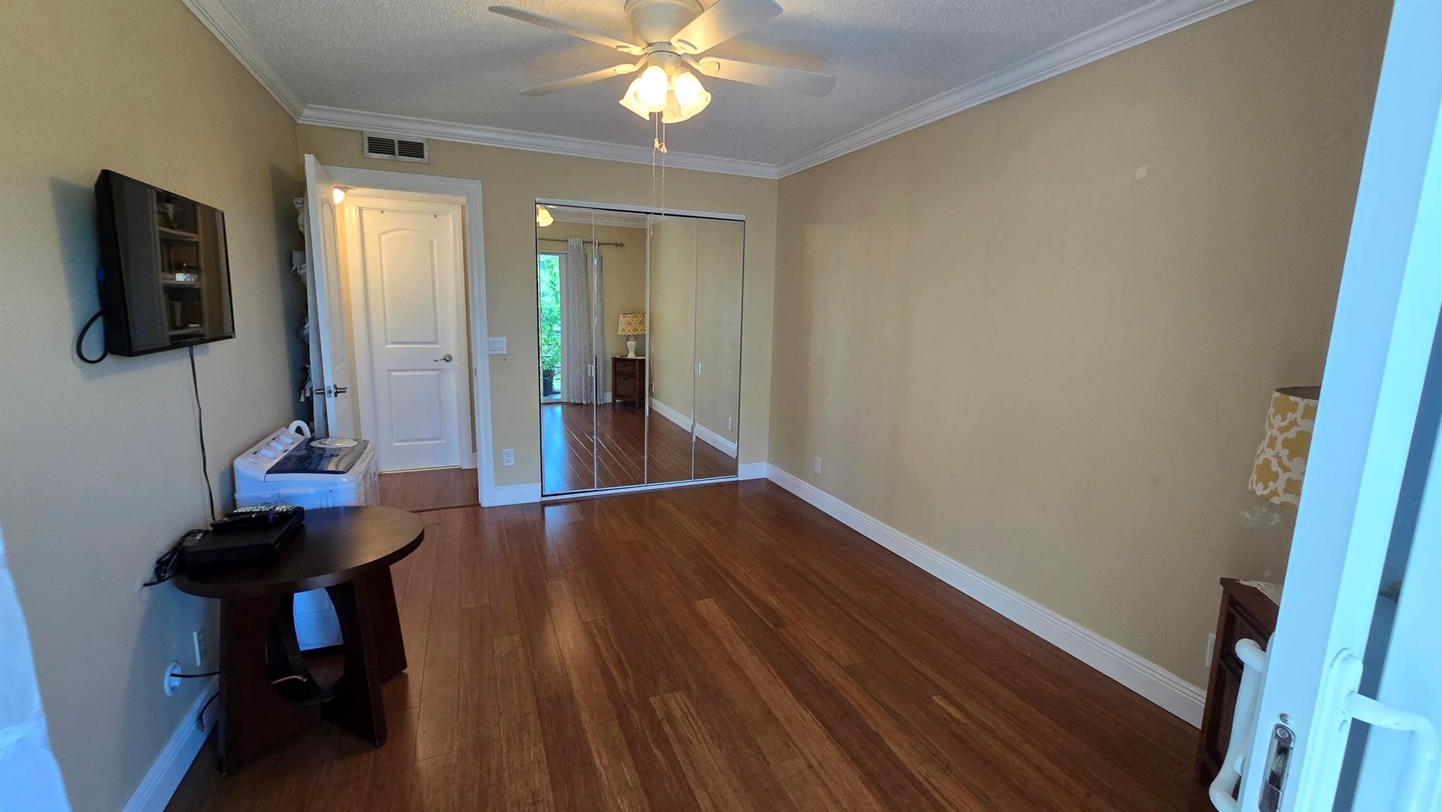 A must-see peaceful lakefront TURN-KEY condo! This end-unis has many upgrades and great attention to detail has been given. It features: granite countertops, remodeled cabinetry, all impact glass, hardwood flooring throughout, crown molding and customized closets. A/C from 2016 and water heater from 2023.This condo is an oasis of tranquility in the resort style Century Village which offers many amenities!