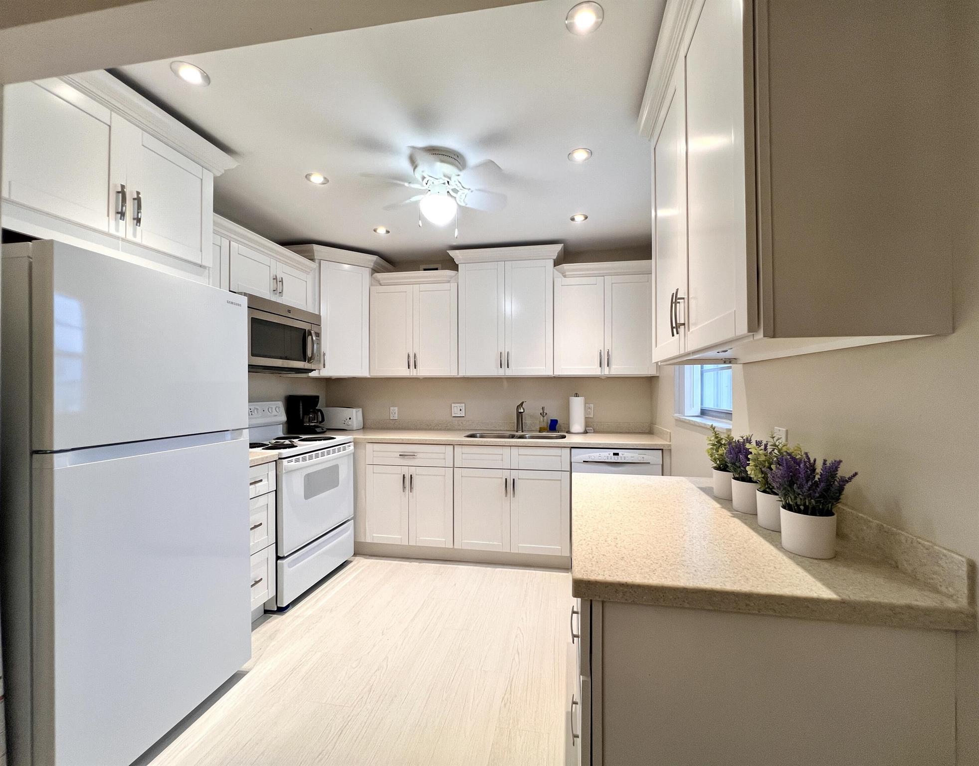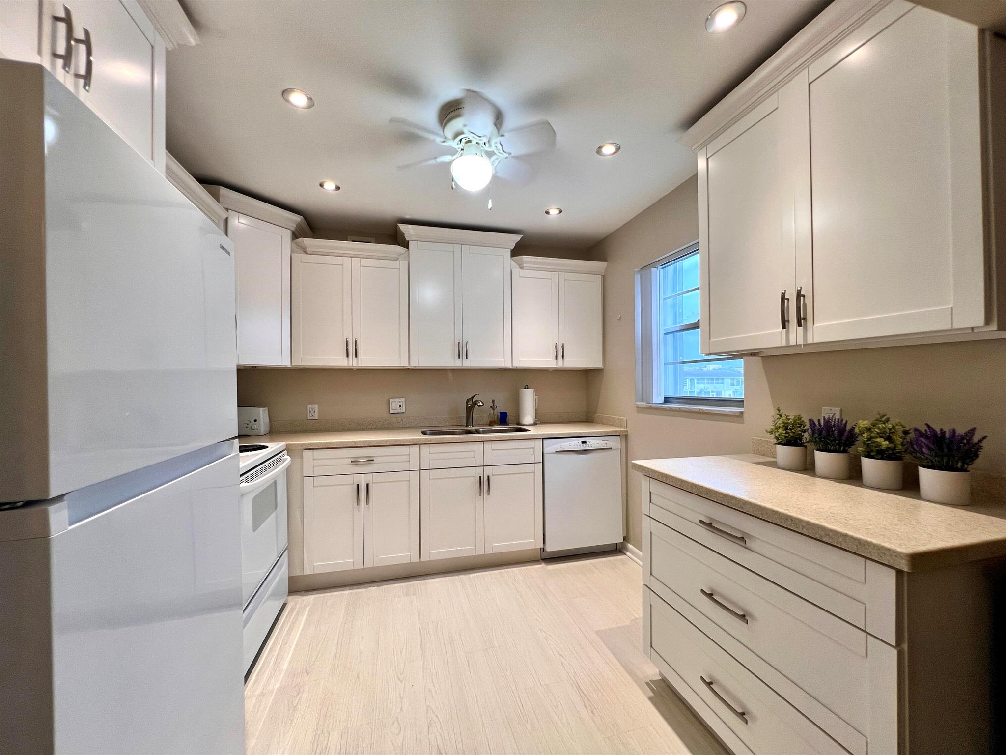 A Lot To Love In 55+ Century Village! Lovely Somerset 2/2 CORNER Condo With Pretty Views of Lake Somerset. Updated Kitchen With White Shaker Style Cabinets, Solid Surface Counters, Newer Appliances (including a Bosch dishwasher), High-hat Lights, and A Window to take in the Water Views! Two Full Baths - One is Nicely Updated With a Step In Shower. Both Bedrooms Feature Water Views and Direct Access to the Lanai Updated Neutral Wood Laminate Flooring Throughout. Long Lanai Offers Pretty Water Views. Hurricane Accordion Shutters All Around. Sold With Tasteful Lightly Used Furnishings - *EXCLUDES Couch. Fantastic Location Close to the Main Clubhouse. Somerset H Features A Lift, Second Floor Laundry, A Resident Patio Area, and Metal Roof.