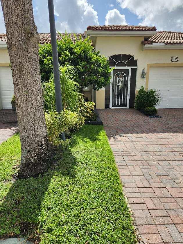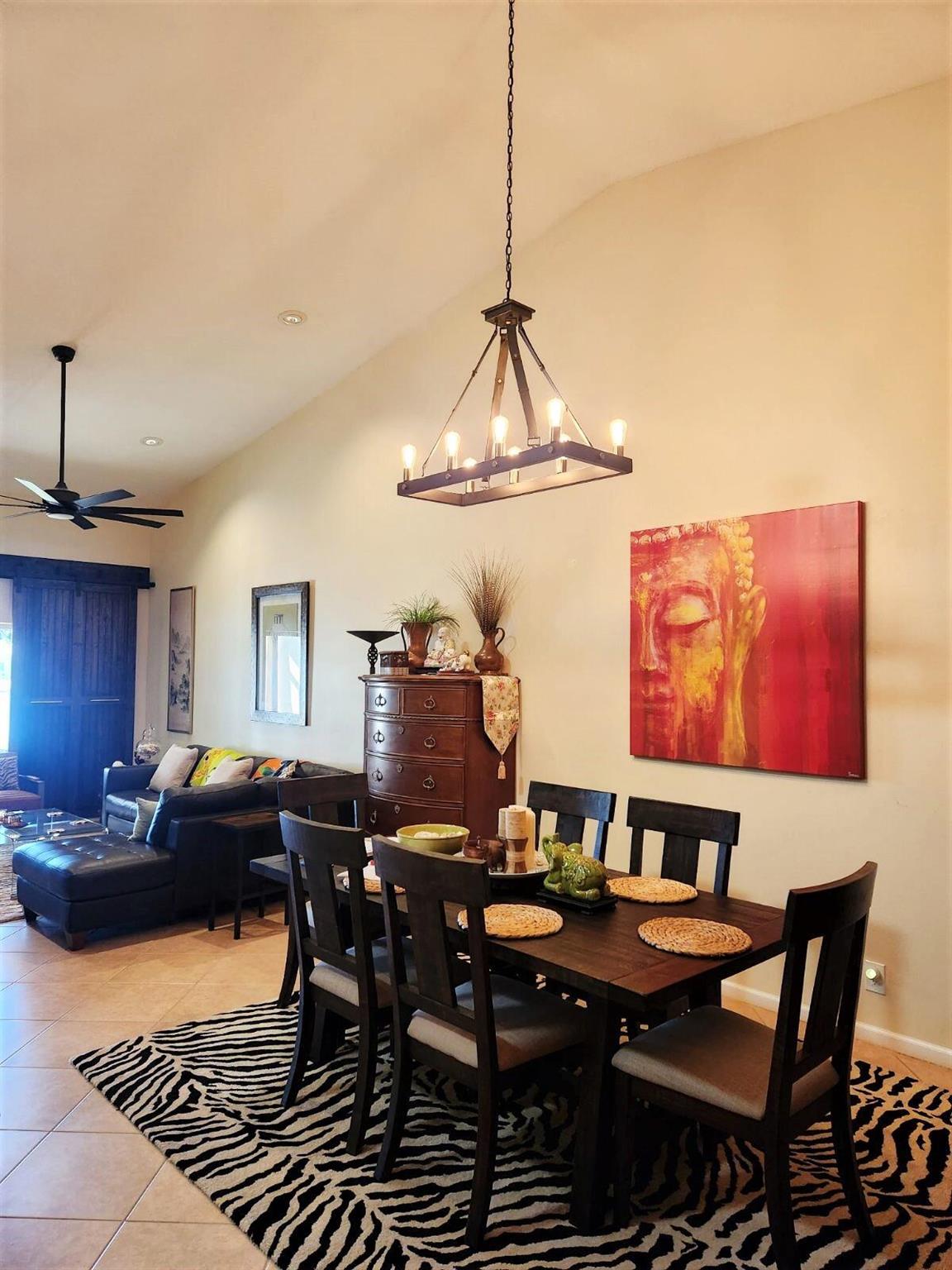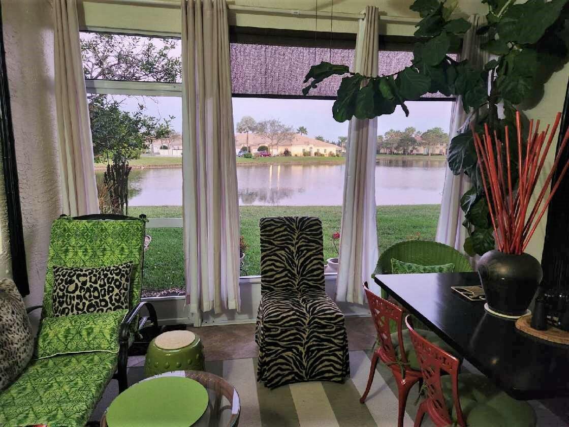 Imagine a serene lakefront villa nestled within a vibrant 55+ community, offering a perfect blend of complete relaxation at one of 3 pools, or indulge your sporting skills with all the available amenities. This villa had been tastefully renovated from the kitchen to the bathrooms, enhances with artful barn doors reflecting a sense of both style and coziness. The open floor plan seamlessly connects the living room to the dining area and a fully equipped kitchen, complete with sleek countertops, beautiful white cabinets, soft close drawers and gorgeous white appliances that give it a clean, crisp look.The villa boasts two generously sized bedrooms, each offering privacy and comfort. The Primary bedroom has a lovely ensuite bathroom with plenty of closet space. Private shower and commode