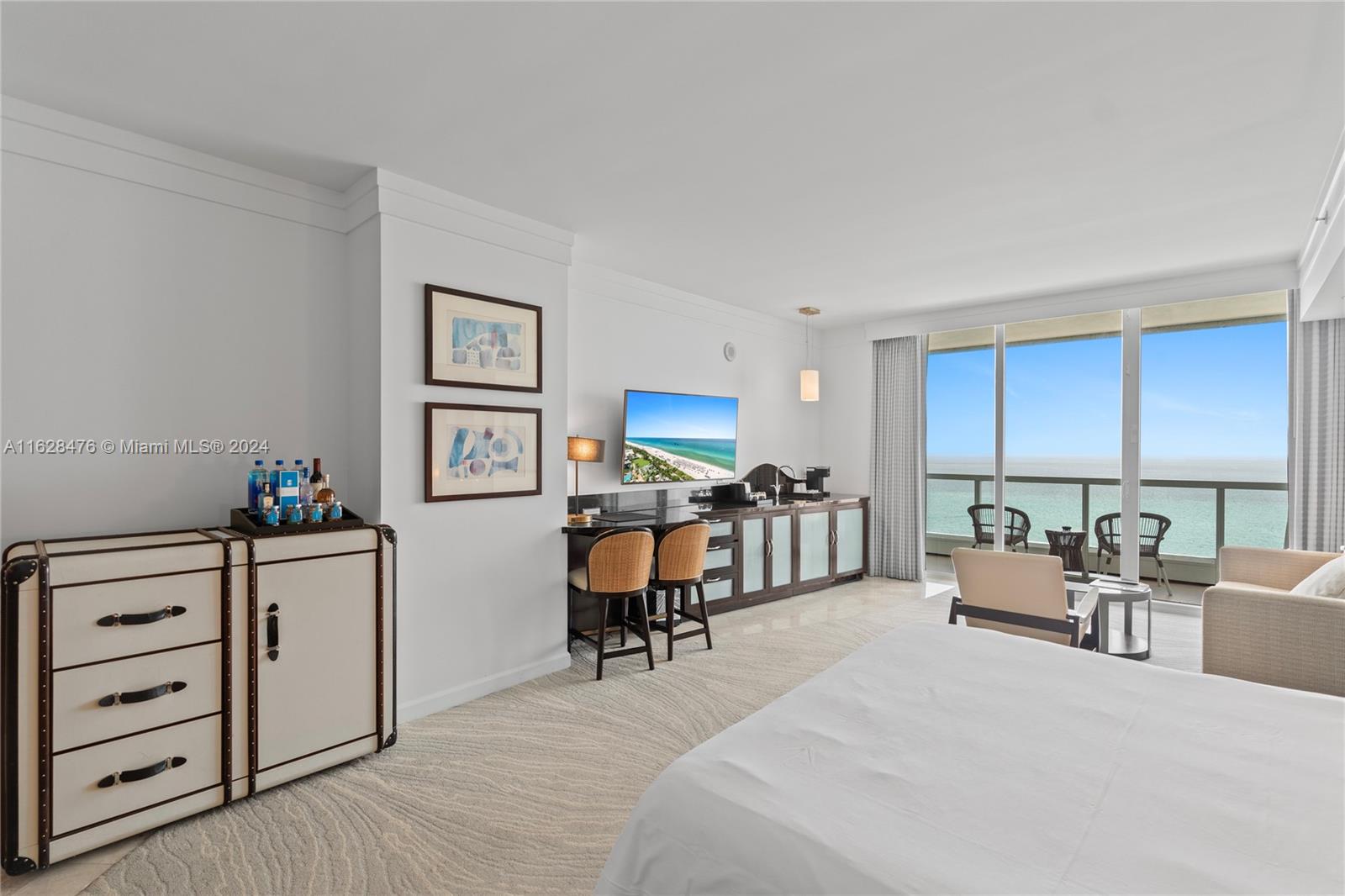 Enjoy breathtaking unobstructed ocean, bay, & city views from this 18th-floor, fully furnished 2BD/2.5BA corner unit at Fontainebleau III resort. This direct oceanfront double unit features a private entrance foyer, 2 balconies including a unique 621 sqft expansive wrap-around balcony perfect for entertaining, 2 king beds, 2 sleeper sofas, a complete kitchen, & a washer/dryer. Enjoy full service, vacation-style living! Option to enroll in hotel rental program & receive income while away! The Fontainebleau resort offers award-winning restaurants, LIV night club, Lapis spa & gym, bakery, shops, salon and more. Maintenance fees include all utilities: AC, internet, cable, local calls, electricity, valet + daily free breakfast in owner's lounge. Click the virtual tour link to see a video.