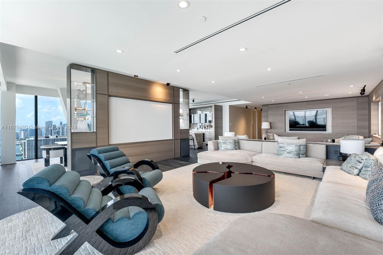 Indulge in luxury living with this 3 BR, 3.5 BA home in the sky, offering unparalleled elegance & sophistication. Spanning 3,500 sq ft, this residence features bespoke finishes, Italian-designed furniture, & rich hardwood flooring. A private foyer leads to a grand salon w/ panoramic views of Biscayne Bay, Miami Beach, & city skyline. The European-style kitchen boasts custom cabinetry, Wolf appliances, & a natural gas cooktop. Primary suite includes a dressing area, walk-in closet, & formal office. Advanced tech features include Lutron Lighting, Josh AI voice control, & Sonos. Fully furnished, turnkey & move-in ready. 5-star Amenities include: gym, spa, business center, 2 pools w/ bar, catering kitchen, & exclusive Sky Lounge designed by Jean-Louis Denoit.