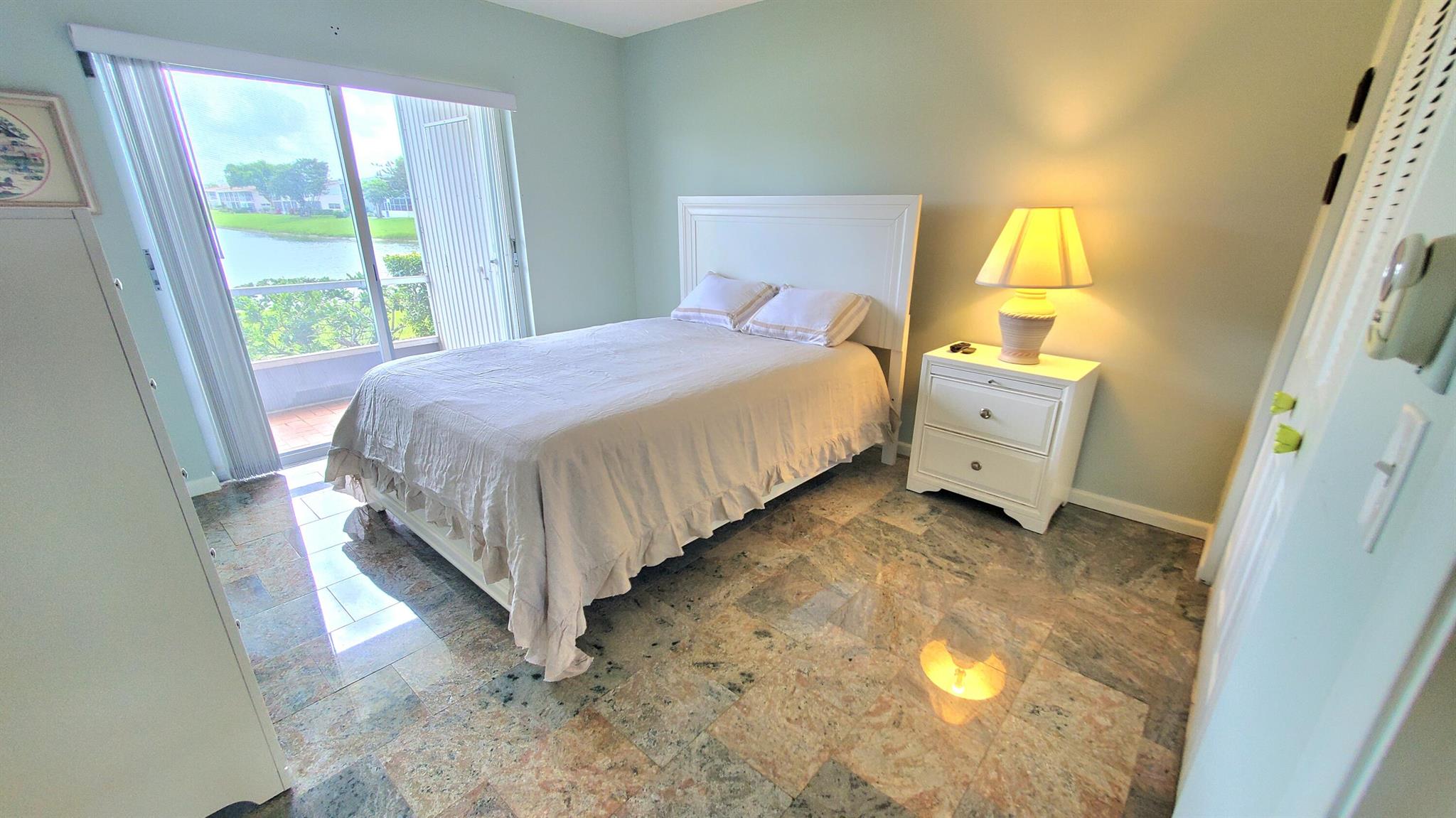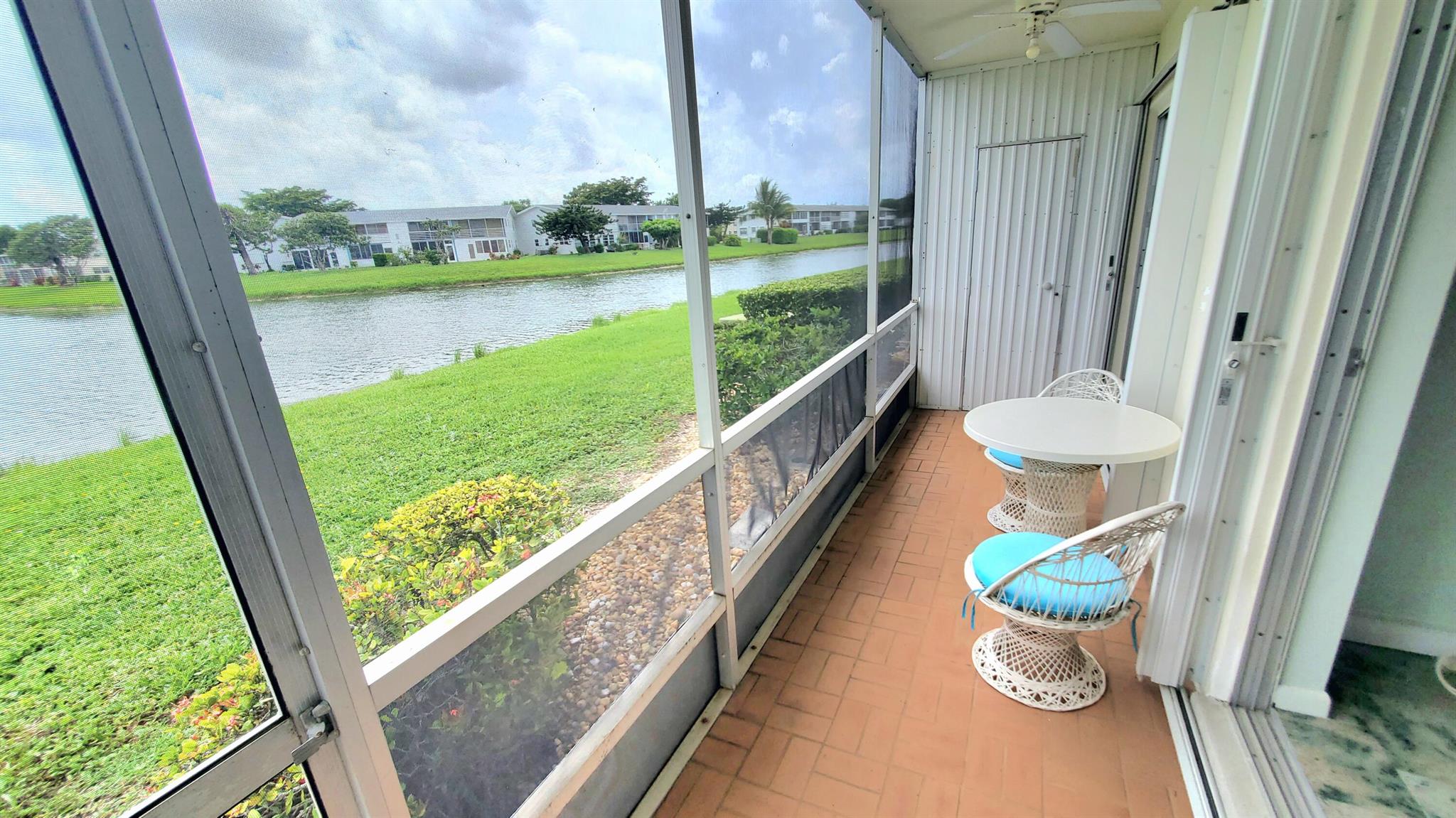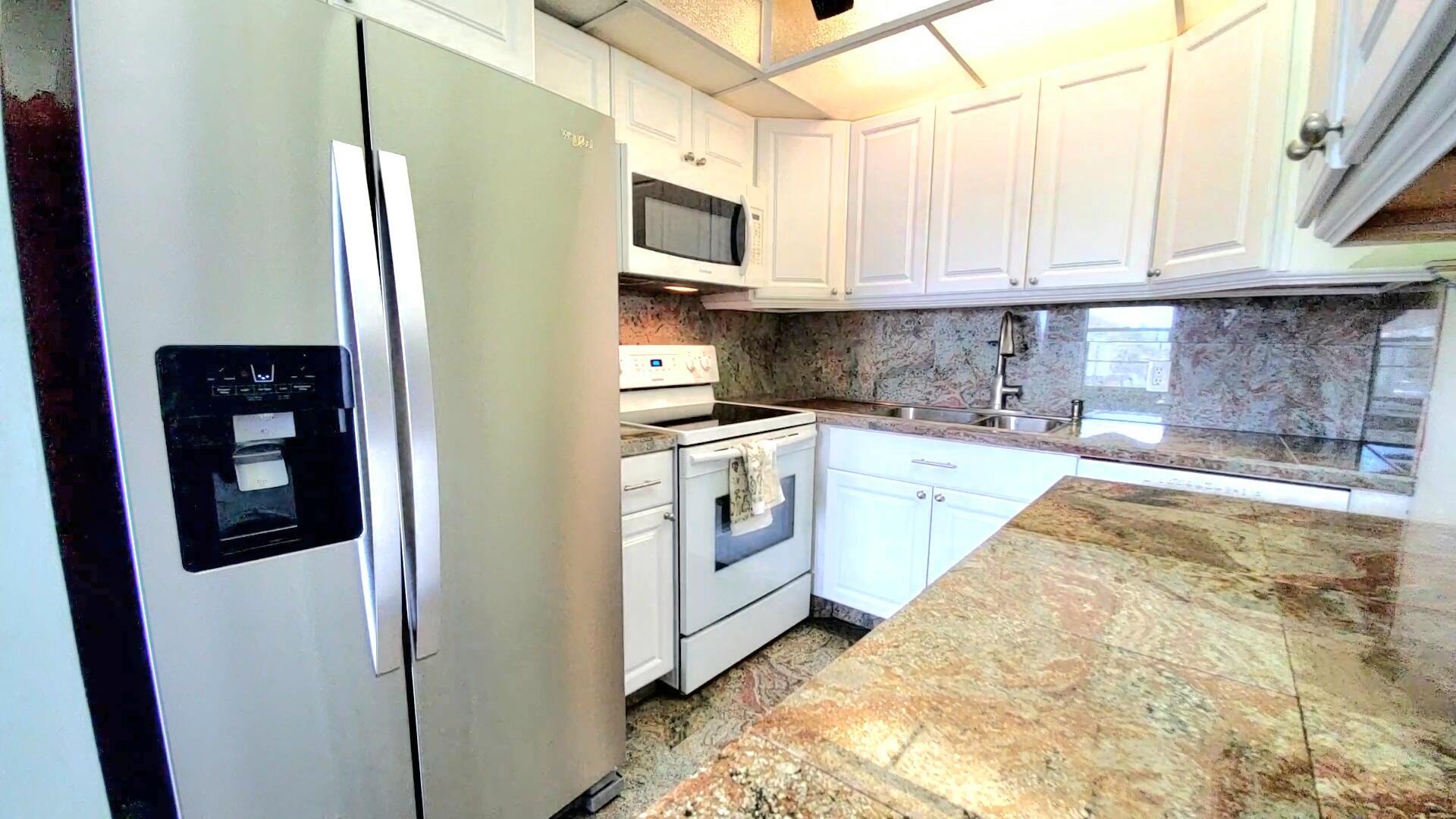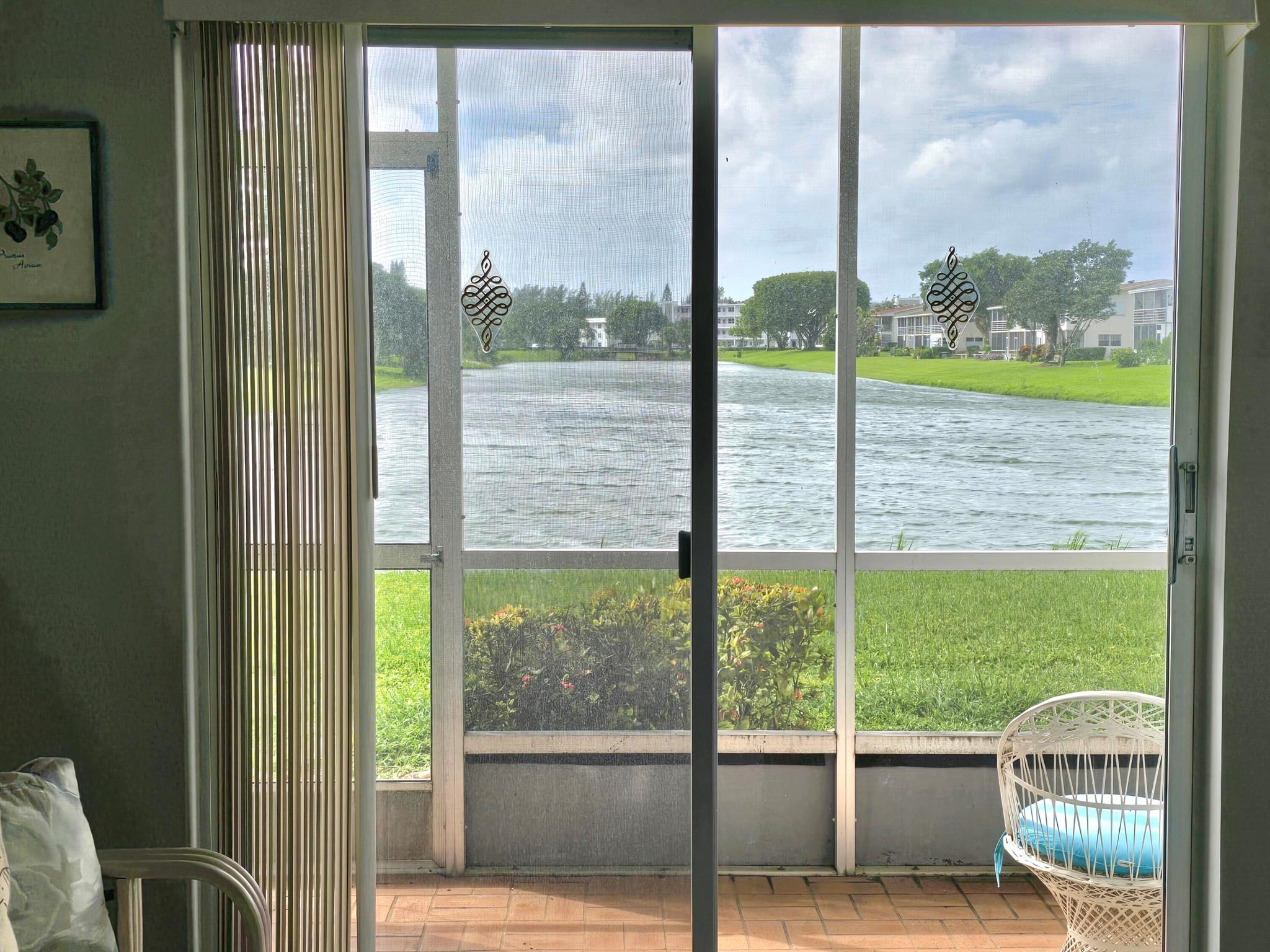 Welcome Home!! Experience stunning water views from the moment you step through the door of this inviting 2-bedroom, 1.5-bathroom condo in WPB Century Village. The unit embodies spacious living, perfect for relaxation or entertaining. Both bedrooms feature glass doors that open to the patio, providing a serene retreat with amazing water views. The kitchen is equipped with nice appliances and granite tiles counter and backsplash. Additionally, the condo is conveniently located next to the laundry room, and your parking spot is just across the front door. Nestled in a prime location, this condo offers easy access to a variety of shopping options and delightful restaurants. Whether you're seeking a peaceful abode or a vibrant community close to all the action, this condo offers it ALL!!