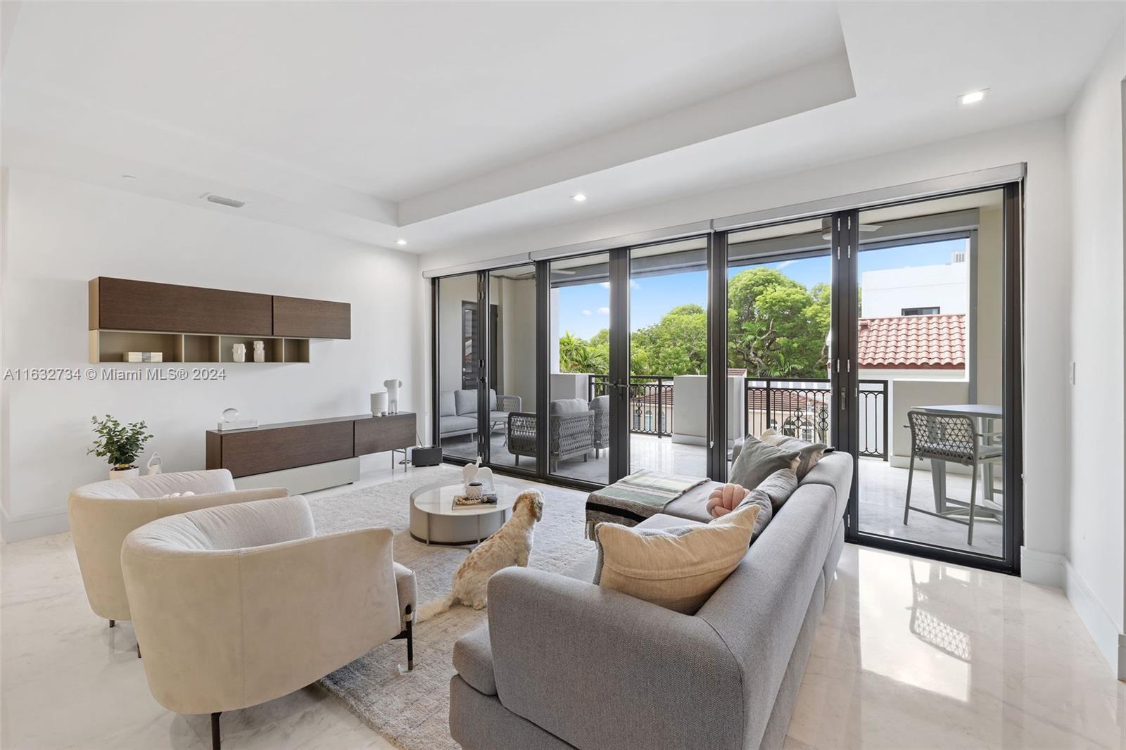 This is a modern Mediterranean condo with 32 units. Built in 2017. It is located in the heart of Coral Gables, within walking distance of the Coral Gables business district, restaurants, boutiques, art galleries, and other entertainment. This unit is a 2 bedroom plus a den, 2 ½ baths, total area of 2,393 sq ft. Features of unit: Modern open-plan unit with plenty of natural light. Private elevator access. 24-hour security. Two (2) reserved parking spaces (covered). Beautiful white marble floor 48” X 48” and engineering wood floor in bedrooms/spacious walking closets. European kitchen with stainless-steel appliances (Bosch). Additional closet in den, designed by California Closet. Walk-in laundry room, with sink. Spacious outdoor living terrace with folding glass doors NanaWall.