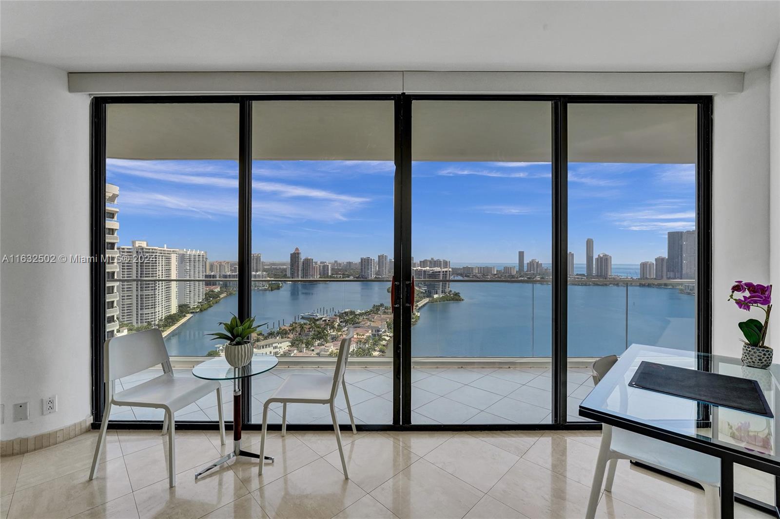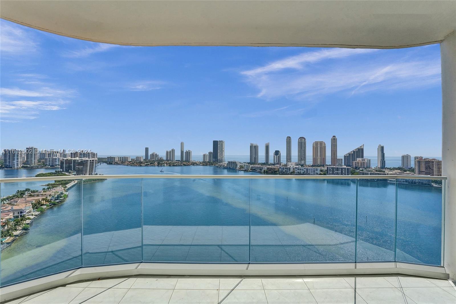 Experience stunning Intracoastal water views from every room in this turnkey 3-bedroom, 3-bathroom sky-high residence with a wraparound balcony, offering both sunrise and sunset vistas. The open floor plan features an expansive master suite with ample closets and an open kitchen. This home is equipped with elegant lighting and shades on every door. Includes a 2-car garage valet parking. Nestled on the prestigious Williams Island, which offers an exclusive and private lifestyle. The 2800 building boasts full-service amenities including a pool, jacuzzi, gym, and more. A pleasure to show.