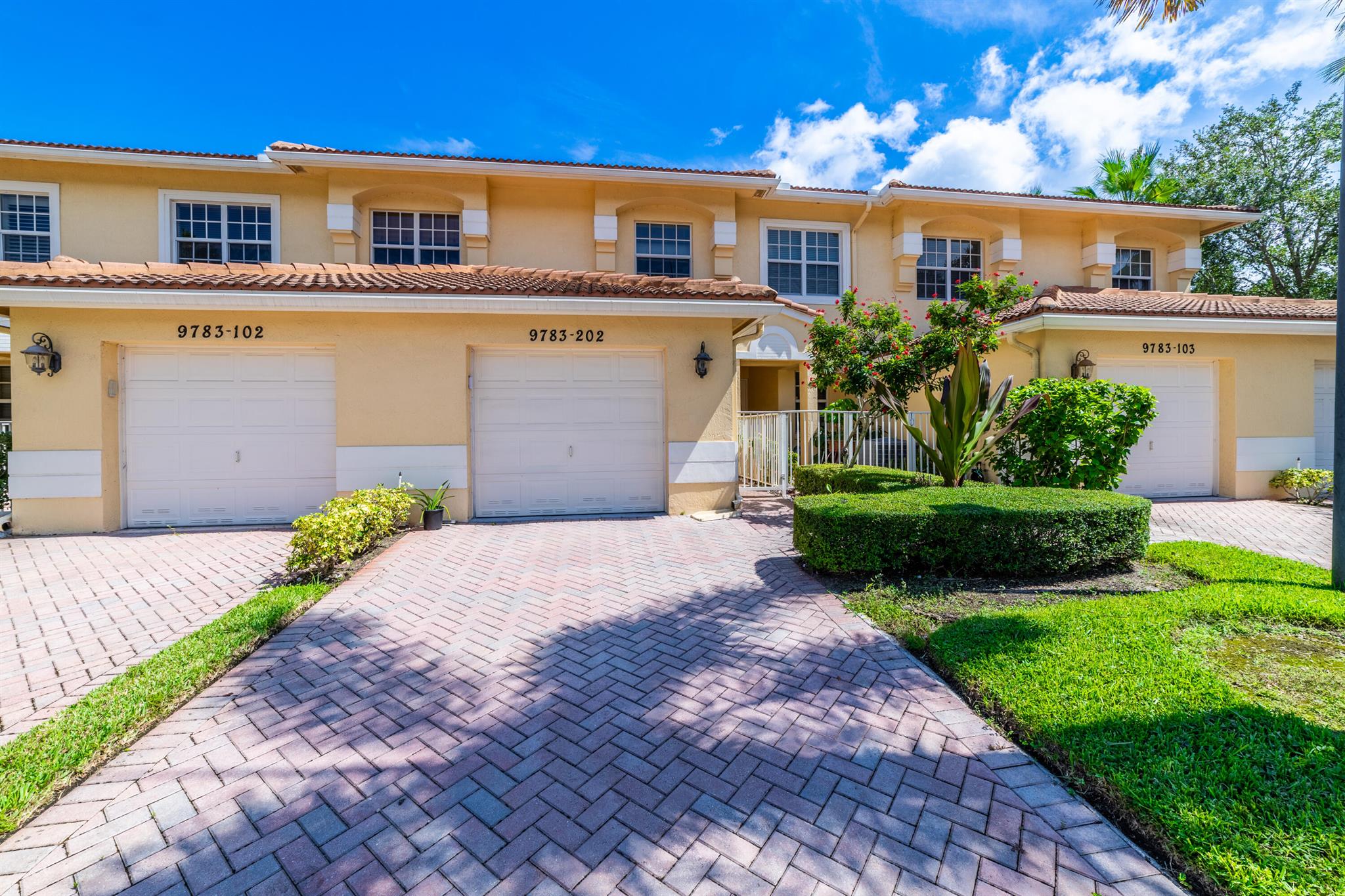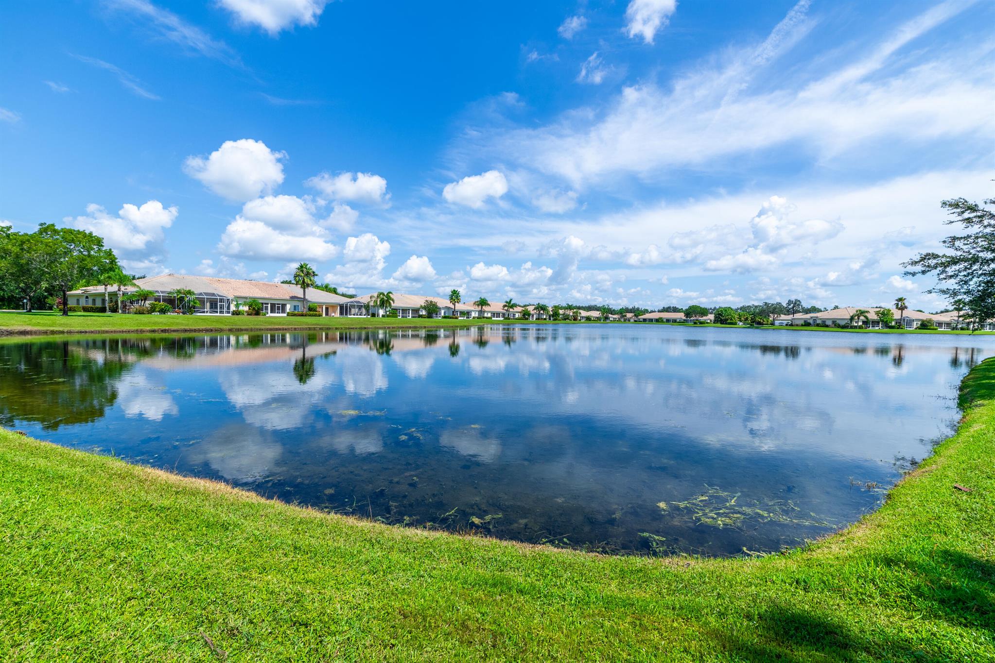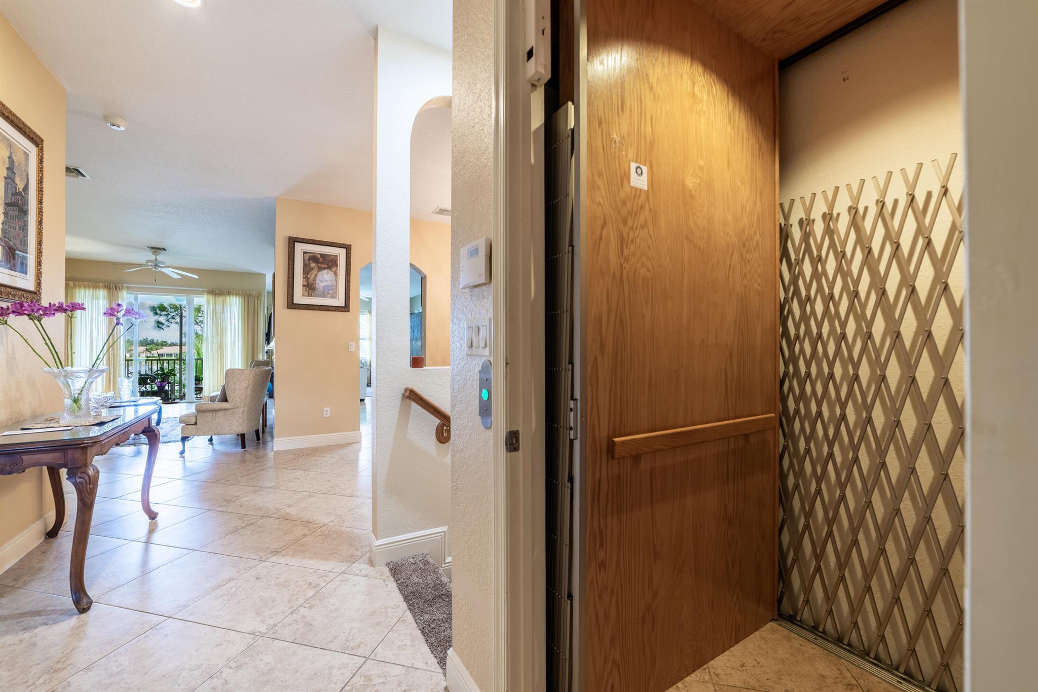 Rarely available 2nd floor coach home with a gorgeous lake view. These homes come with a private elevator! Features include 3 large bedrooms, all with walk in closets, 2 bathrooms, granite counter tops in kitchen and primary bedroom, newer stainless steel appliances, large laundry room with lots of storage, formal dining and formal living room. The best part about this home is the ease of living it affords owners. Everything is taken care of on the outside. Lawn, roof, exterior paint, Insurance (the savings on insurance), water, premium cable with HBO, SHO, etc. Home alarm, home phone and a nice sense of security. Amenities include pickleball, Bocce, tennis, gym, cards, billiards, ballroom with live entertainment, bingo and so much more. The pool area is like being at a resort!