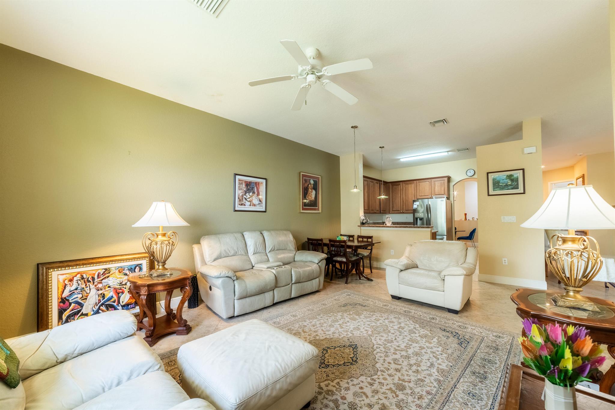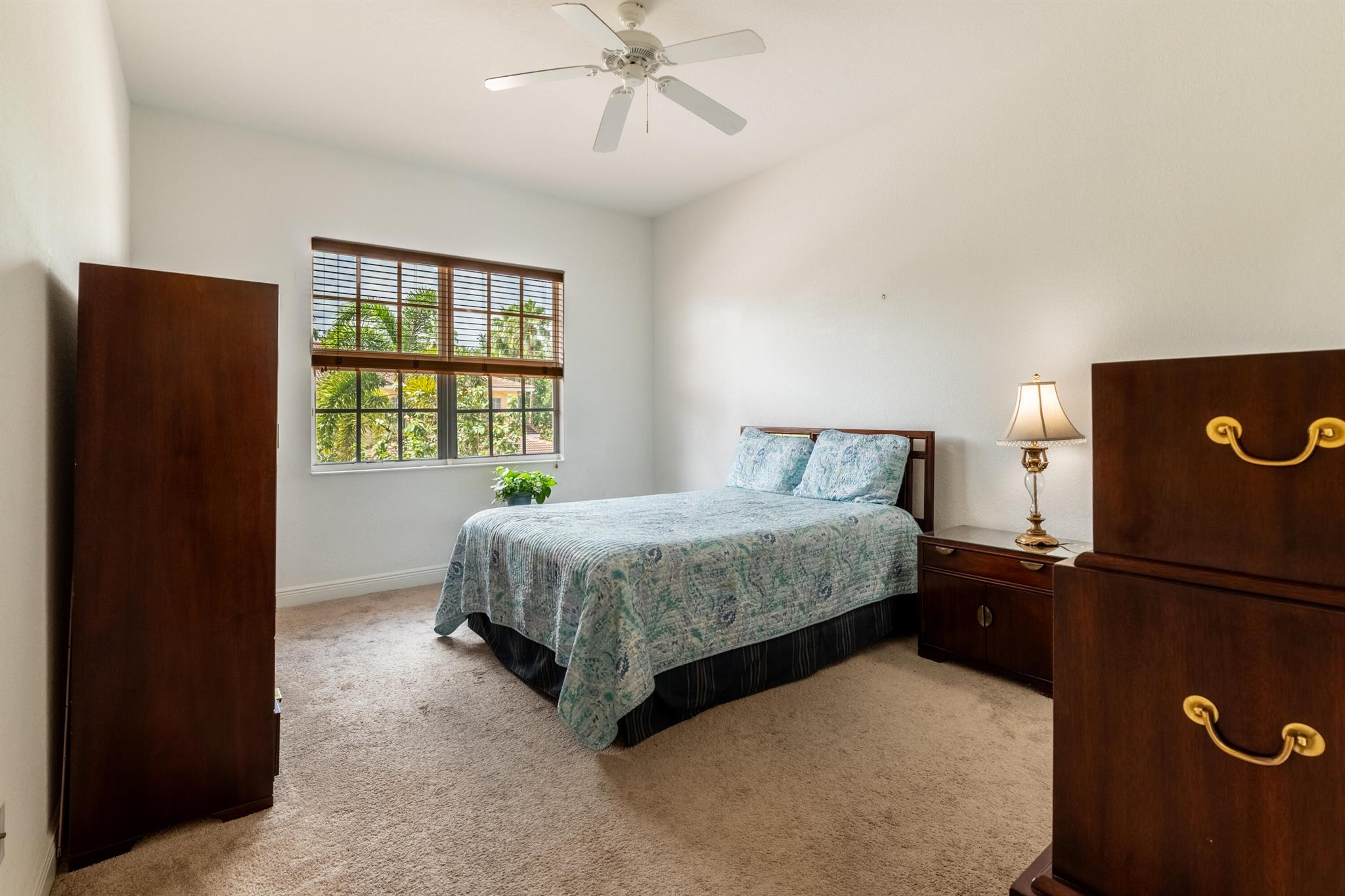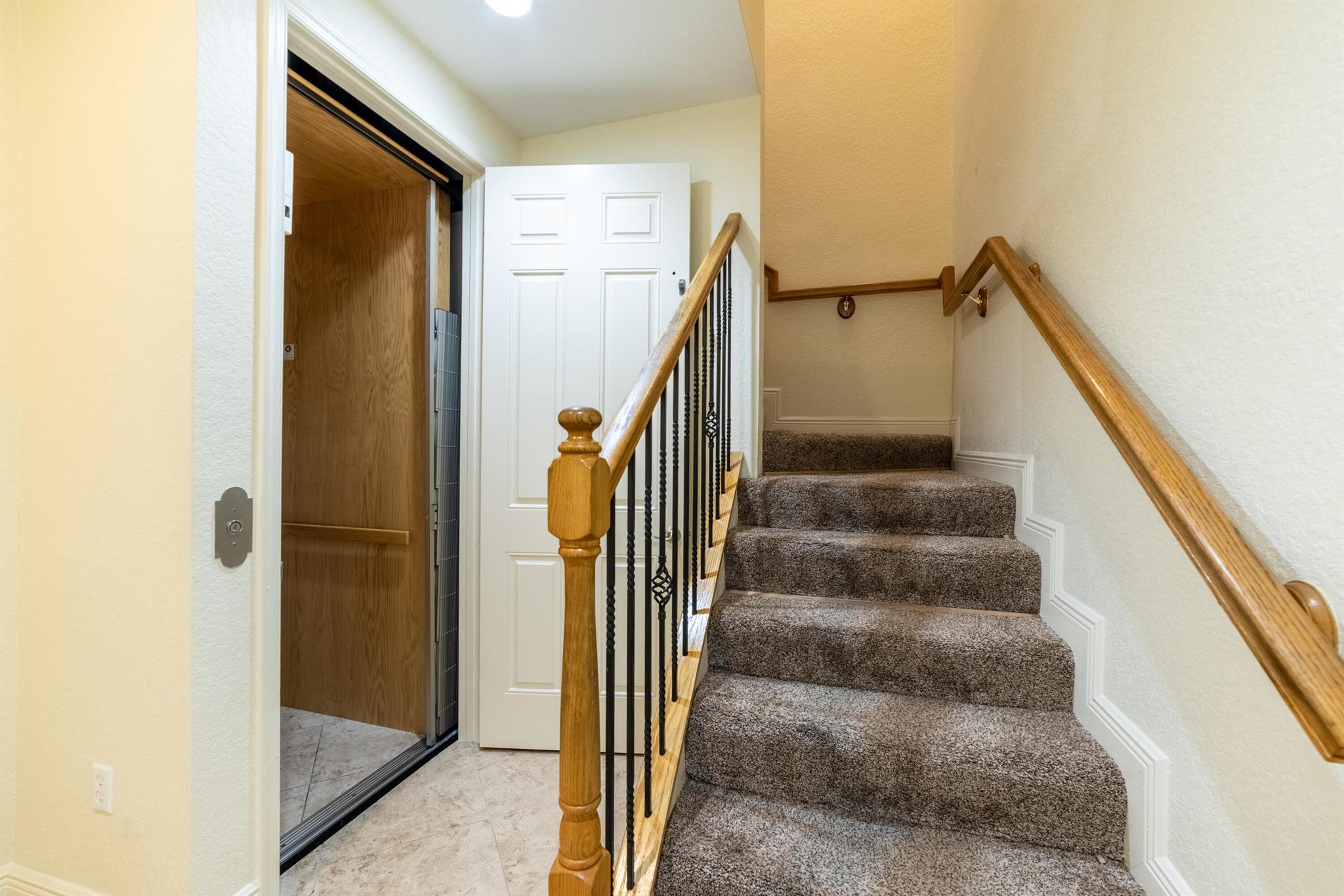Rarely available 2nd floor coach home with a gorgeous lake view. These homes come with a private elevator! Features include 3 large bedrooms, all with walk in closets, 2 bathrooms, granite counter tops in kitchen and primary bedroom, newer stainless steel appliances, large laundry room with lots of storage, formal dining and formal living room. The best part about this home is the ease of living it affords owners. Everything is taken care of on the outside. Lawn, roof, exterior paint, Insurance (the savings on insurance), water, premium cable with HBO, SHO, etc. Home alarm, home phone and a nice sense of security. Amenities include pickleball, Bocce, tennis, gym, cards, billiards, ballroom with live entertainment, bingo and so much more. The pool area is like being at a resort!