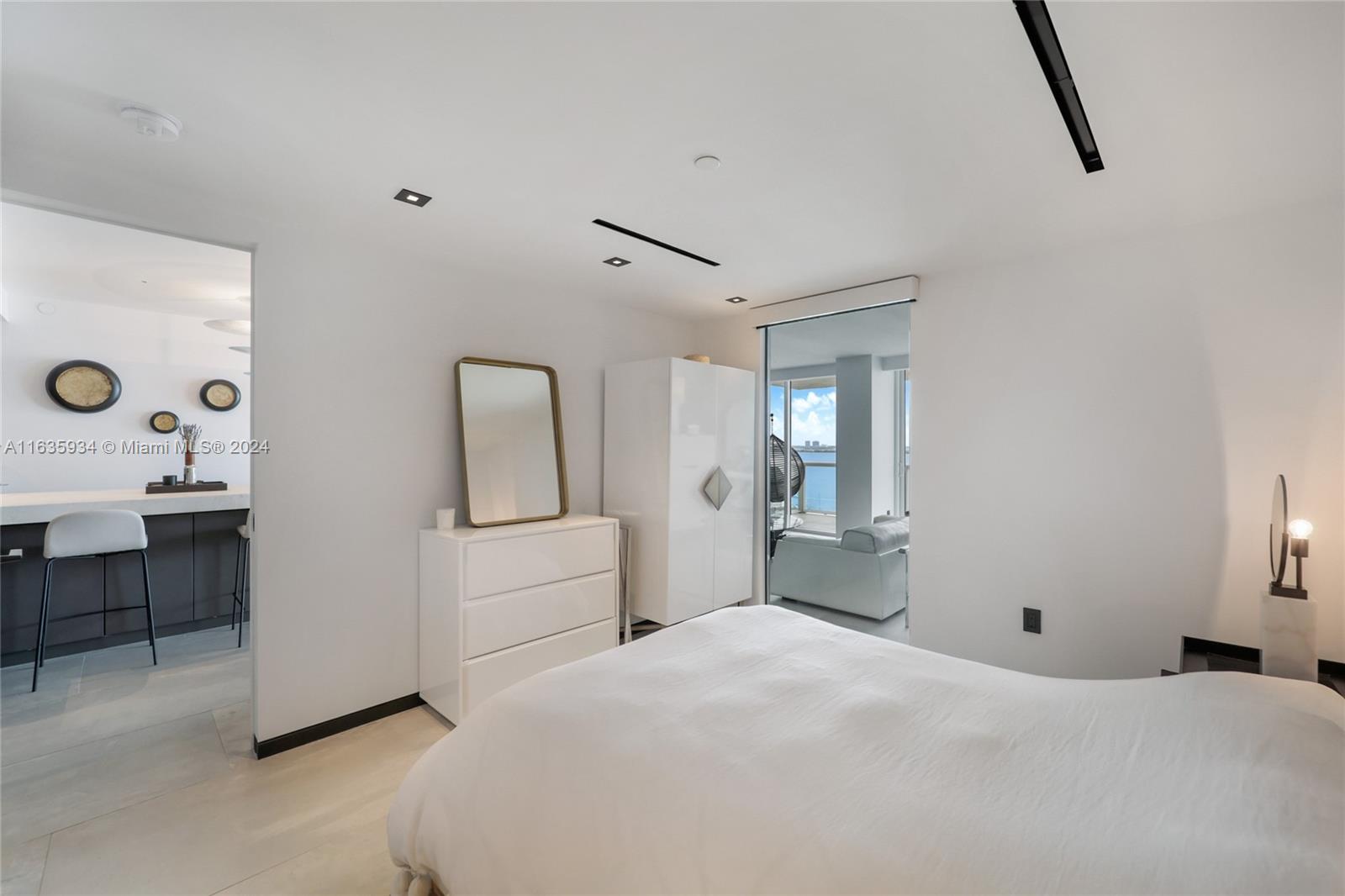 Exquisite designer-furnished Belle Isle residence with stunning views of the bay. Designer finishes featuring Poggenpohl kitchen with Gaggenau appliances. Frameless Italian doors throughout, Refin ceramic floors, and custom Italian suede closets in the primary bedroom. Keuco vanities and Rubinet fixtures elevate the bathrooms. New impact windows and AC enhance comfort. Smart home integration controls audio, video, lighting, and window treatments via an app. GV offers valet, concierge, tennis courts, fitness center, pool, and tennis courts. All within walking distance to The Standard, Sunset Harbour shops and restaurants, and a beautiful park.
