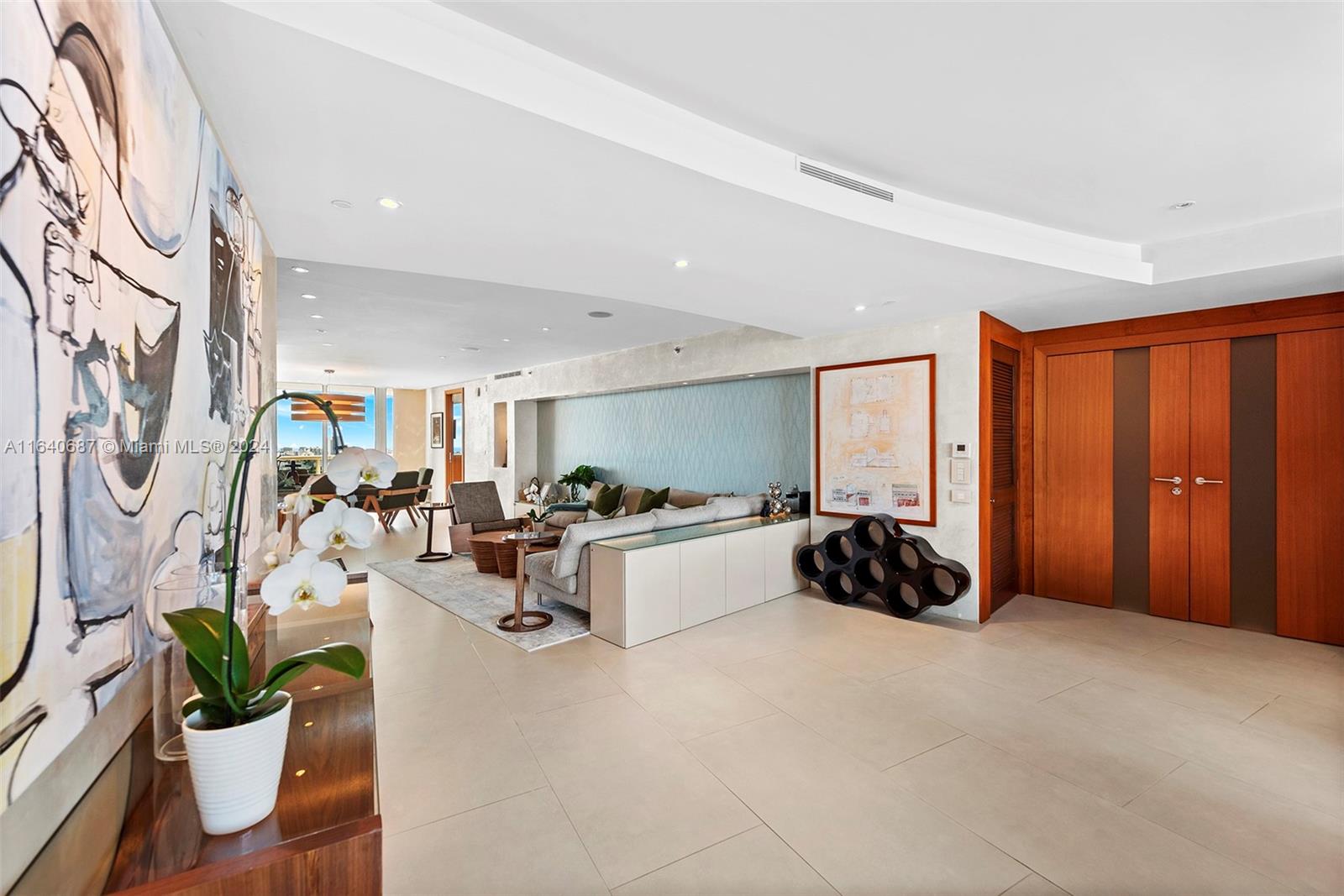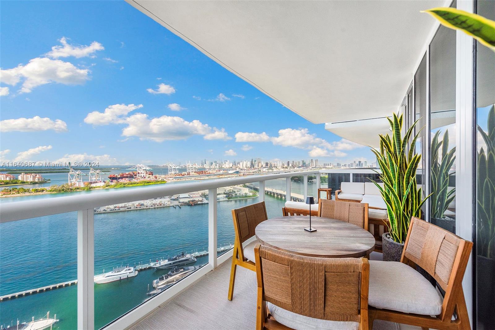 This rarely available 04-line flow-through residence offers stunning sunrise and sunset views, an open floor plan, and in-wall speakers in every room. The living area features intricate millwork and two elegant sitting areas, perfect for entertaining. The master suite includes a rain shower with jets and an in-wall mirror TV in the bathroom. Located in the sought-after South of Fifth neighborhood, this 3,000 sq. ft. home showcases floor-to-ceiling glass windows, Sub-Zero and Miele appliances, and breathtaking views of the ocean, bay, and city. Murano Grande offers luxury amenities, including a full-service pool, lighted tennis court, 24-hour valet, and concierge services, all within walking distance to South Pointe Park and top restaurants.
