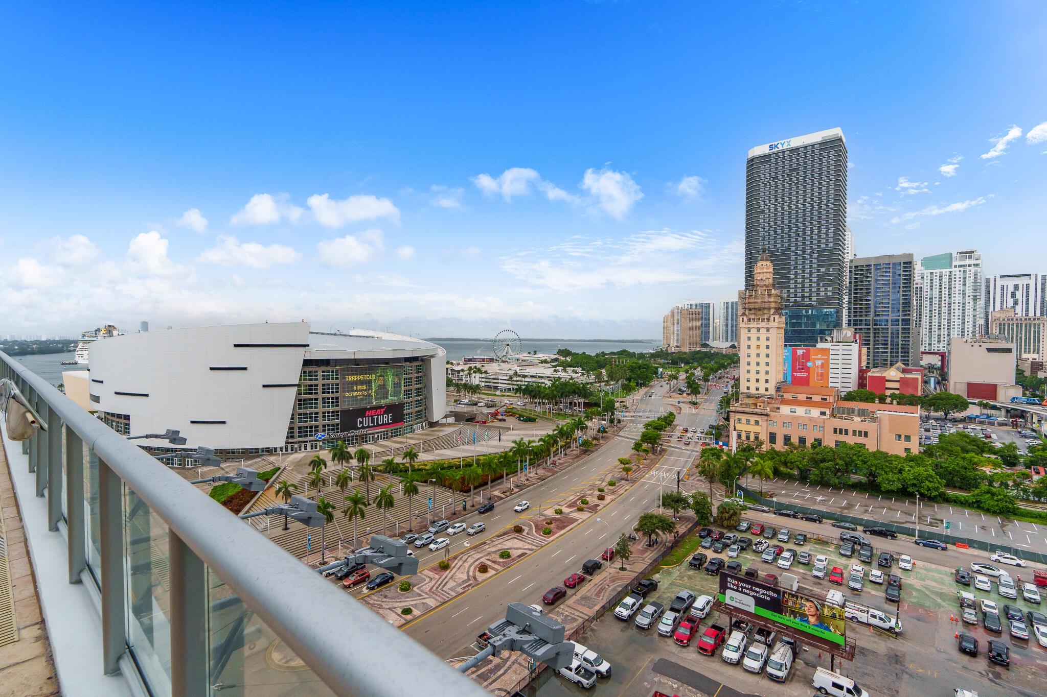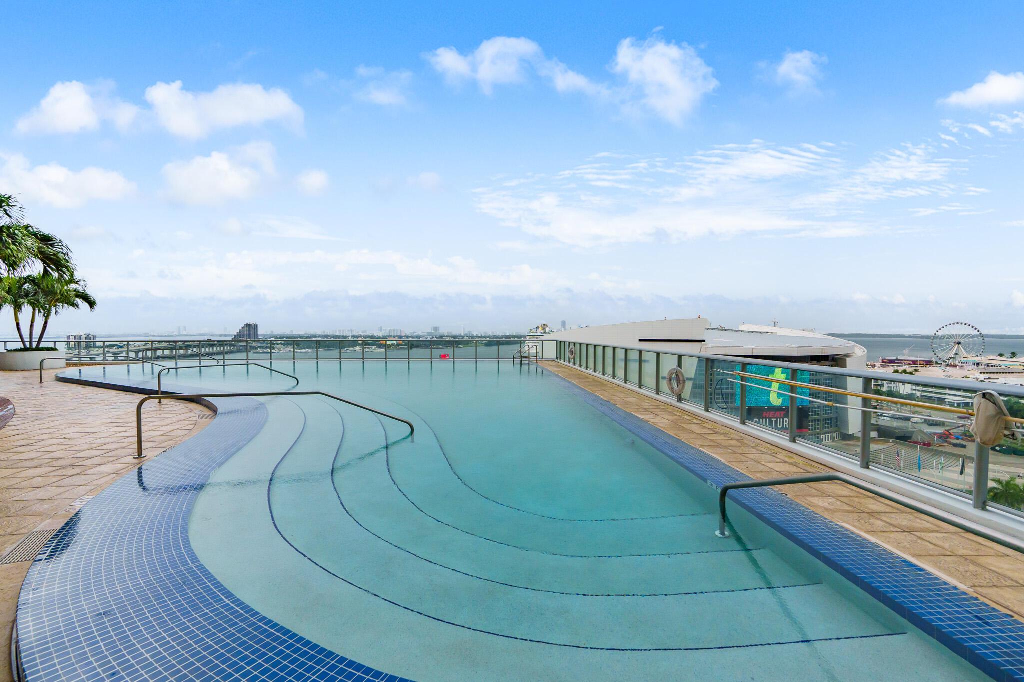 Experience breathtaking views of Biscayne Bay and the Downtown skyline from the 44th floor of MarinaBlue. This stylish unit features one bedroom, one and a half bathrooms, plus a den for added versatility and comfort. Slate tile flooring, stainless steel appliances, and a master bathroom with dual sinks, shower, and tub. This unit includes an assigned parking space and storage area, and has been freshly painted for a move-in ready experience. Residents can enjoy a range of amenities such as a fitness center, beach volleyball court, BBQ areas, two pools, clubroom, and more. Located within walking distance of Miami's finest dining, shopping, and entertainment options, including the Frost Science, Miami Heat Arena and more.