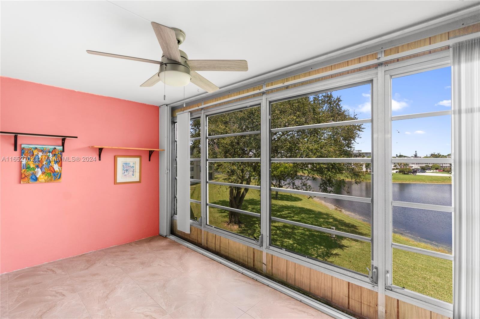 EVER DREAMT OF ENJOYING EVERY DAY WITH A GORGEOUS WATER VIEW AT EYE LEVEL FROM YOUR BACK PORCH WITH A BREATHTAKING FOUNTAIN? LOOK NO FURTHER: THIRD FLOOR, WATER VIEW, TWO BEDROOMS WITH TWO FULL BATHS. CERAMIC TILES IN LIVING ROOM, UPGRADED KITCHEN WITH NEW CABINETS AND COUNTER TOP. LAMINATE FLOORING IN THE BEDROOMS. BRAND NEW UP TO CODE ELECTRICAL PANEL. ALL ASSESSMENTS ARE PAID. COME MAKE THIS YOUR NEXT NEW HOME. LAUNDRY ON EACH FLOOR. ASSOCIATION CLAIMS 55+ COMMUNITY. CENTURY VILLAGE HAS ALL THE AMENITIES ONE COULD HOPE FOR: STATE OF THE ART THEATER WITH 1700 SEATS, FITNESS CENTER, BREAKFAST & LUNCH CAFE, INDOOR & OUTDOOR POOLS, TENNIS COURTS, GAMES AND CARD ROOMS, PICKLE BALL, COURTESY SHUTTLE BUS TO AND FROM SUPERMARKETS, MALL AND THE BEACH AND SO MUCH MORE.