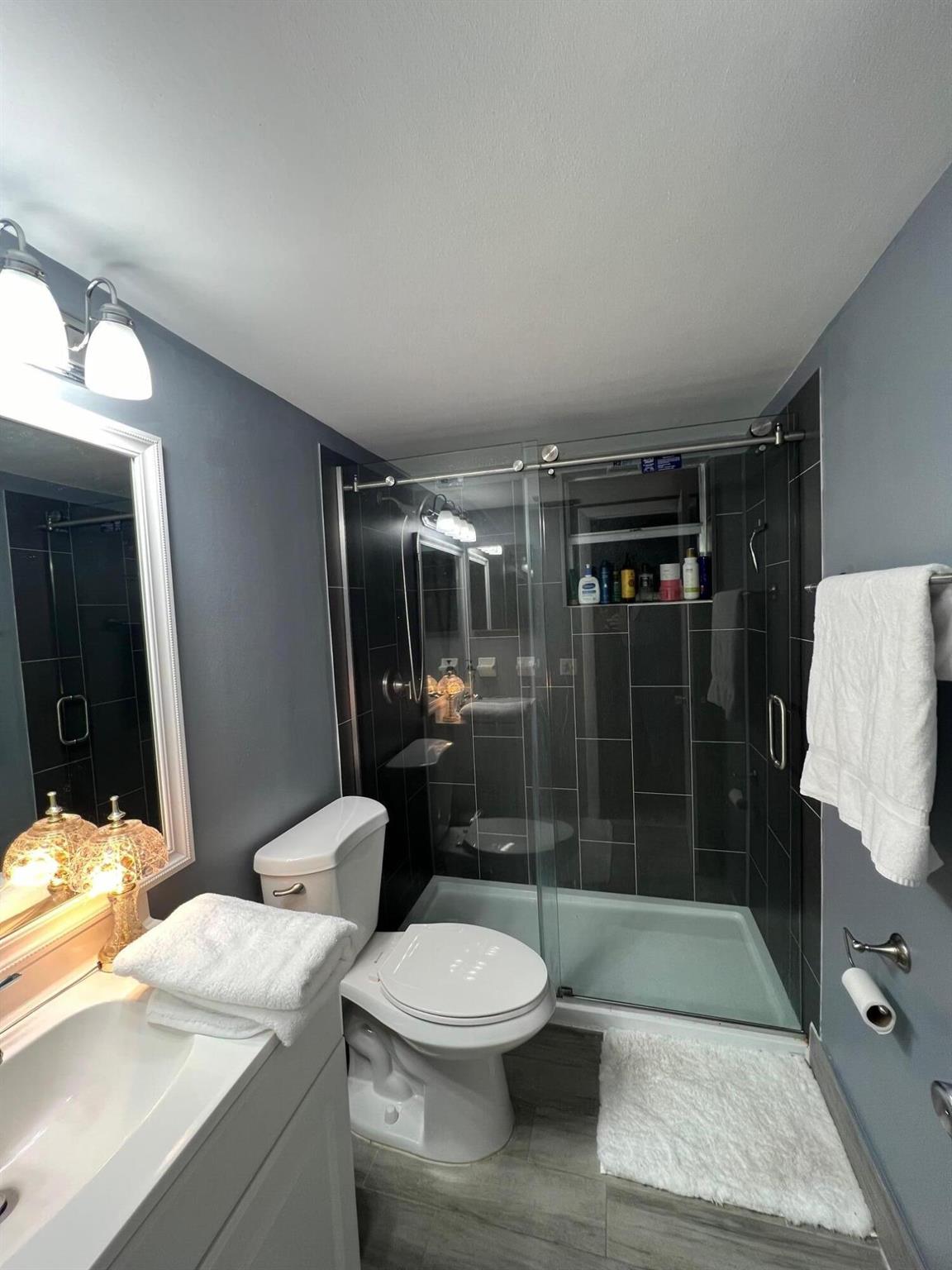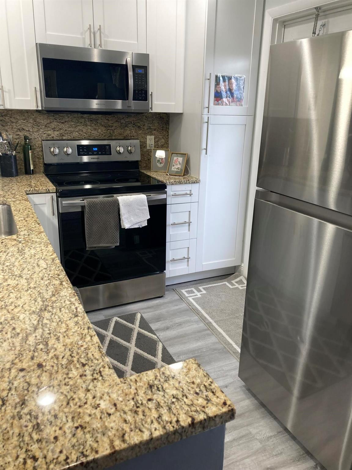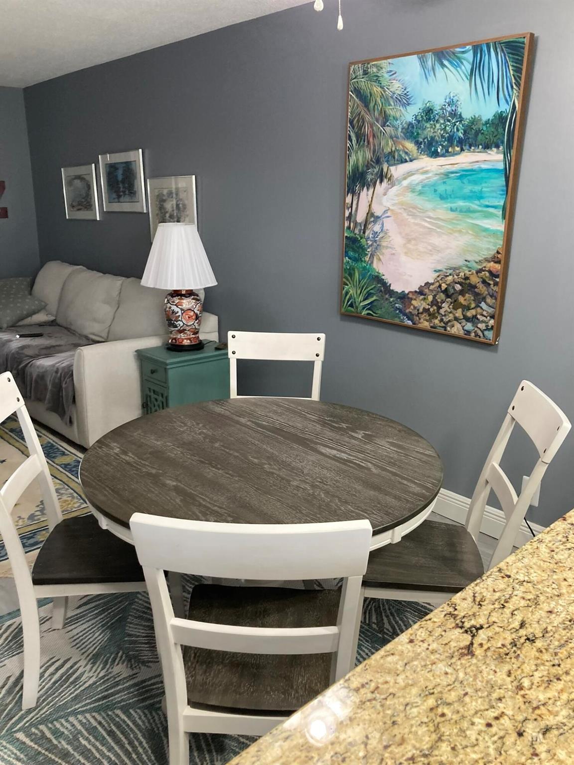 MOTIVATED SELLER! Welcome to this hidden gem at Village Royale! This vibrant 55+ community exudes old Florida charm and offers a variety of amenities for an active lifestyle, including a beautiful outdoor pool, a clubhouse, billiards, library, shuffleboard courts, and a BBQ/picnic area - and it's close to the beach! Once inside, you'll appreciate the modern and updated kitchen with white shaker cabinetry, granite counters and backsplash, stainless appliances and counter-height seating overlooking the living & dining areas. Other features include NEW hurricane impact windows in both bedrooms and kitchen, new flooring throughout, a contemporary color palette, sliding glass doors to the enclosed balcony with storage and full-size washer/dryer. This home is being sold fully furnished/turnkey