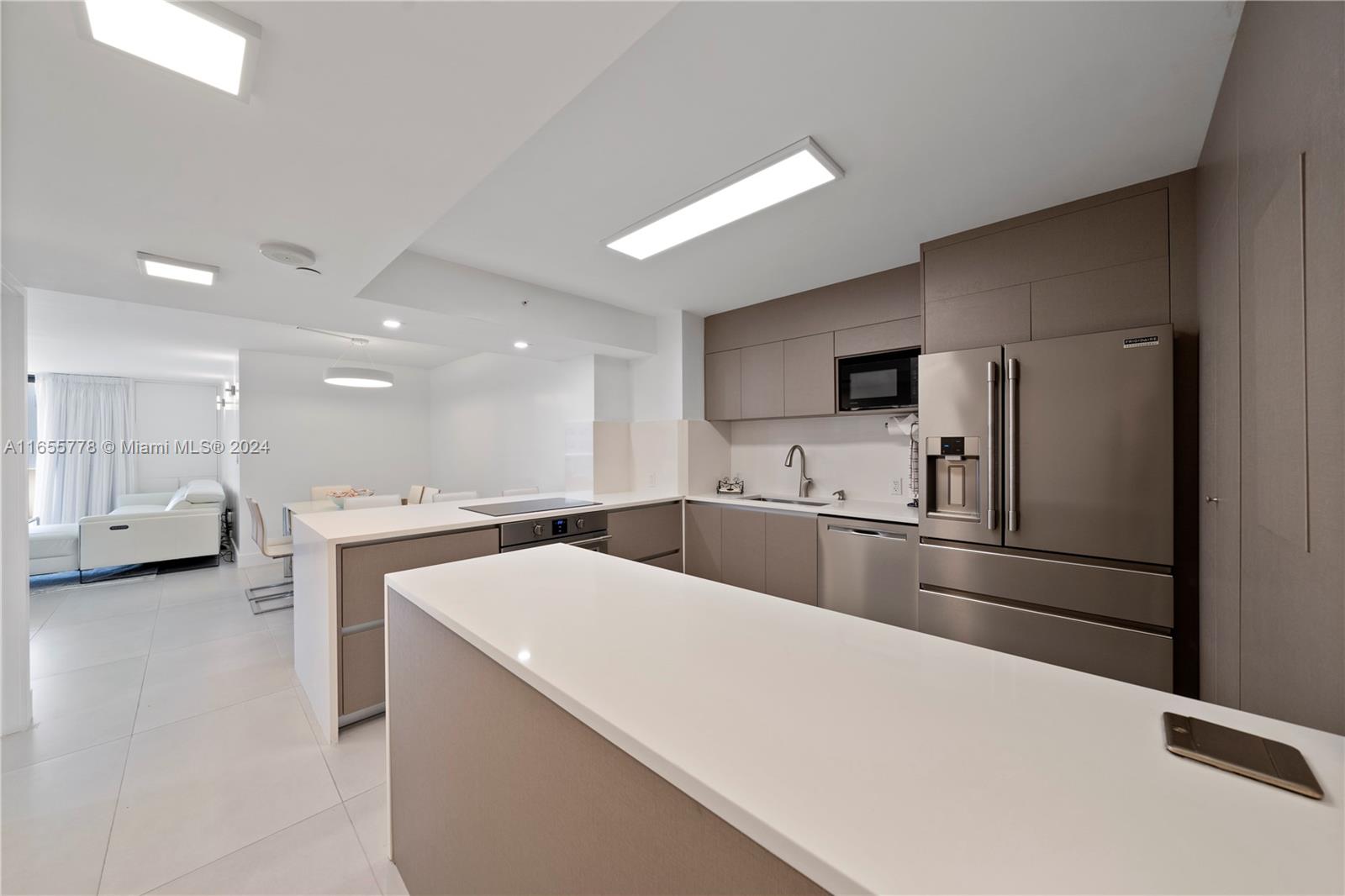 Totally remodeled unit with 2 bedrooms, 2 bathrooms + Den that can be used as a bedroom. New kitchen with a open concept design, high-end appliances, wine cooler, new bathrooms, new porcelain floors. New hurricane proof sliding doors and windows installed.