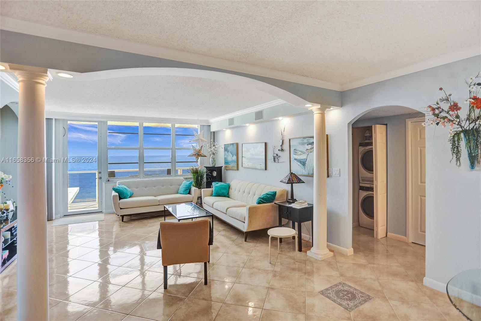 Welcome to a breathtaking corner unit with direct oceanfront views in the heart of Hollywood, Florida. This 2-bed, 2-bath condo boasts a southern-facing orientation, filling the home with abundant natural sunlight throughout the day. Beautiful tile floors that flow seamlessly throughout the home. Ample closet space ensures that storage is never an issue. The master features a luxurious en-suite bathroom with a jacuzzi tub and a separate walk-in shower. Step outside onto the wrap-around balcony to enjoy your morning coffee. The modern kitchen is a chef’s delight, fully updated with stainless steel appliances, generous cabinet space, and plenty of lighting for an airy, open feel. A convenient in-unit washer and dryer adds to the ease of living in this meticulously maintained home.