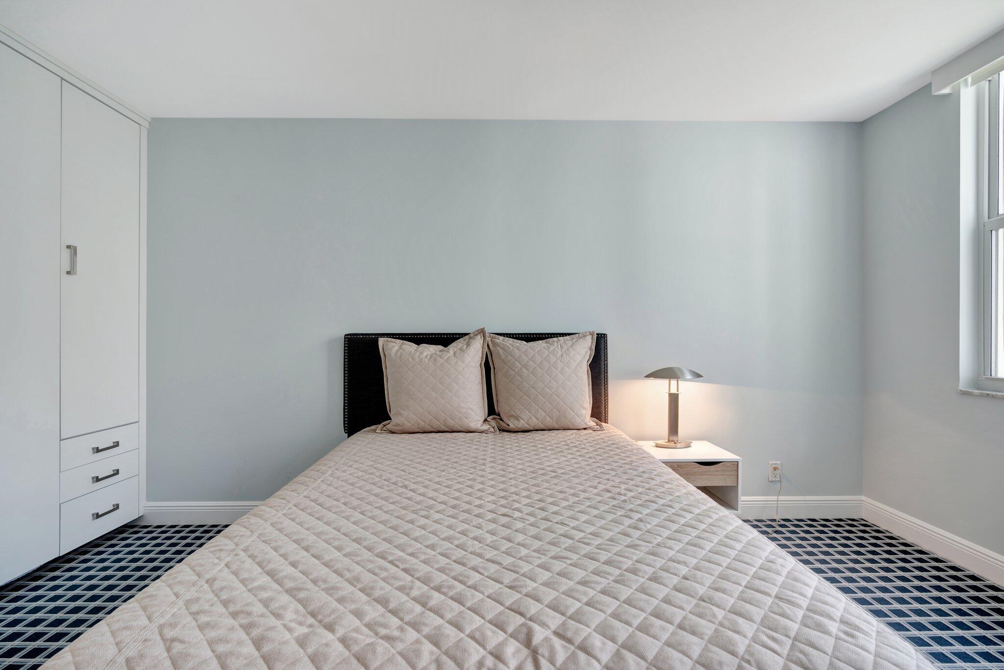 Rapallo residence 503 is a studs-down renovation for the discerning buyer--a completely remodeled turnkey condominium for easy waterfront living. Everything is included in this striking oversized two-bedroom, two-bathroom condominium with intracoastal views. This designer residence has an exquisite kitchen with white oak cabinets, Bosch appliances, quartz countertops with marble backsplash, and a breakfast nook. The attention to detail is superb, from the marble in the bathrooms to the porcelain flooring throughout the living space, the eye-catching wallpaper, dramatic mosaic tile work, brass and gold accent artistry, wool carpeting in the bedrooms, and the three-dimensional tile in the dry bar. This is the one!