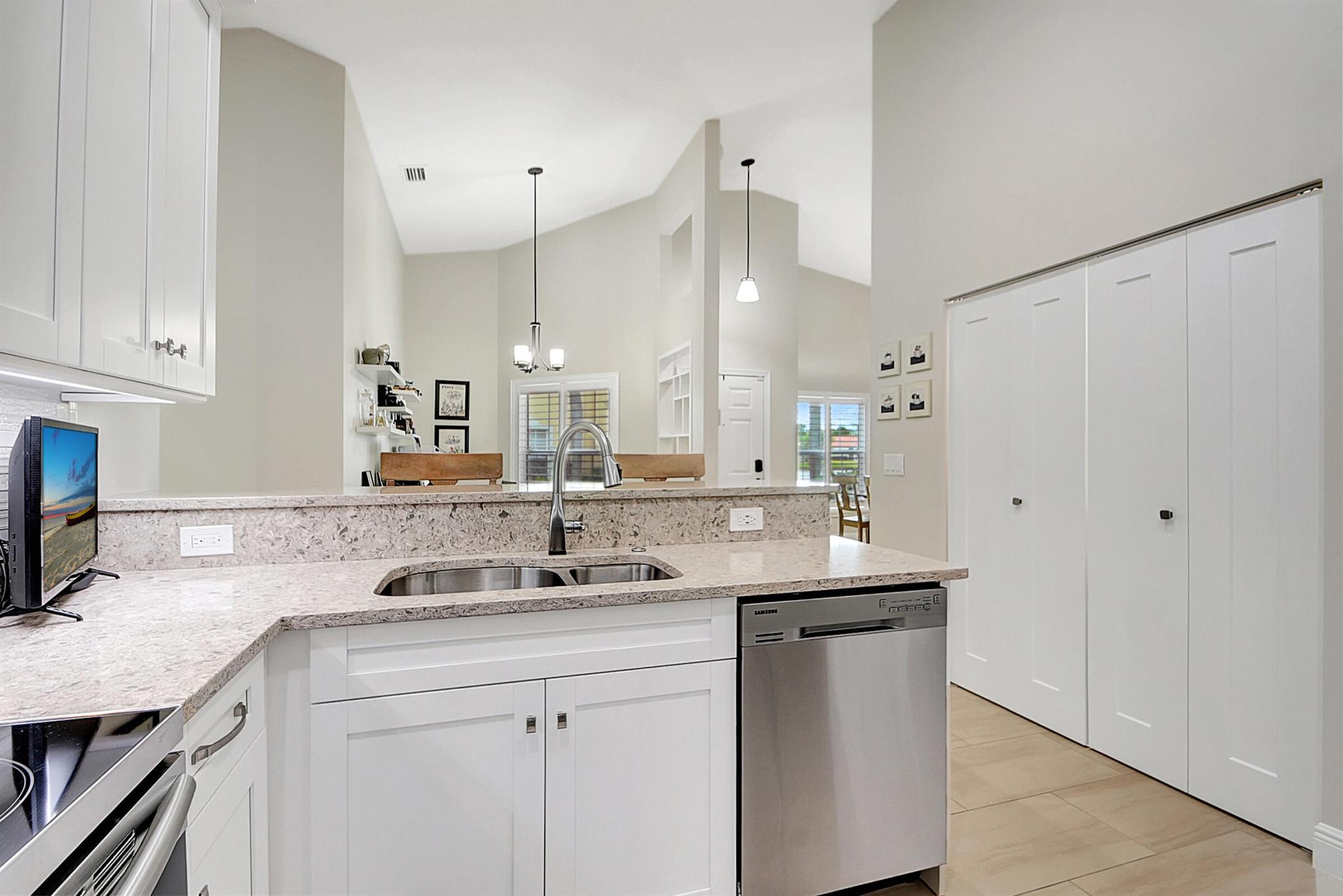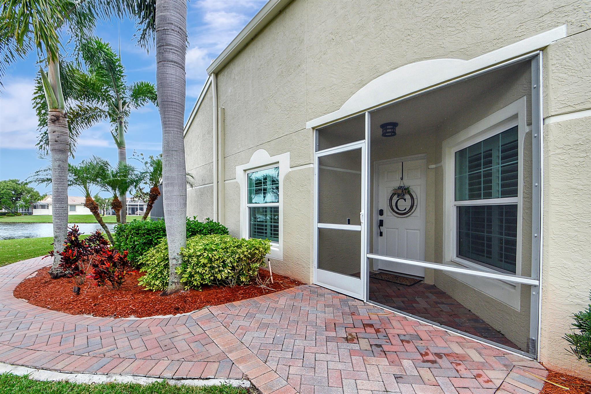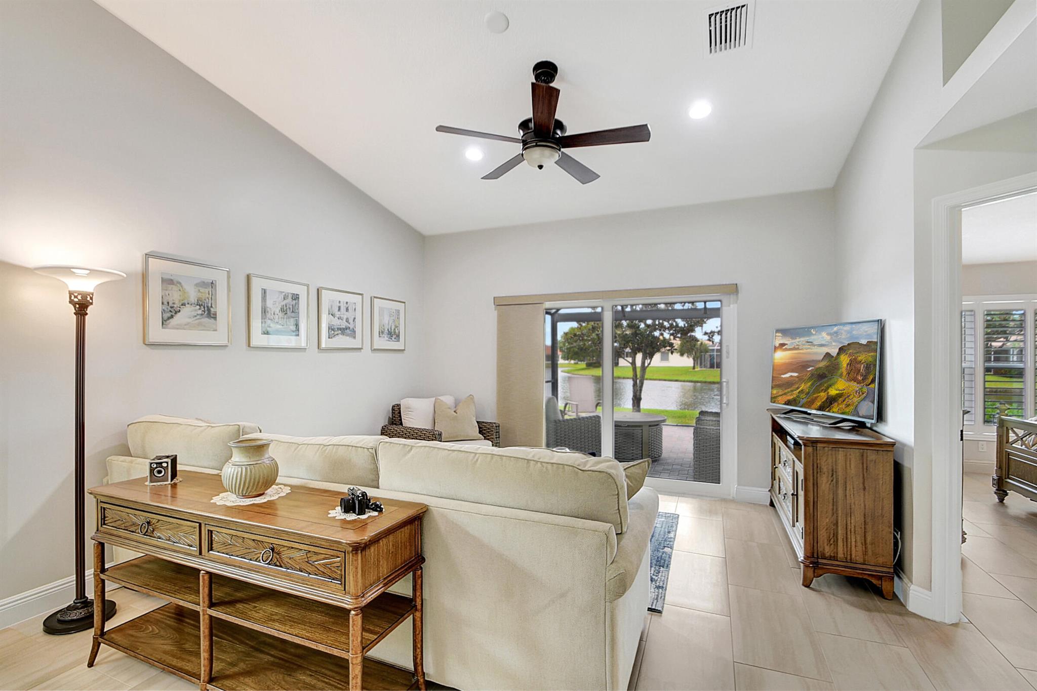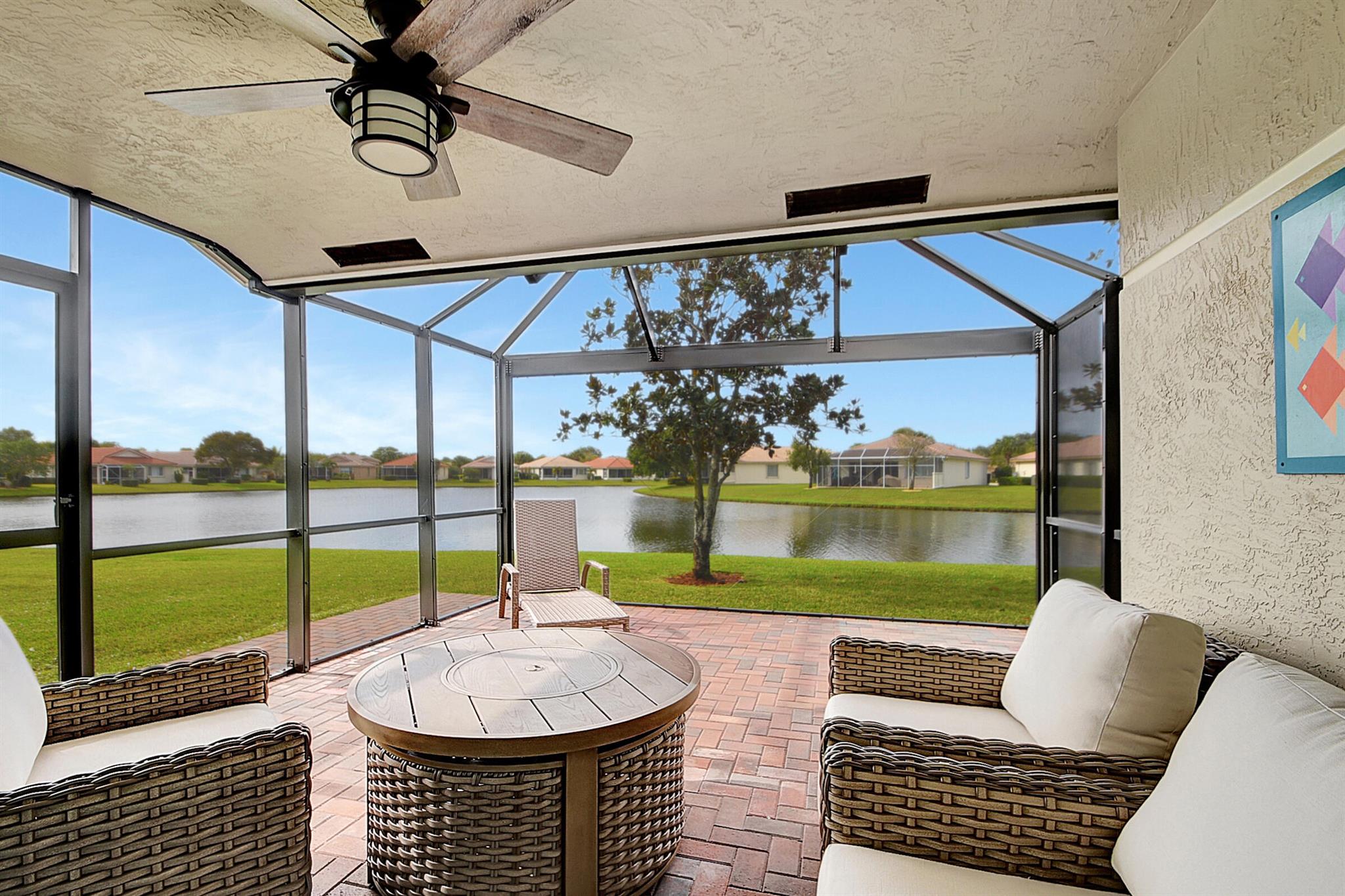 ABSOLUTELY AMAZING CORNER UNIT WITH BEAUTIFUL LAKE VIEWS EVERY INCH OF THIS UNIT HAS BEEN UPDATED INCLUDING A BRAND NEW ROOF, NEW A/C, NEW KITCHEN REMODEL WITH CAMBRIA COUNTERTOPS. BOTH BATHROOMS FULL REMODEL ALSO WITH CAMBRIA COUNTER TOPS. .NEW IMPACT WINDOWS EXTENDED SCREENED IN PATIO COMPLETED LAST YEAR. PLANTATION SHUTTERS RECENTLY INSTALLED. NEW CERAMIC TILE INSTALLED THROUGHOUT THE FULL UNIT. THE SECOND BEDROOM HAS A BRAND NEW MURPHY QUEEN BED HIDDEN BY ROLLING BOOKCASES. CUSTOM OUTDOOR LIGHTING PLUS A SIDE PAVED PATH TO THE BACKYARD FROM FRONT DOOR. ALL CLOSETS HAVE CUSTOM BUILT INS. LAUNDRY IN KITCHEN MAIN ALSO INCLUDES ADT HOME PHONE AND HIGH SPEED INTERNET PROGRAMABLE TEMP CONTROL.