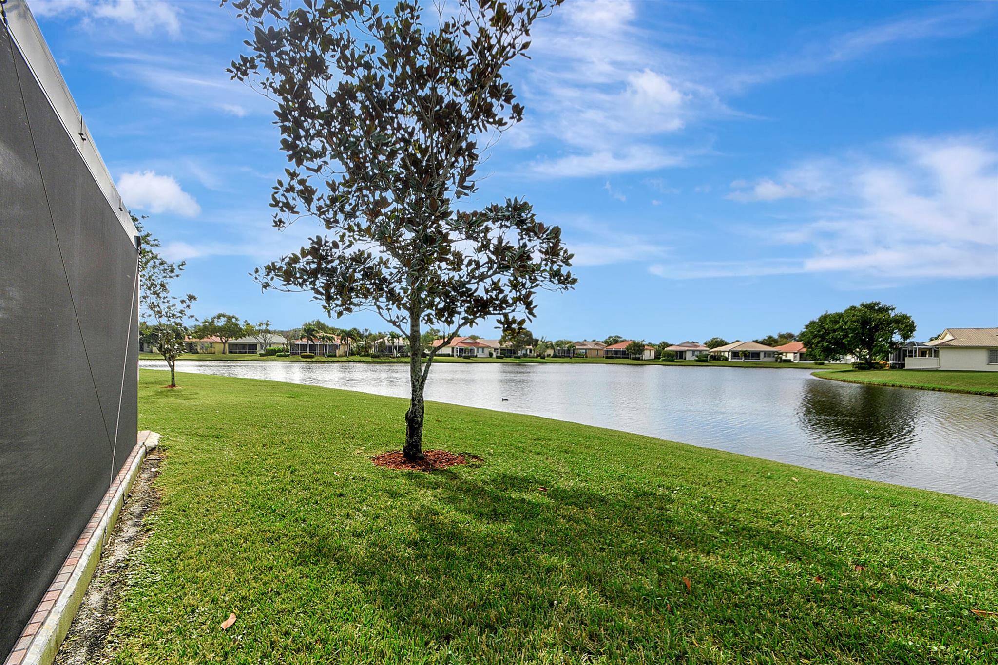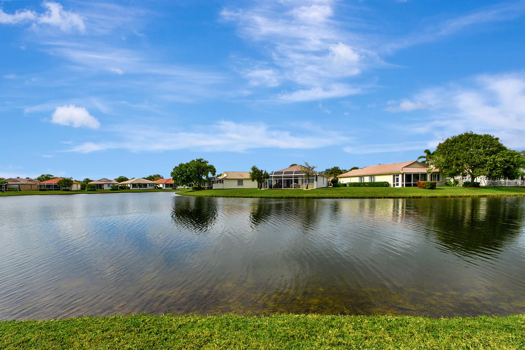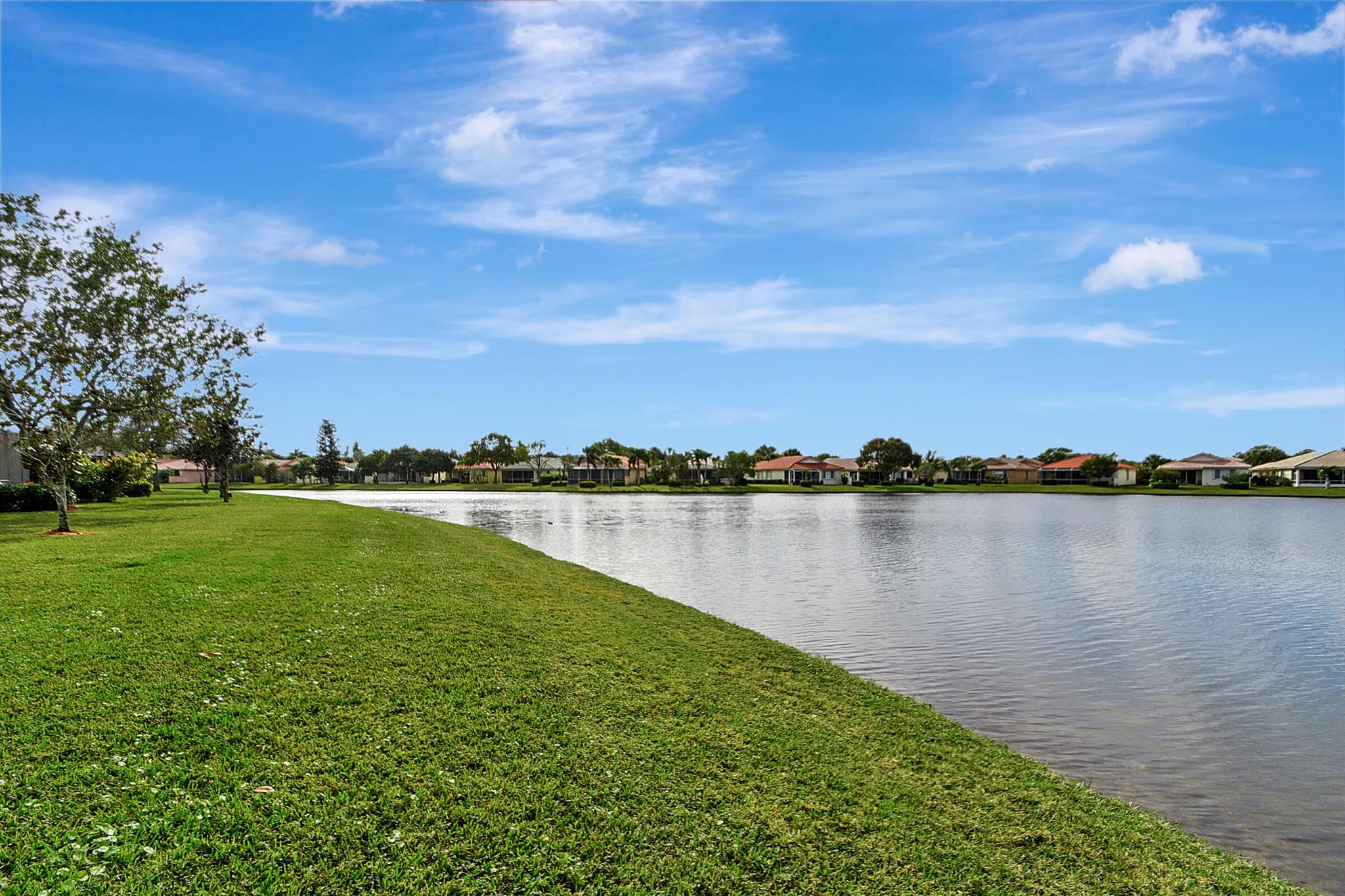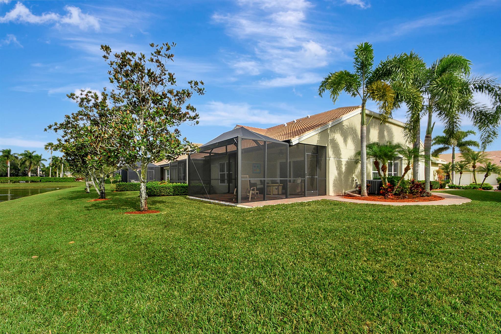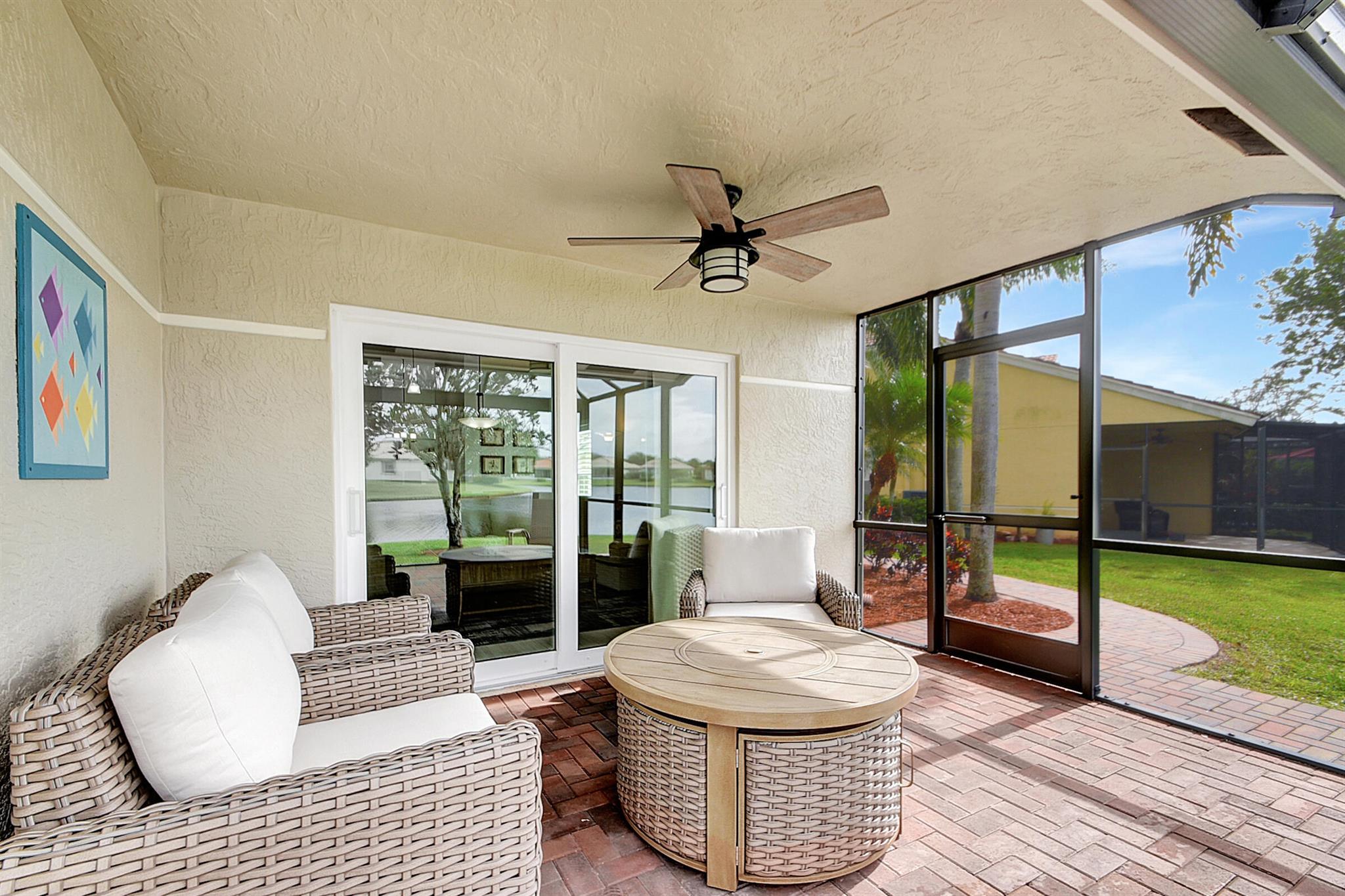 ABSOLUTELY AMAZING CORNER UNIT WITH BEAUTIFUL LAKE VIEWS EVERY INCH OF THIS UNIT HAS BEEN UPDATED INCLUDING A BRAND NEW ROOF, NEW A/C, NEW KITCHEN REMODEL WITH CAMBRIA COUNTERTOPS. BOTH BATHROOMS FULL REMODEL ALSO WITH CAMBRIA COUNTER TOPS. .NEW IMPACT WINDOWS EXTENDED SCREENED IN PATIO COMPLETED LAST YEAR. PLANTATION SHUTTERS RECENTLY INSTALLED. NEW CERAMIC TILE INSTALLED THROUGHOUT THE FULL UNIT. THE SECOND BEDROOM HAS A BRAND NEW MURPHY QUEEN BED HIDDEN BY ROLLING BOOKCASES. CUSTOM OUTDOOR LIGHTING PLUS A SIDE PAVED PATH TO THE BACKYARD FROM FRONT DOOR. ALL CLOSETS HAVE CUSTOM BUILT INS. LAUNDRY IN KITCHEN MAIN ALSO INCLUDES ADT HOME PHONE AND HIGH SPEED INTERNET PROGRAMABLE TEMP CONTROL.