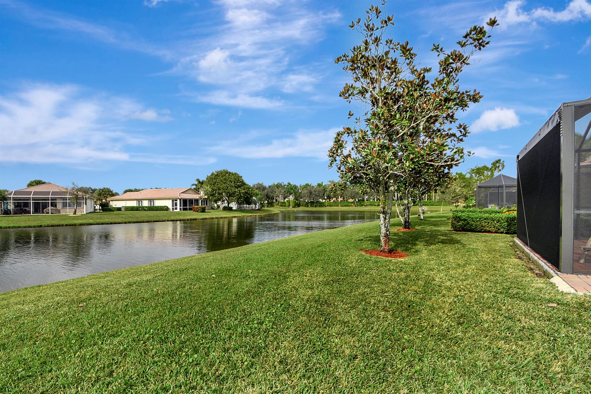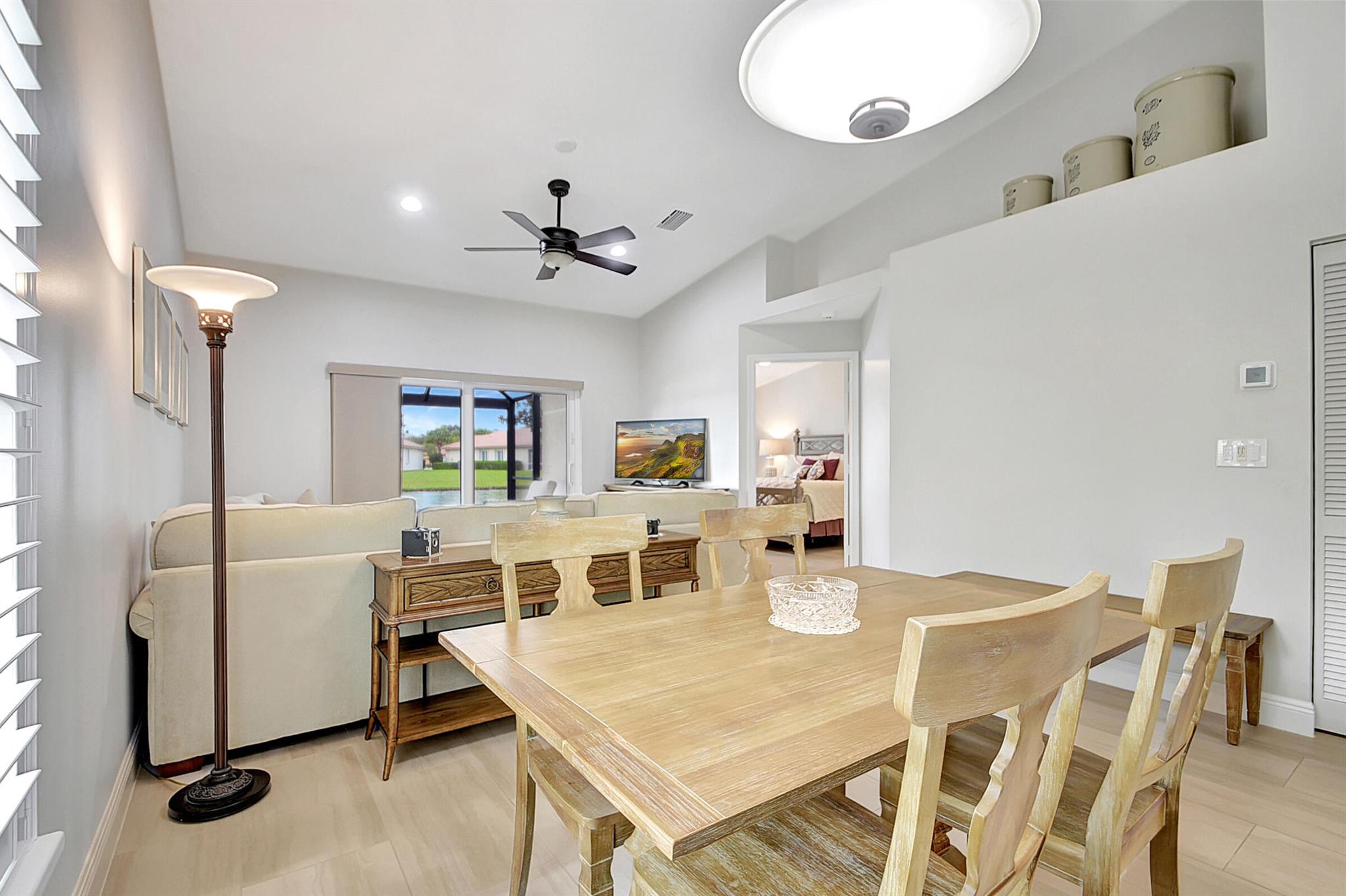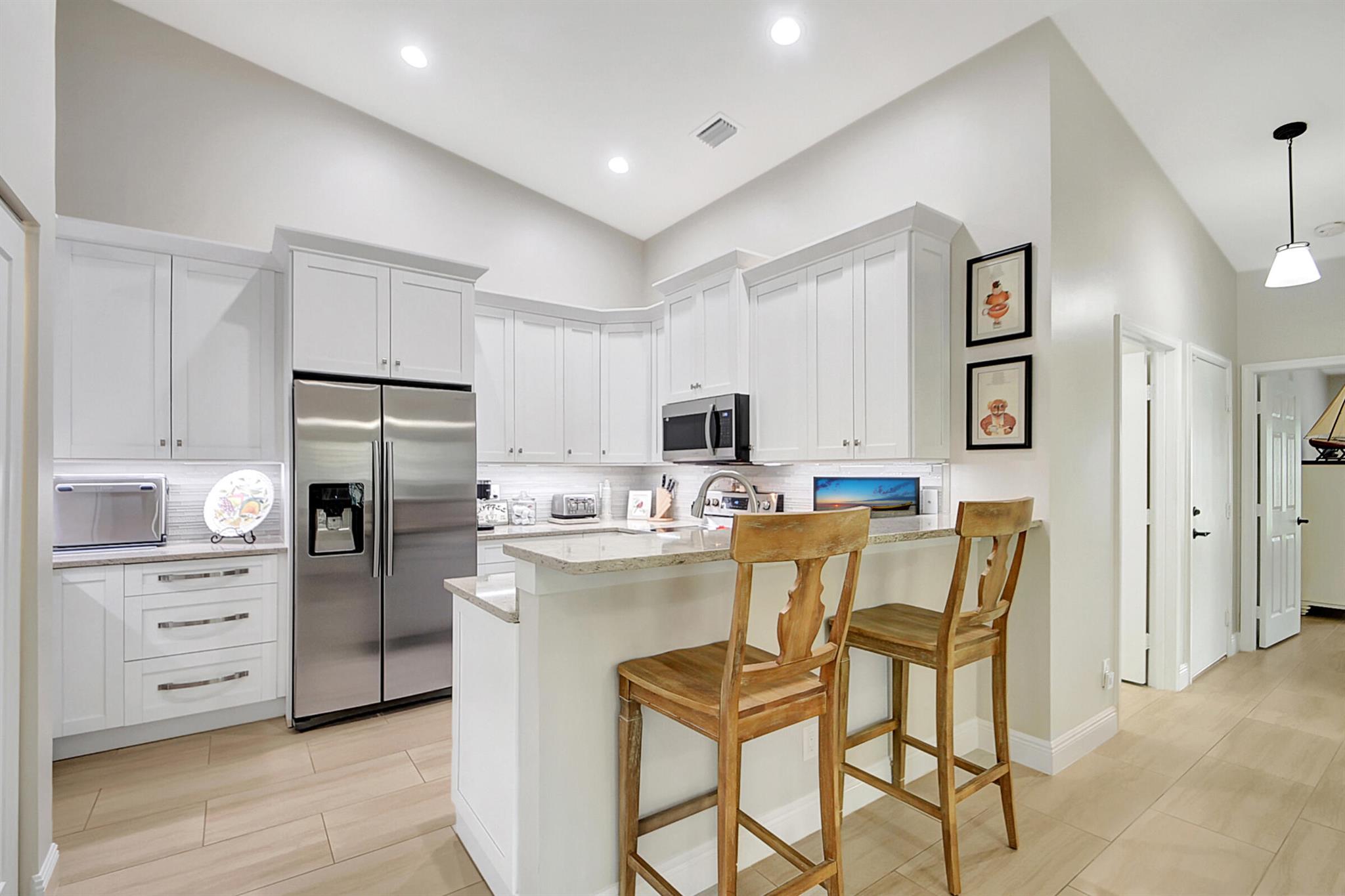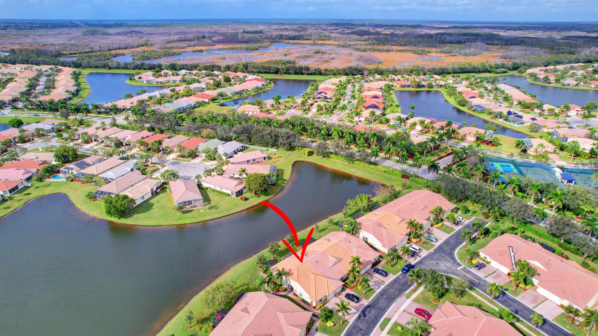 ABSOLUTELY AMAZING CORNER UNIT WITH BEAUTIFUL LAKE VIEWS EVERY INCH OF THIS UNIT HAS BEEN UPDATED INCLUDING A BRAND NEW ROOF, NEW A/C, NEW KITCHEN REMODEL WITH CAMBRIA COUNTERTOPS. BOTH BATHROOMS FULL REMODEL ALSO WITH CAMBRIA COUNTER TOPS. .NEW IMPACT WINDOWS EXTENDED SCREENED IN PATIO COMPLETED LAST YEAR. PLANTATION SHUTTERS RECENTLY INSTALLED. NEW CERAMIC TILE INSTALLED THROUGHOUT THE FULL UNIT. THE SECOND BEDROOM HAS A BRAND NEW MURPHY QUEEN BED HIDDEN BY ROLLING BOOKCASES. CUSTOM OUTDOOR LIGHTING PLUS A SIDE PAVED PATH TO THE BACKYARD FROM FRONT DOOR. ALL CLOSETS HAVE CUSTOM BUILT INS. LAUNDRY IN KITCHEN MAIN ALSO INCLUDES ADT HOME PHONE AND HIGH SPEED INTERNET PROGRAMABLE TEMP CONTROL.