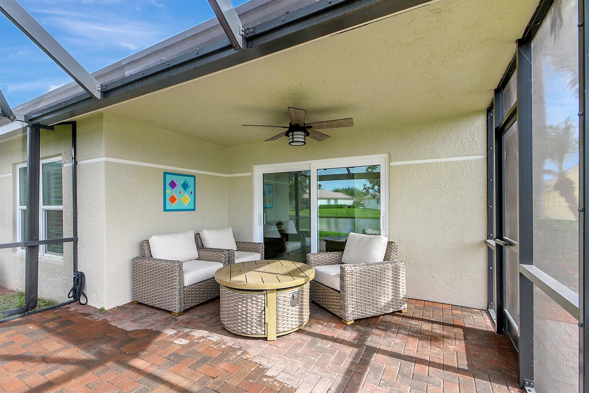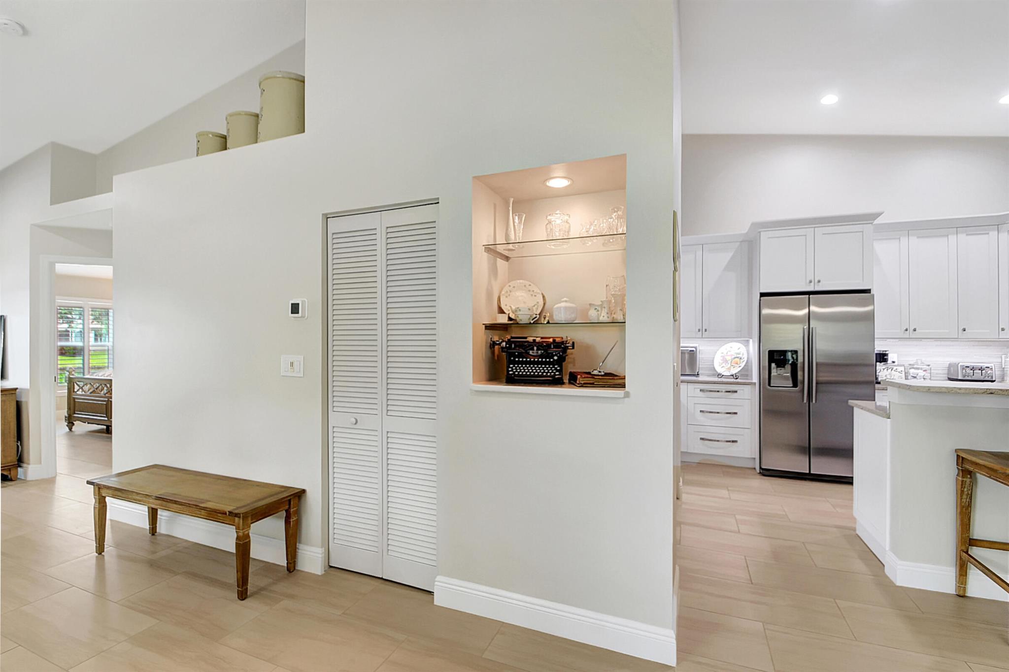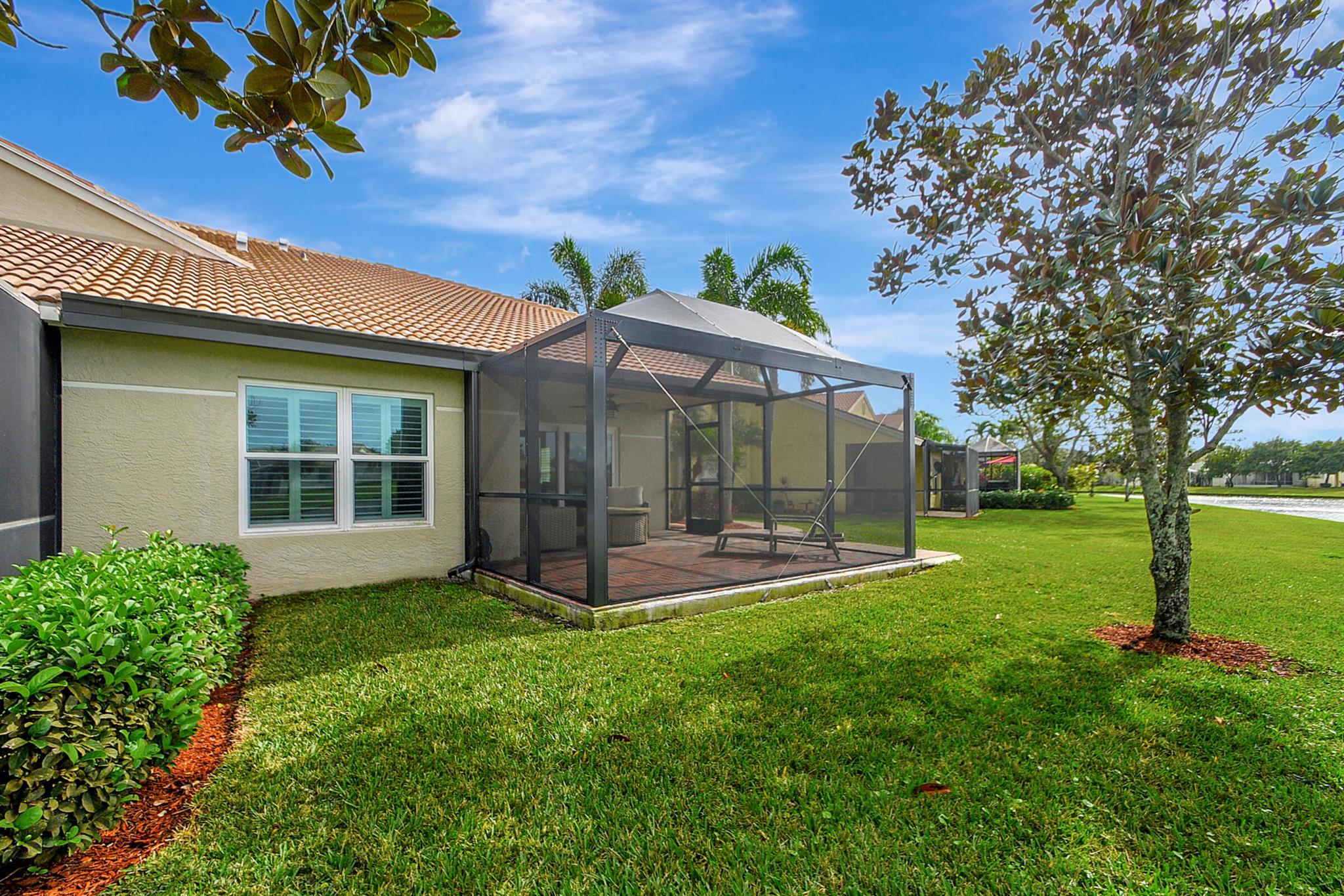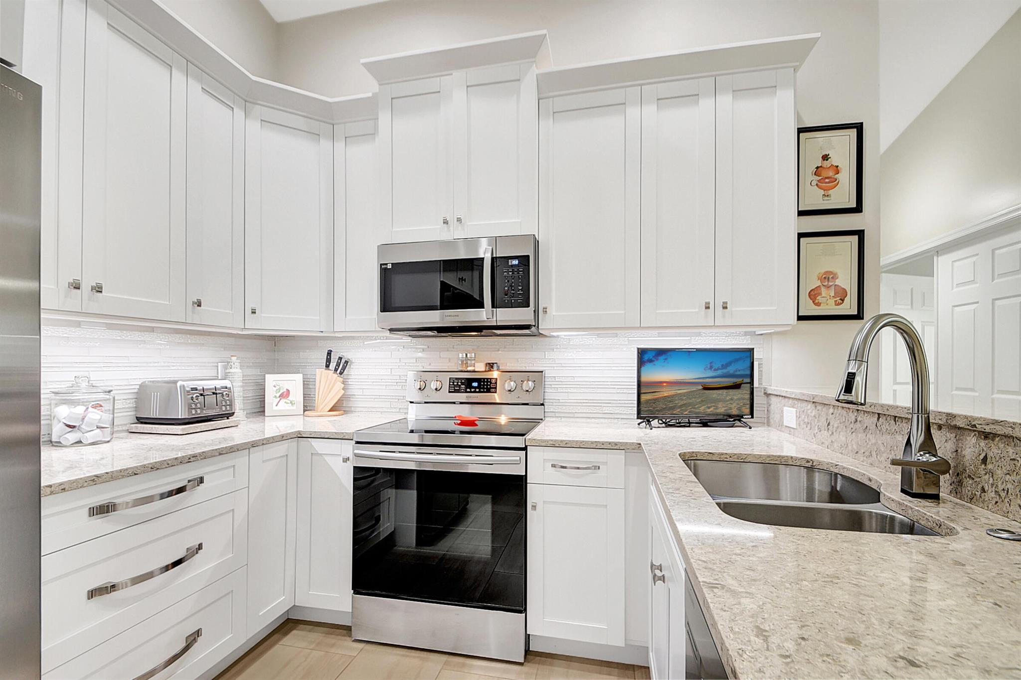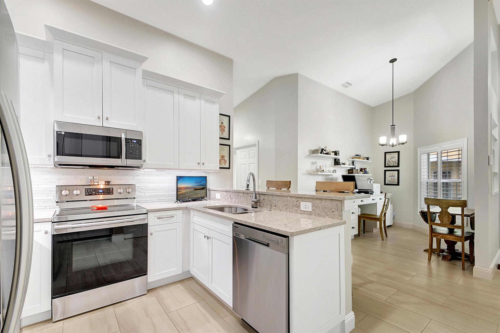ABSOLUTELY AMAZING CORNER UNIT WITH BEAUTIFUL LAKE VIEWS EVERY INCH OF THIS UNIT HAS BEEN UPDATED INCLUDING A BRAND NEW ROOF, NEW A/C, NEW KITCHEN REMODEL WITH CAMBRIA COUNTERTOPS. BOTH BATHROOMS FULL REMODEL ALSO WITH CAMBRIA COUNTER TOPS. .NEW IMPACT WINDOWS EXTENDED SCREENED IN PATIO COMPLETED LAST YEAR. PLANTATION SHUTTERS RECENTLY INSTALLED. NEW CERAMIC TILE INSTALLED THROUGHOUT THE FULL UNIT. THE SECOND BEDROOM HAS A BRAND NEW MURPHY QUEEN BED HIDDEN BY ROLLING BOOKCASES. CUSTOM OUTDOOR LIGHTING PLUS A SIDE PAVED PATH TO THE BACKYARD FROM FRONT DOOR. ALL CLOSETS HAVE CUSTOM BUILT INS. LAUNDRY IN KITCHEN MAIN ALSO INCLUDES ADT HOME PHONE AND HIGH SPEED INTERNET PROGRAMABLE TEMP CONTROL.