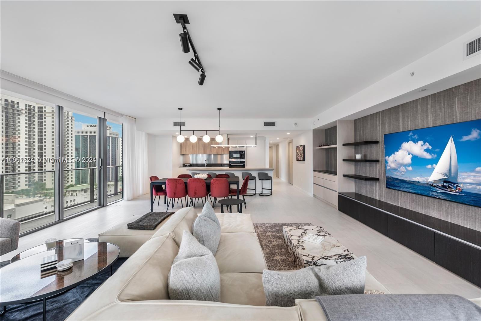 Step into luxury with this fully furnished residence, featuring exquisite Italian furniture, custom Snaidero kitchen, professional-grade Miele appliances, and imported Italian finishes, at Miami’s iconic architectural masterpiece: Brickell Flatiron Tower, Residence #2102. Offering the largest layout available for tower residences, this elegant unit includes 3 bedrooms, 3.5 bathrooms, floor-to-ceiling windows, and expansive elliptical glass balconies that provide panoramic views from every room. Elevate your lifestyle with access to a 64th-floor rooftop deck featuring breathtaking city and water views, a state-of-the-art spa, fitness center, and resort-style poolSituated in the heart of Brickell, steps from Mary Brickell Village and Brickell City Centre, residents enjoy walkable