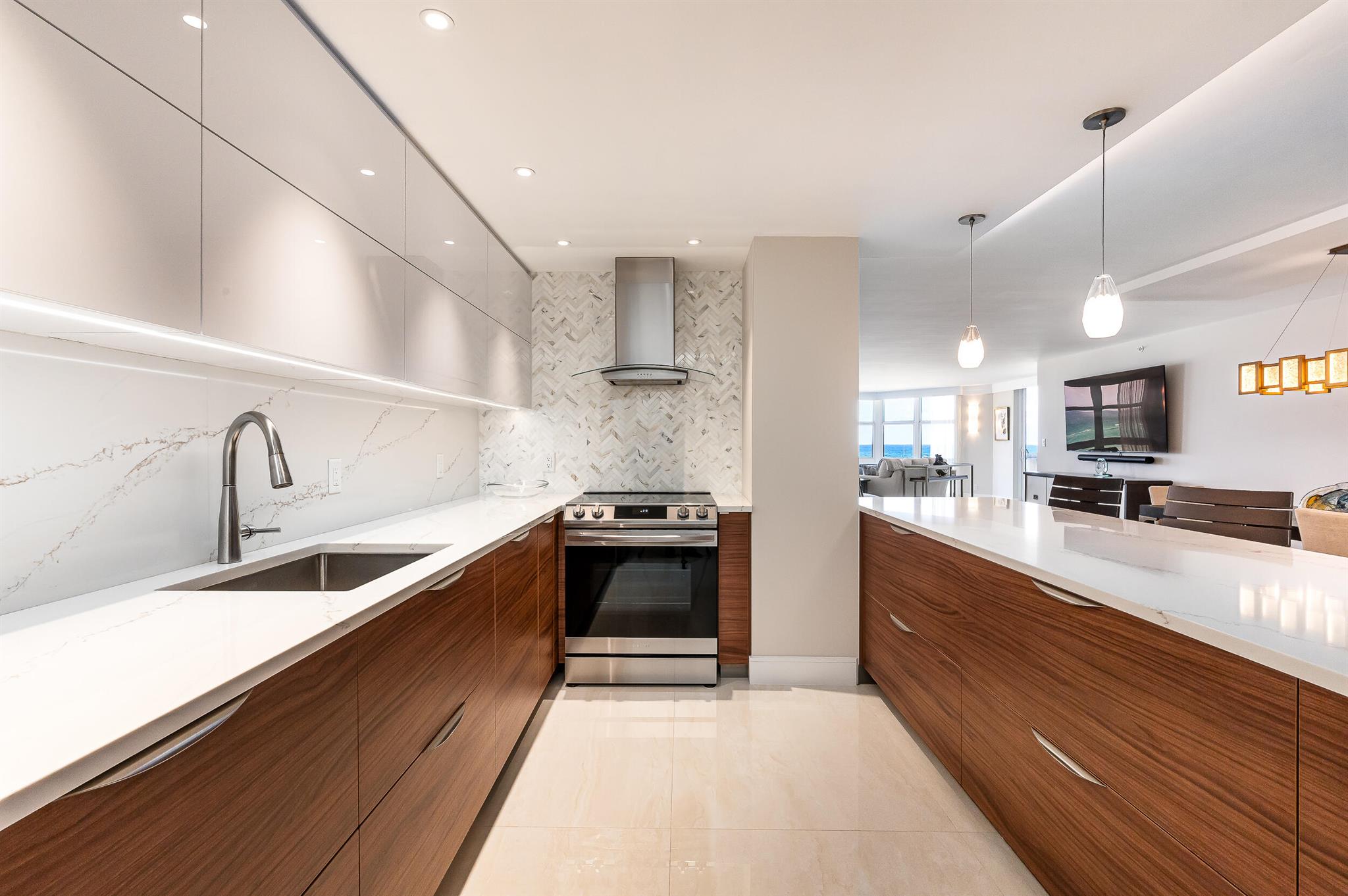 DIRECT OCEAN completely remodeled condo in 2020 on the famous Hillsboro Mile. This 2100 square foot unit has gorgeous ocean views and is highly upgraded and architecturally designed into a new floor plan. Condo has a separate office space and laundry room. Sub-zero refrigerator, quartz counter tops and a kitchen that is open to the family room. Custom Doors and large porcelain tiles for flooring. Everything was meticulously thought out when remodeling. This tastefully done condo is located in a boutique building with only 65 total units. Amenities include heated pool, social room, gym, two garage parking spots, new security system, BBQ's on both sides of the building, pet friendly and all newly updated common areas. Not many direct ocean condos available like this one.