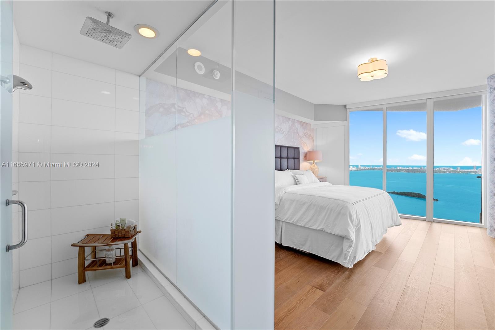 Located on the 41st floor, experience gorgeous Biscayne Bay and city views in this floor-through condo in the most desirable line at Edgewater’s prestigious Paramount Bay. This unit has floor-to-ceiling windows offering approximately 2,200 square feet of living space, 500 square feet of balcony space and features three bedrooms each with elegant hard wood floors and en-suite bathrooms. Two assigned parking spaces are included plus valet services. Enjoy the privacy of your own elevator lobby, 24-hour security and front desk service. Building amenities include two pools with cabanas and towel service; fitness center and spa; barbecue, picnic areas, children’s playroom and more. A club room with catering kitchen can be reserved by residents for private events.