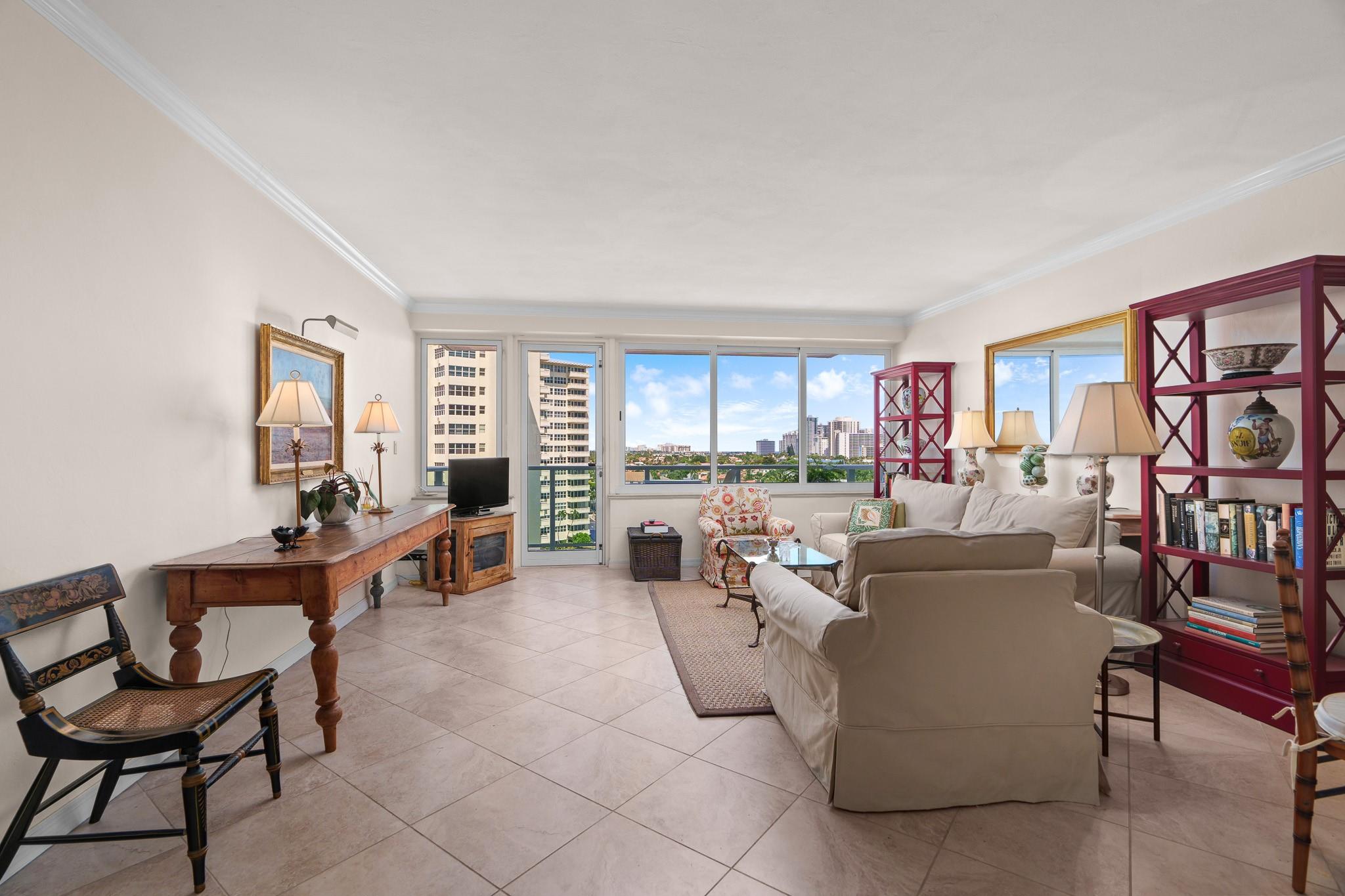 Welcome to 3233 NE 34th St #905, where luxury living meets breathtaking views. This beautifully renovated two-bedroom, two-bathroom condo offers panoramic vistas of both the Intracoastal and the ocean from your private balcony. The open kitchen features granite countertops and ample cabinetry, while the bathrooms boast unique counters and a Kohler whirlpool tub.. The master bedroom is larger than other units, and porcelain tile floors run throughout. Impact windows, a central air system, and ceiling fans, comfort is guaranteed. Highlights include crown moldings, and a washer and dryer. Located just two blocks from the beach, this north-side unit offers the perfect blend of style, convenience, and location. Don't miss this opportunity to enjoy coastal living at its finest!