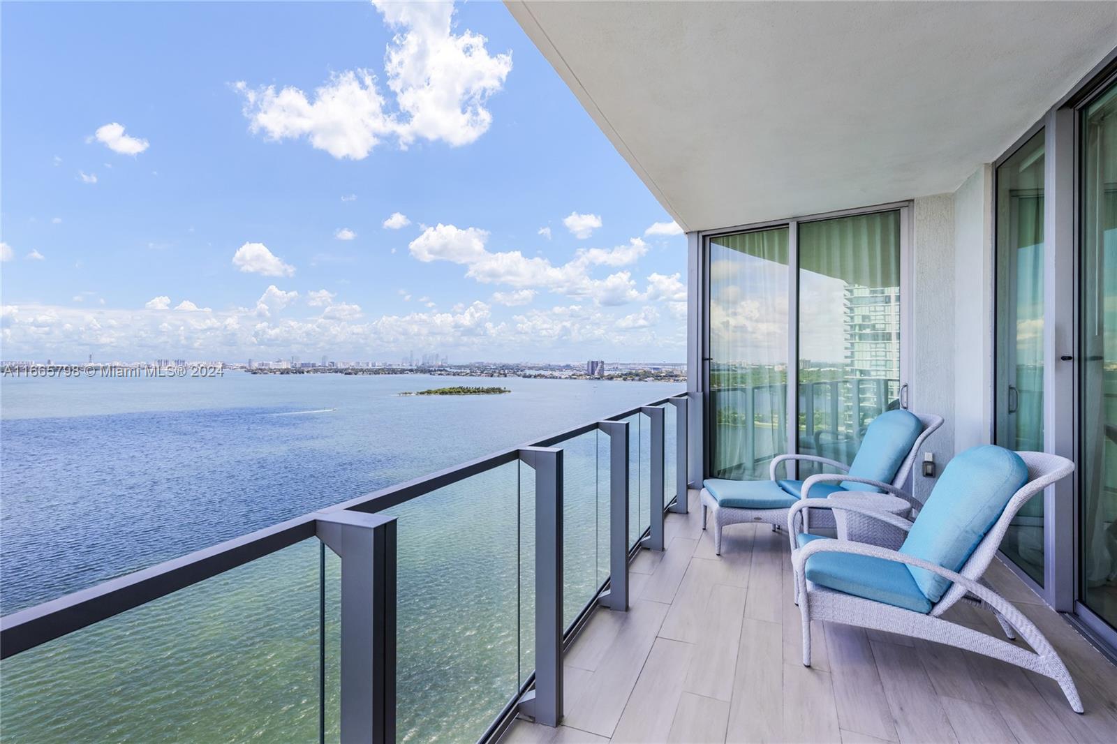 Enjoy breathtaking views of Biscayne Bay, and Miami Beach from this spectacular corner unit. Access your home through a private elevator into a thoughtfully converted spacious 2 beds plus a den (potential 3rd bed) and 3 baths. With 10+ ft floor-to-ceiling windows and two balconies, natural light fills the space. The open kitchen features a large island, top-tier Miele appliances, and custom European cabinets. The luxurious primary bath includes a spa tub, separate shower, dual vanity, and walk-in closet. The building offers resort-style amenities, including a Beach Club, two pools, tennis courts, a fitness center, theater, salon, sauna, steam room, business center, billiards room, and valet parking. Comes with 2 parking spaces & a storage unit.