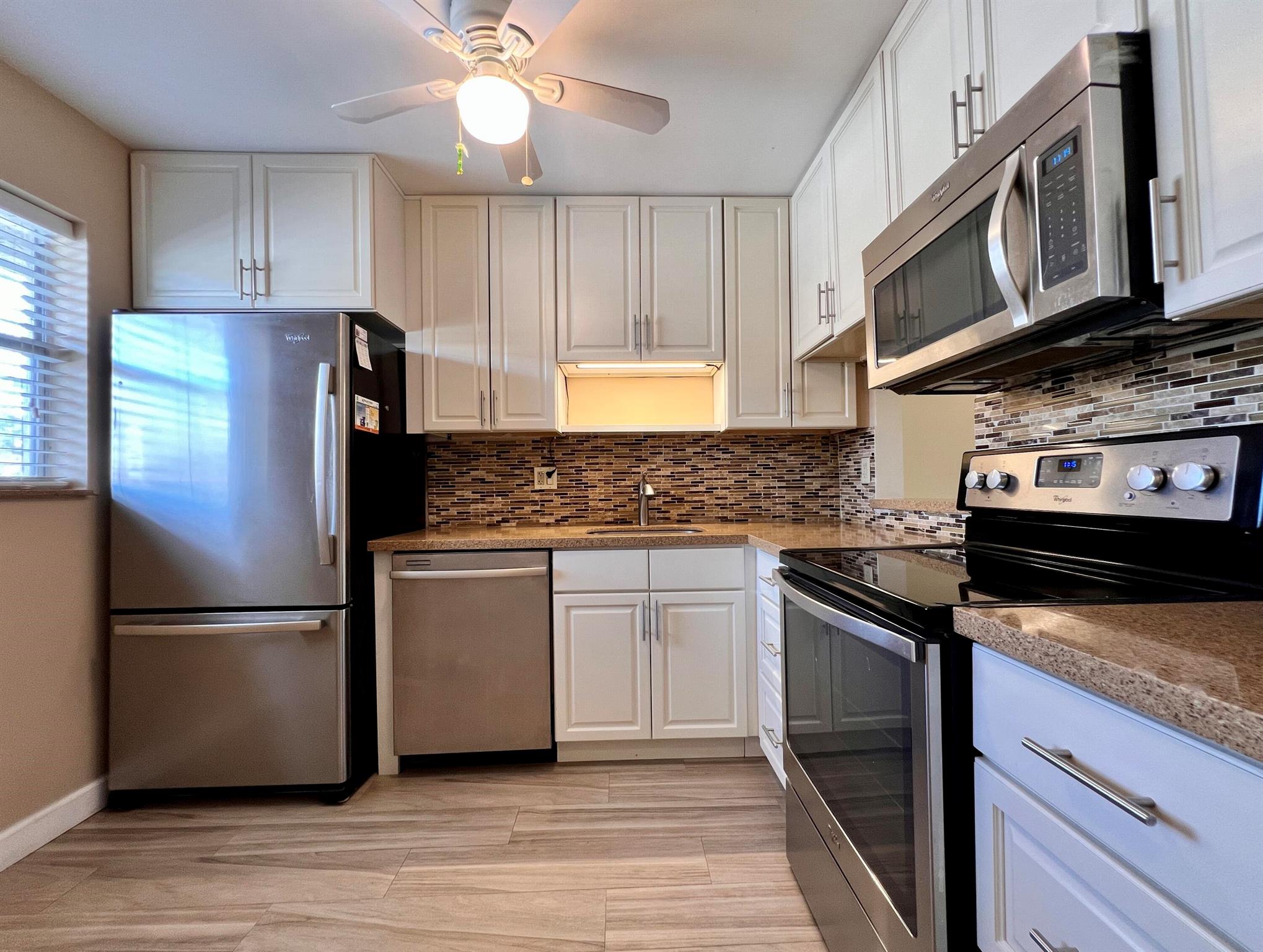 A Truly Special Property In 55+ Century Village! Lovely & Updated FIRST FLOOR 2/2 in a PET FRIENDLY Building! Beautifully Updated Kitchen With White Cabinets & Stainless Appliances (including a Dishwasher). Updated Baths. Screened Lanai Off the Living Area. Bedroom Suite With Walk-in Closet & Full Ensuite Bath with Step-in Shower. Neutral Luxury Wood Plank Flooring Flows Throughout. Washer/Dryer Hook Up in Guest Room Closet. First Floor Condo W/ Parking Spot At Your Front Door. Pet Friendly Up to 2 Dogs Allowed (max weight 20 lbs). Building Features A Pretty Courtyard With Resident Patio, New Silicone Roof (2021), and Resident Access to the Private Oxford Pool. Convenient Location Close to Hastings Fitness Center and The Main Clubhouse. Century Village is a 55+ Resort Style...